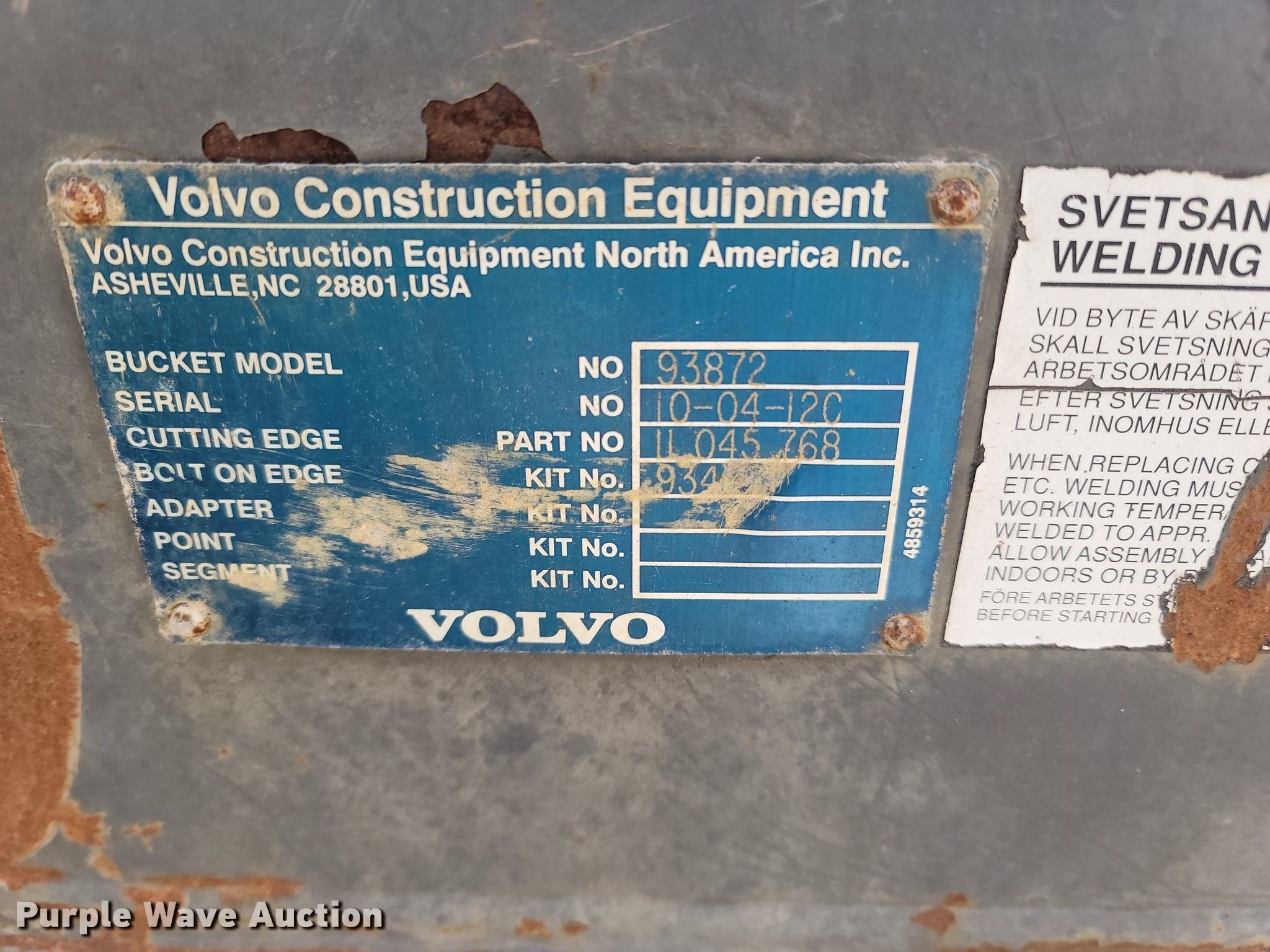 2008 Volvo L120F wheel loader. Hours: 32,714 on meter, Serial: VCEL120FH00066567. Engine Cylinders: 6, Fuel type: Diesel. Transmission Powershift, 4F - 3R. Operators station Enclosed cab, AC, Heat, Ride control. Features Auxiliary hydraulics: Front, Quick coupler: Hydraulic, Bucket Volvo 93872, Width: 110", Self- leveling bucket, Cutting edge: Bolt-on. Tires Size: 23.5R25. Notes Dash warning indicator: Brake. Mareth Enterprises. 11969 State Highway 37. Purdy, MO 65734