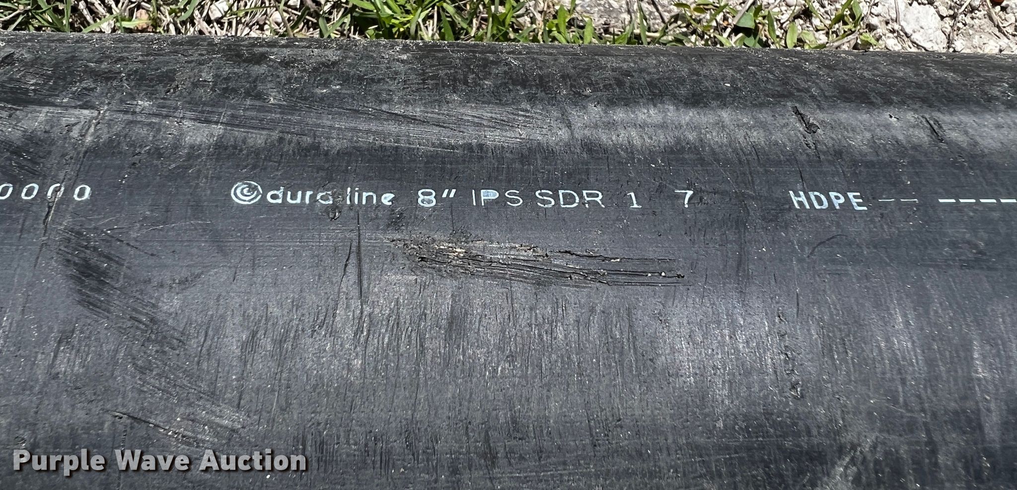 Purple Wave is selling a used Pipe in Texas. This item is a Approximately 25 pieces of Duraline HDPE pipe with the following: Lengths: 12' to 24', 8" diameter