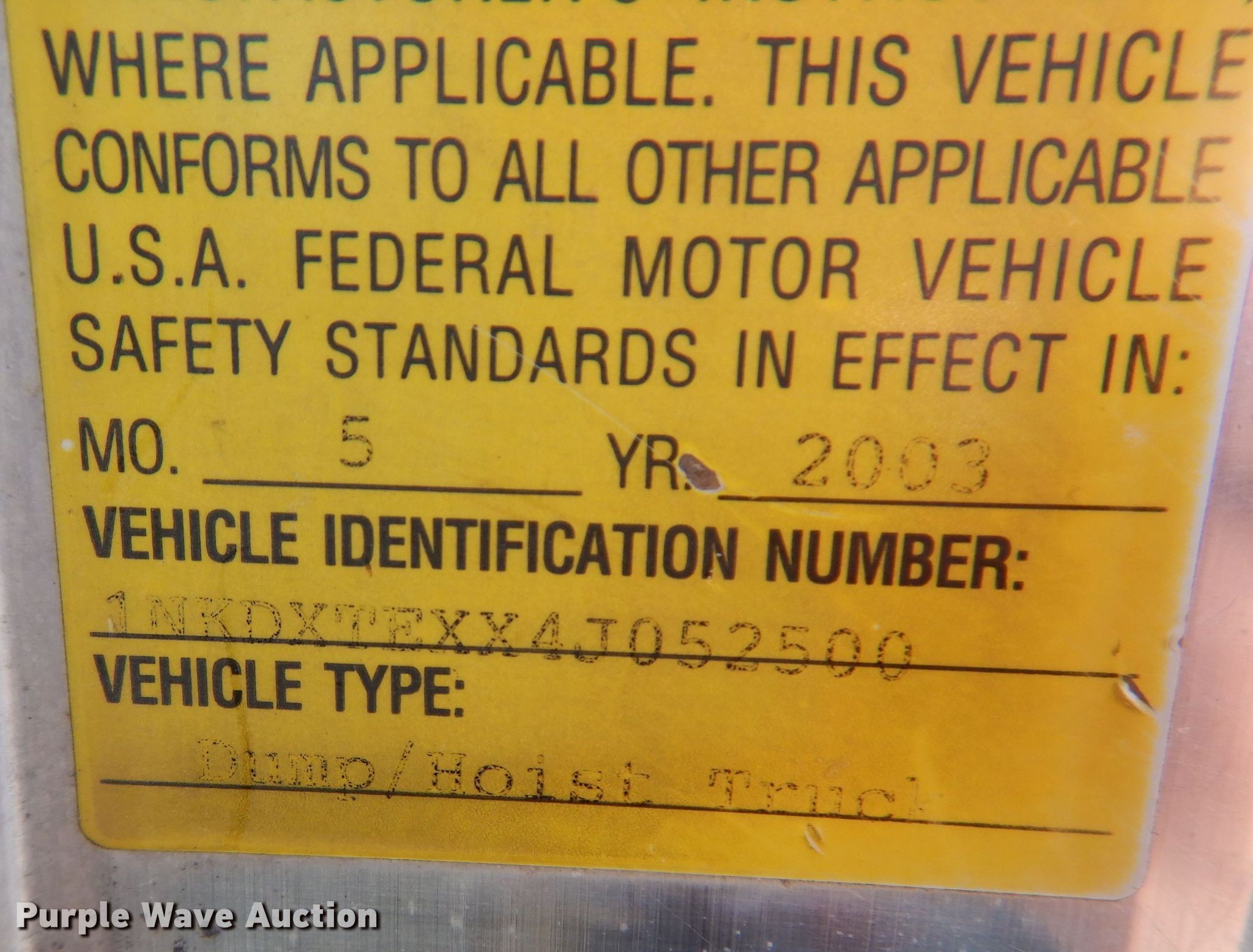 - VIN: 1NKDXTEXX4J052500