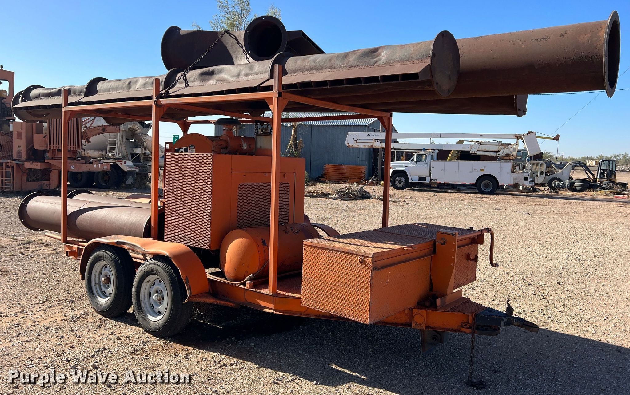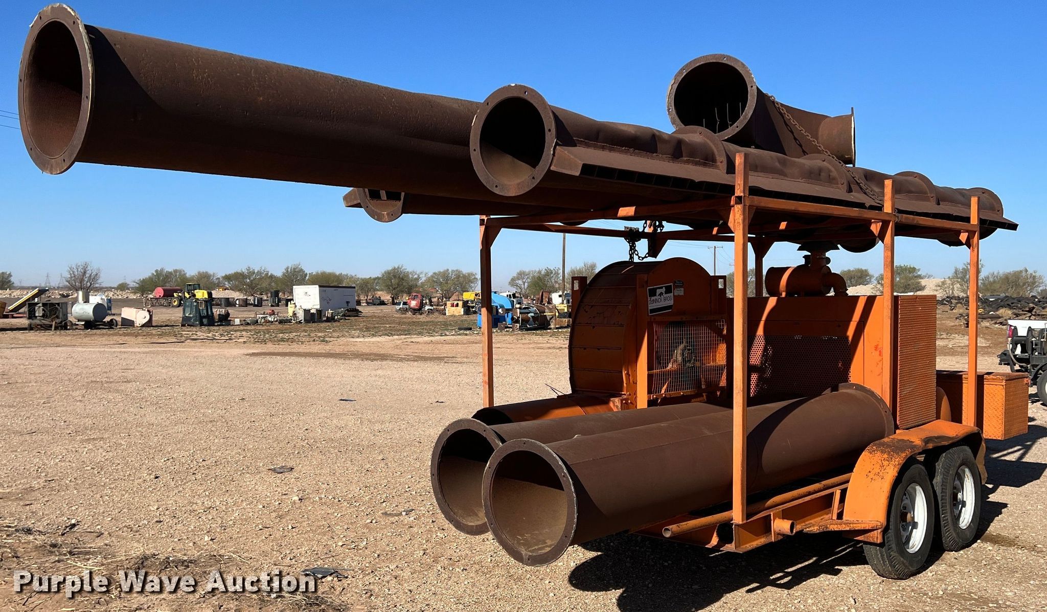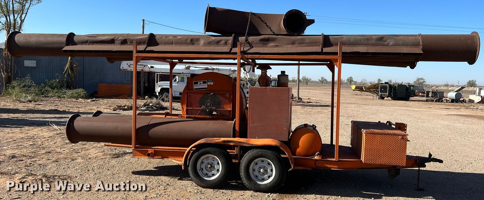 Lava Co 6329DF air curtain trench burner. Hours: 341 on meter, Serial: 148-11-83. Engine Cylinders: 6, Fuel type: Diesel. Features Trench burner Air Curtain, Serial: 23074, Outlet: 20", (2) 10' extensions, (3) air curtain joints (2) 20', 30', Tee, Fan Phelps 62R, Serial: 99558-A. Trailer Overall: 20' L x 8' W , Tire size: 205/90D15. This is worksite support equipment and will not come with a title. Transfer of ownership documentation will be a bill of sale. Ronnie Zahn Paving. Inc.. 6608 Martin Luther King Junior Boulevard. Lubbock, TX 79404
