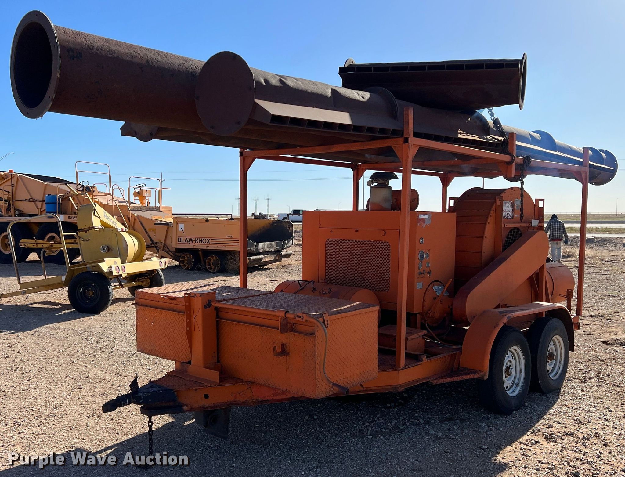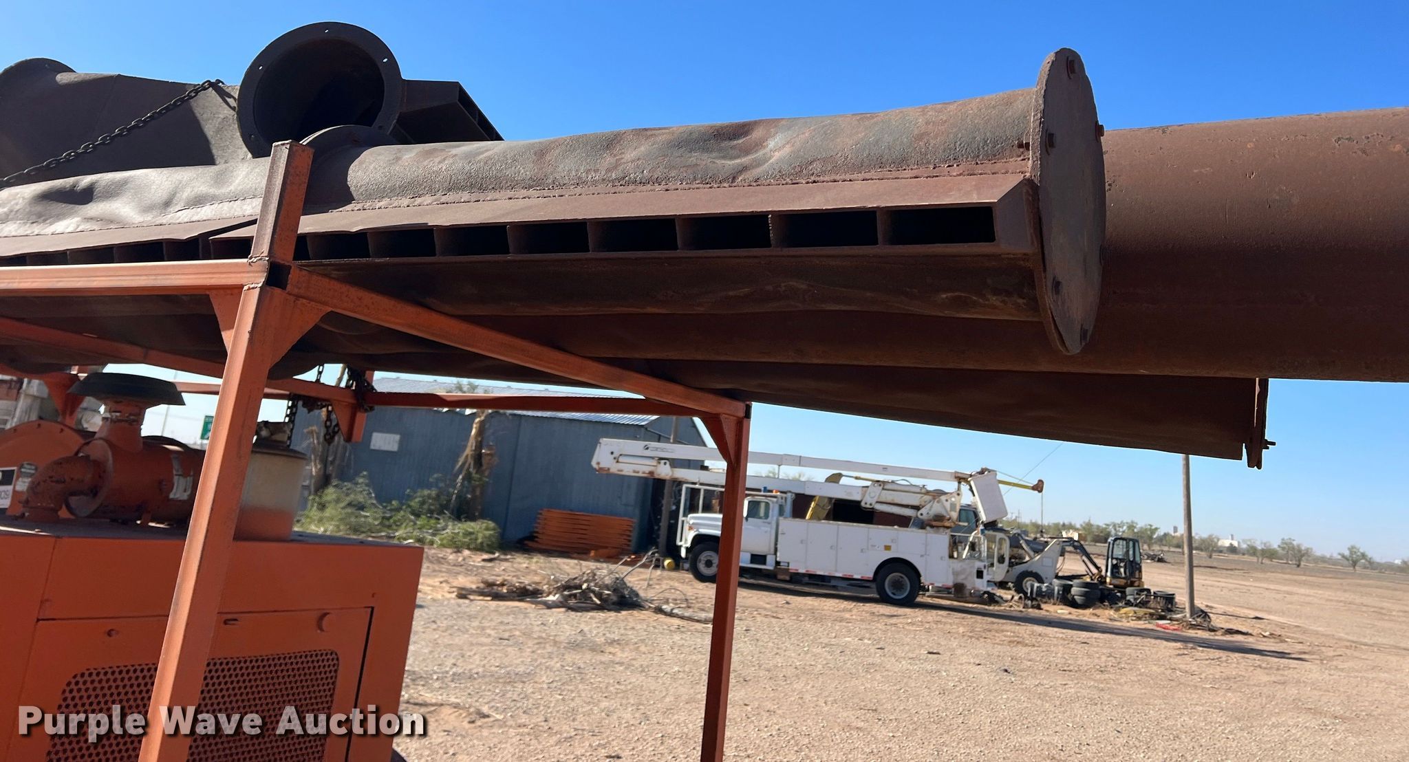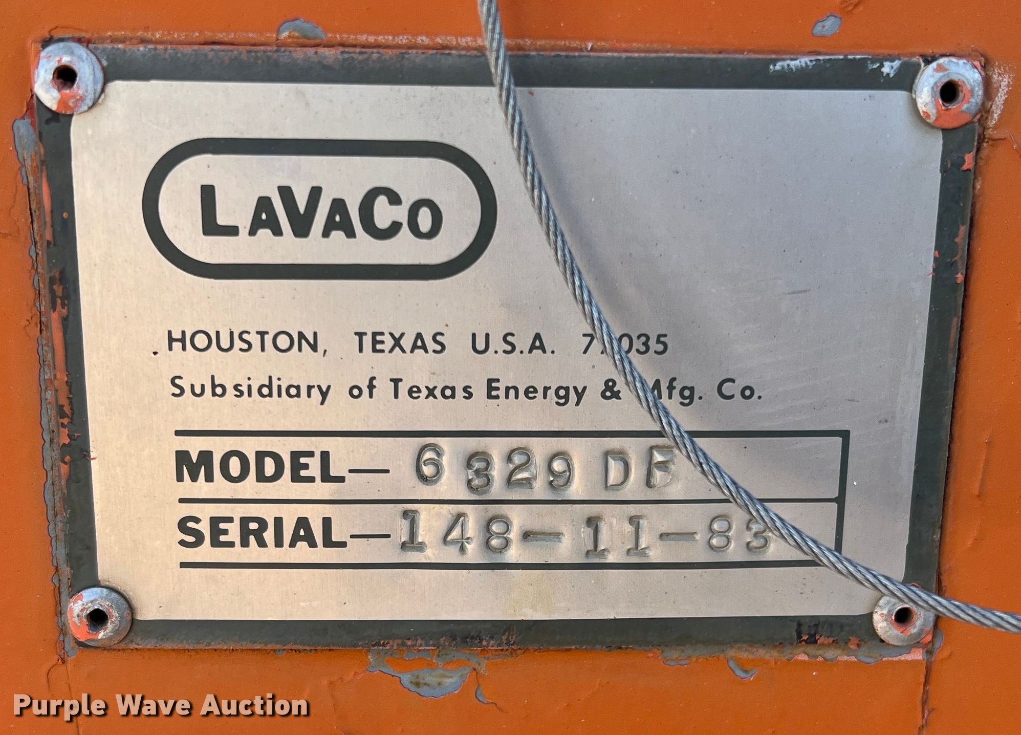 Lava Co 6329DF air curtain trench burner. Hours: 341 on meter, Serial: 148-11-83. Engine Cylinders: 6, Fuel type: Diesel. Features Trench burner Air Curtain, Serial: 23074, Outlet: 20", (2) 10' extensions, (3) air curtain joints (2) 20', 30', Tee, Fan Phelps 62R, Serial: 99558-A. Trailer Overall: 20' L x 8' W , Tire size: 205/90D15. This is worksite support equipment and will not come with a title. Transfer of ownership documentation will be a bill of sale. Ronnie Zahn Paving. Inc.. 6608 Martin Luther King Junior Boulevard. Lubbock, TX 79404