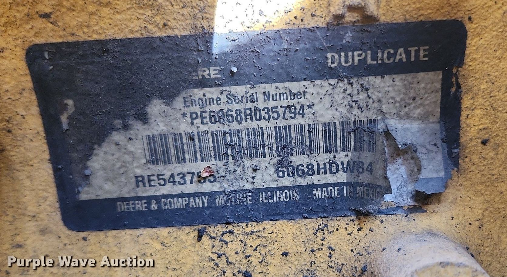 2013 John Deere 544K wheel loader. Hours: Unknown, Serial: 1DW544KZEDE654133. Engine John Deere, Cylinders: 6, Fuel type: Diesel. Transmission Powershift, 4F - 3R. Operators station AC, Heat, Bucket controls: Joystick, Ride control. Features Auxiliary hydraulics: Front. Tires Size: 20.5R25. Notes DEF system and exhaust removed, but included , Glass broken, Engine valve issues, Non-operational unit. Owensville, MO 65066