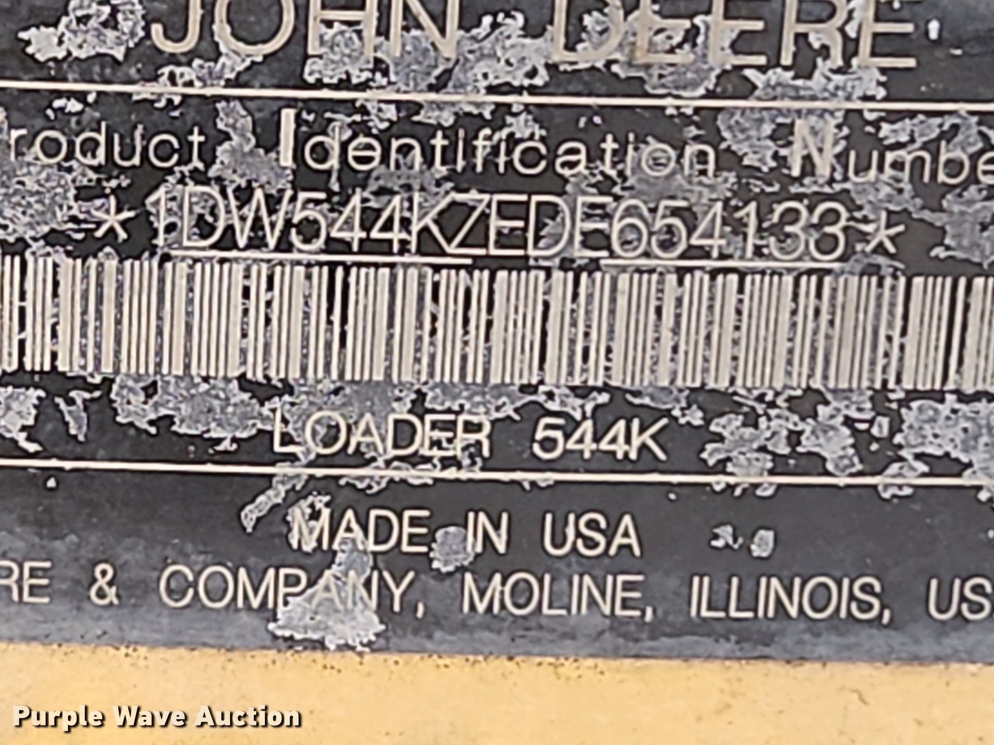 Purple Wave is selling a used Wheel Loader in Missouri. This item is a 2013 John Deere 544K wheel loader with the following: Hours: Unknown, Serial: 1DW544KZEDE654133