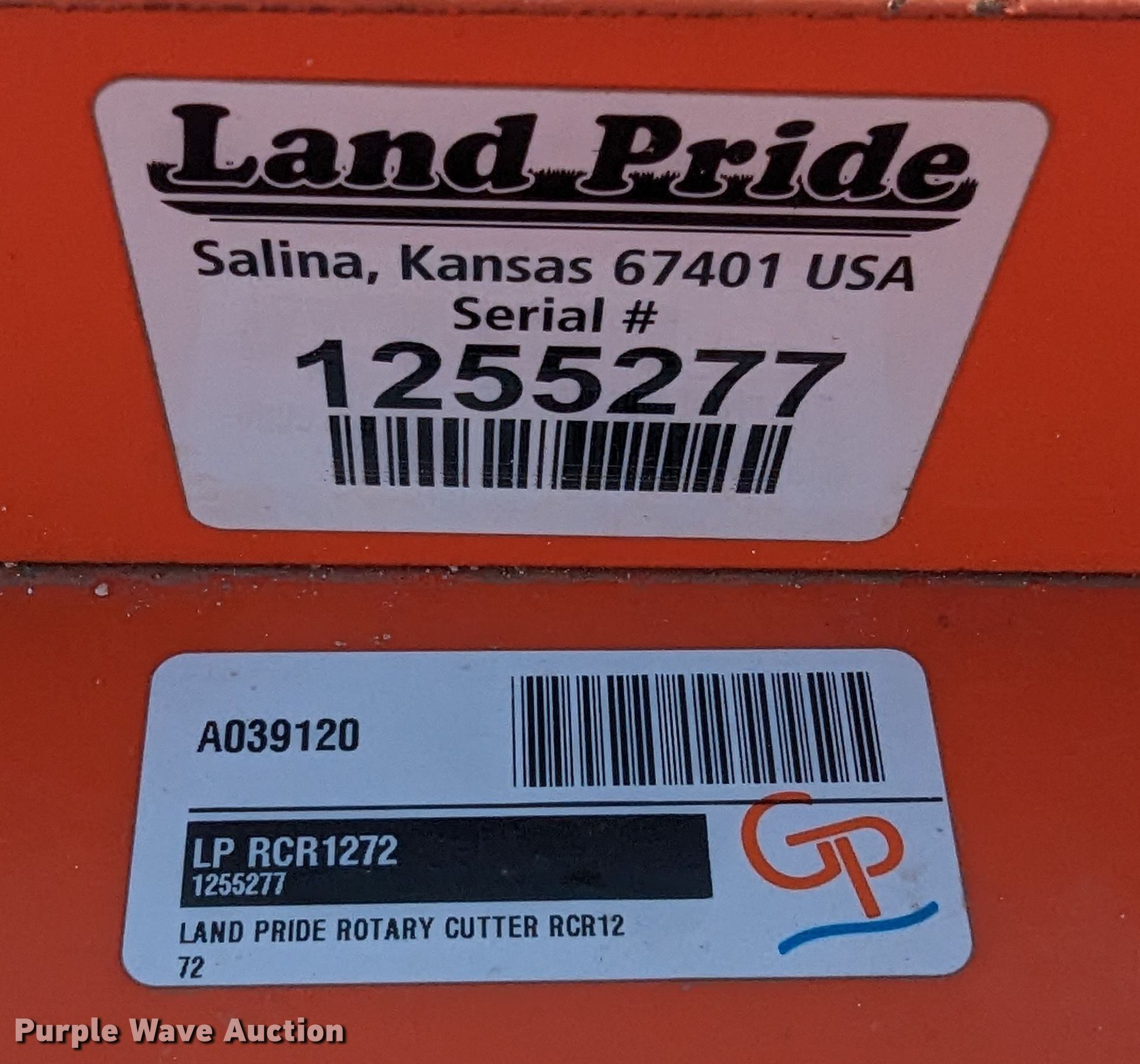 Purple Wave is selling a used Mower, Cutter, Shredder in Oklahoma. This item is a Land Pride RCR1272 rotary mower with the following: Serial: 1255277