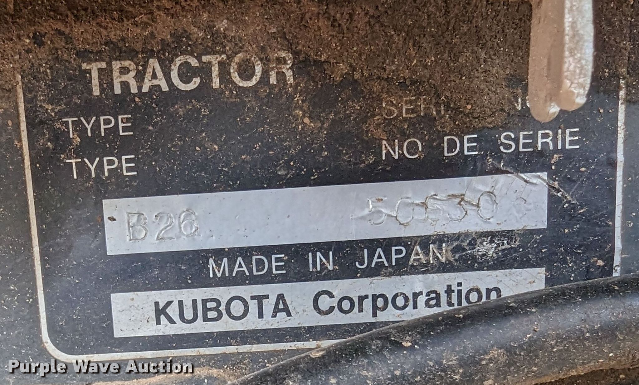 Purple Wave is selling a used Tractor Loader Backhoe in Oklahoma. This item is a 2007 Kubota B26 backhoe with the following: Hours: 2,010 on meter, Serial: 50630
