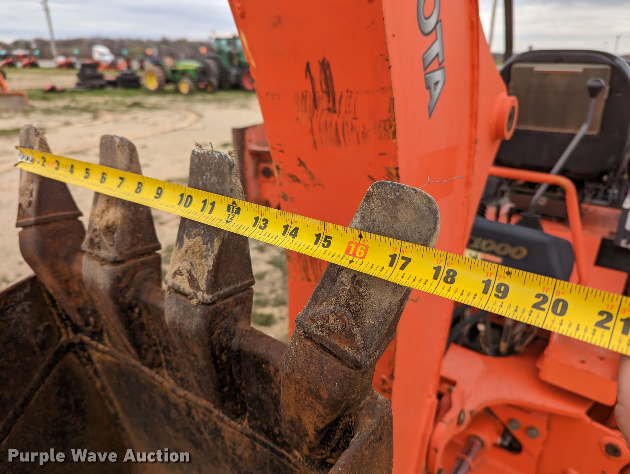 2005 Kubota L39TLB backhoe. Hours: 1,433 on meter, Serial: 50636. Engine Cylinders: 3, Fuel type: Diesel. Transmission Glide, 12F - 8R. Operators station Backhoe controls: Wobble stick / two stick. Features Loader Auxiliary electrical outlet, Bucket Kubota L39, Width: 72", Cutting edge: Bolt-on, Backhoe Bucket Kubota BT1000, Width: 18", Cutting edge: Weld-on, Teeth: 4.. Tires Front: 27x10.50-15SS, Rear: 15x9.50. Great Plains Kubota - Open Inspection April 26th. 2548 Melba Lane. Norman, OK 73072