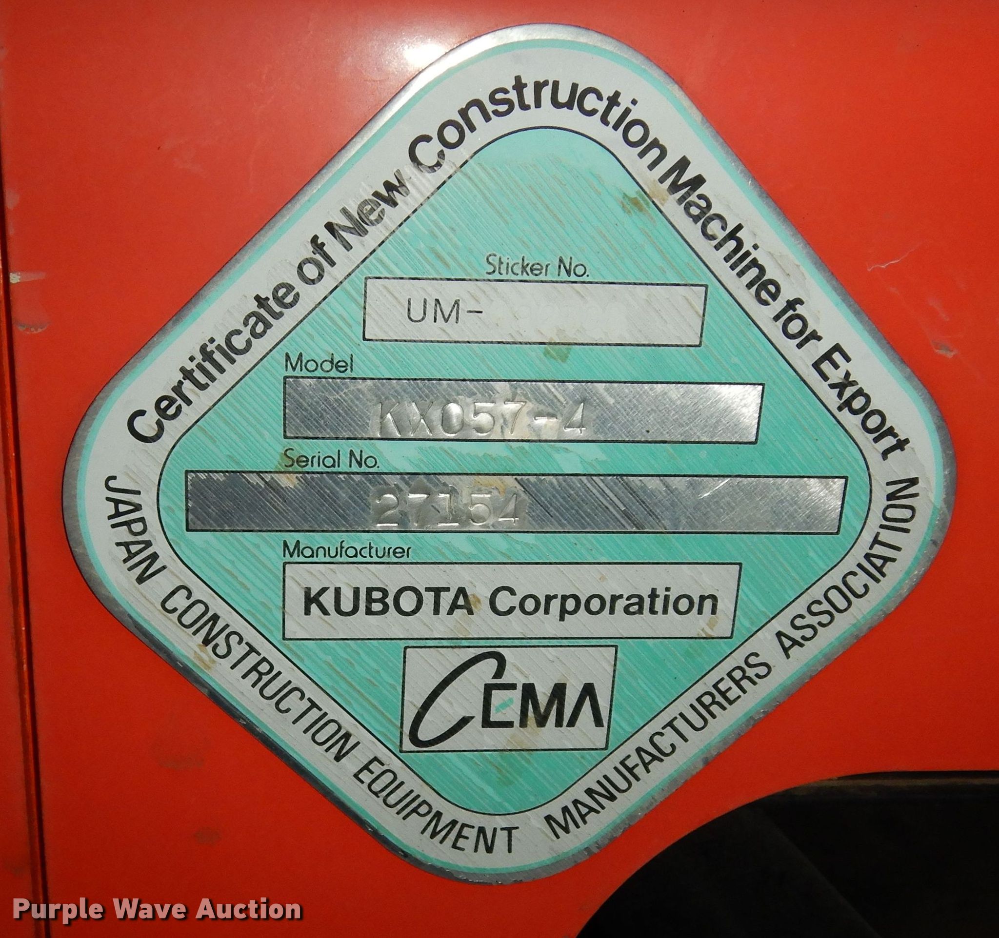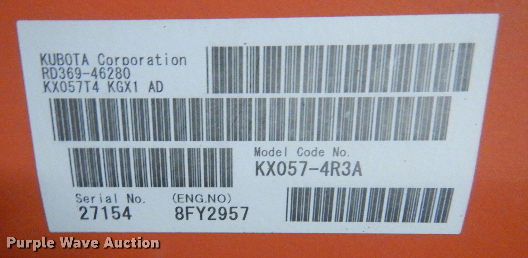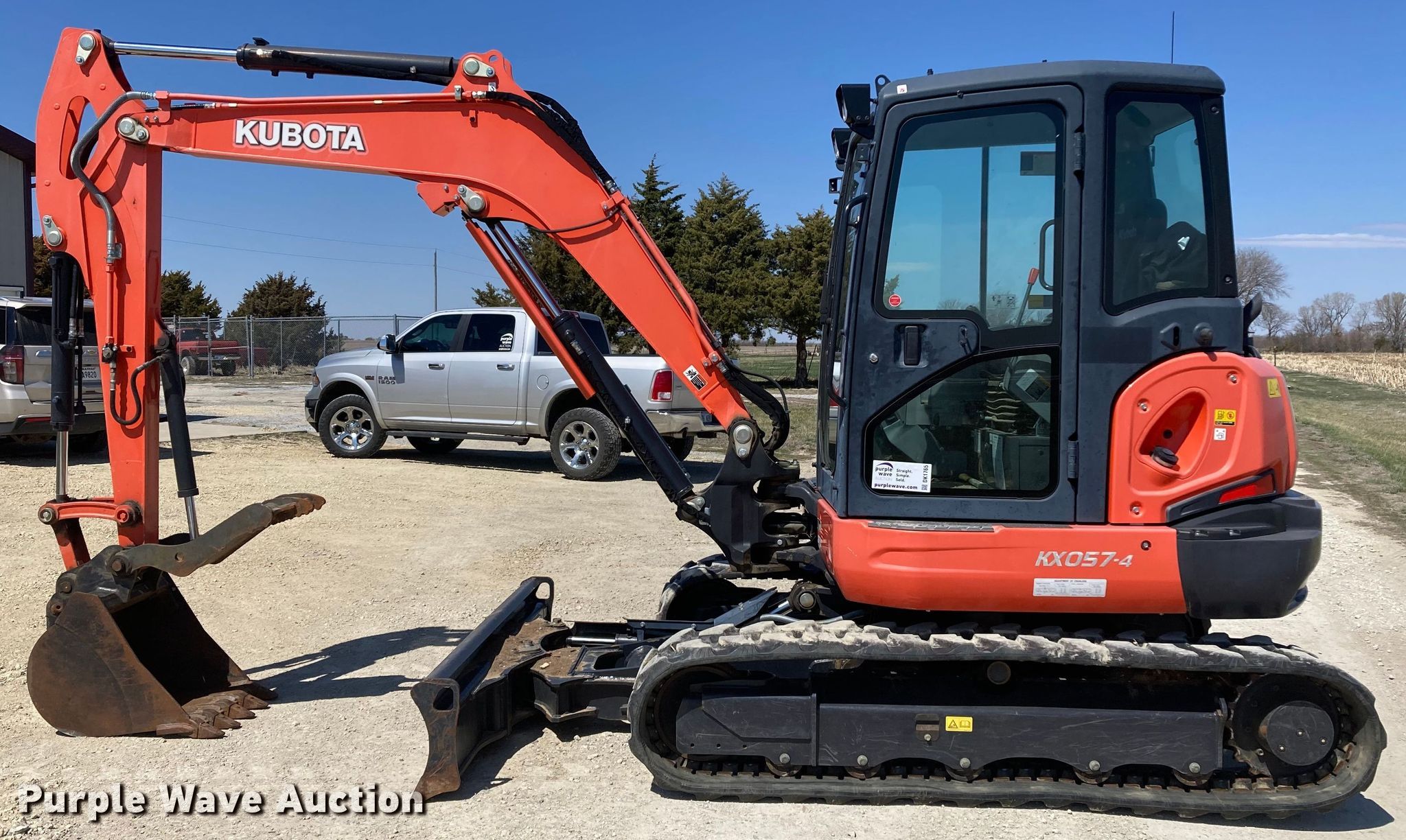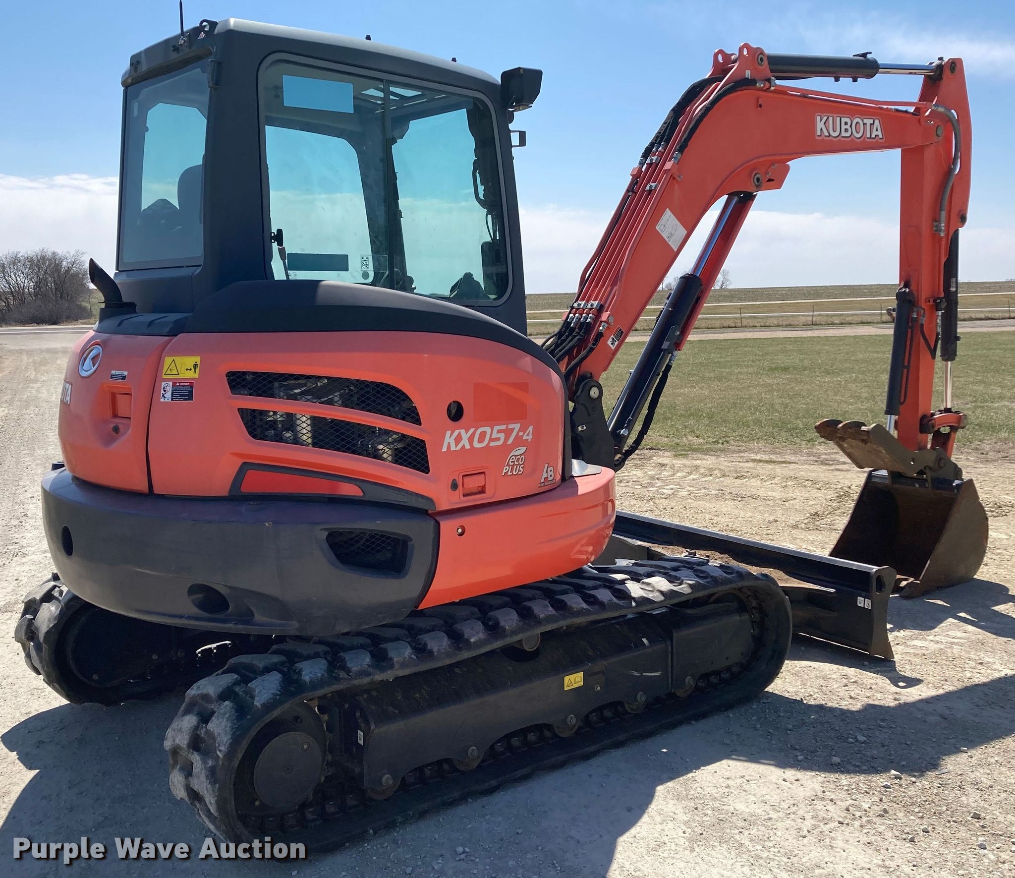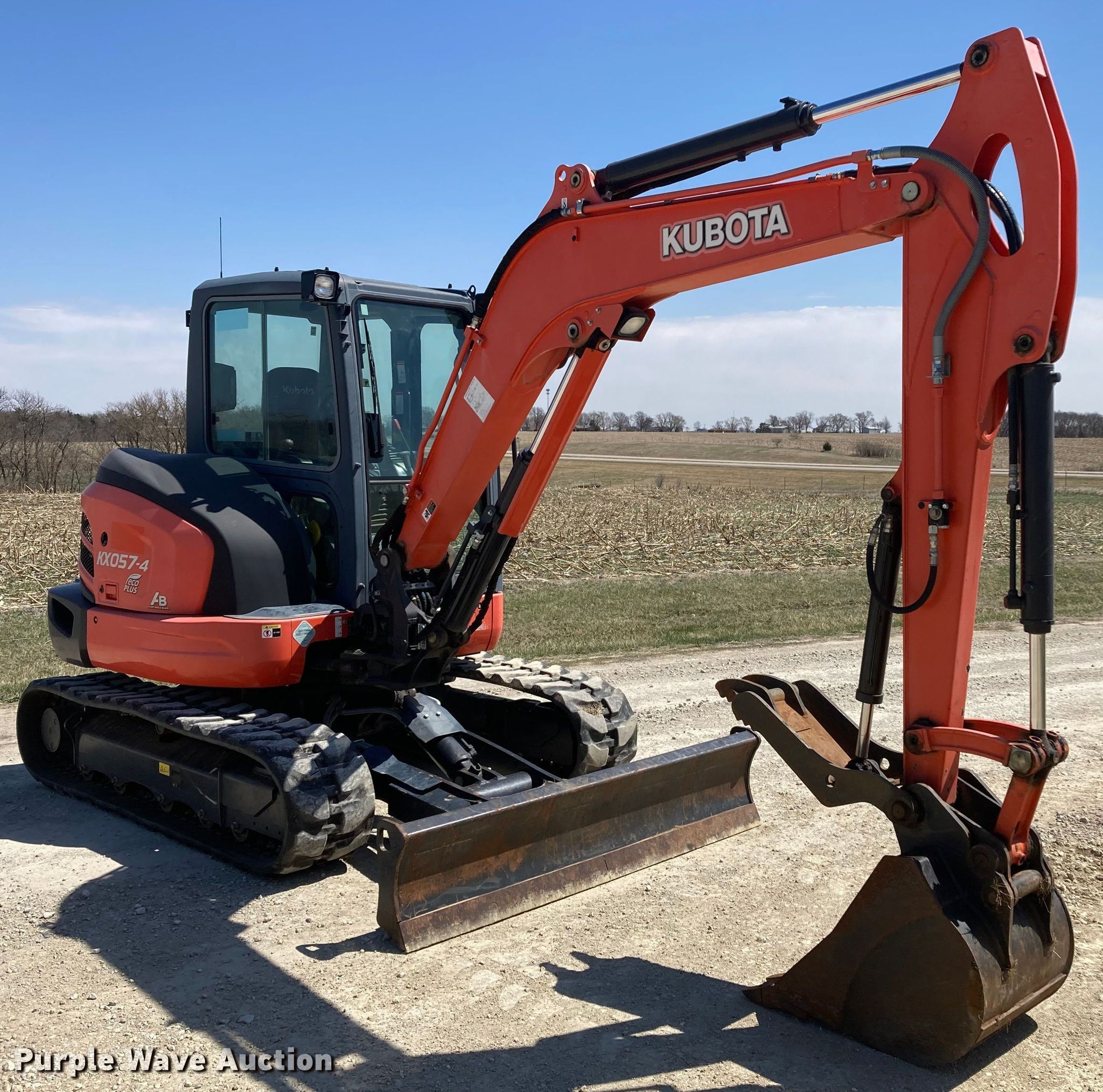 Purple Wave is selling a used Mini Excavator in Kansas. This item is a 2016 Kubota KX057-4 mini excavator with the following: Hours: 308 on meter, Serial: JKUK0574E01H27154