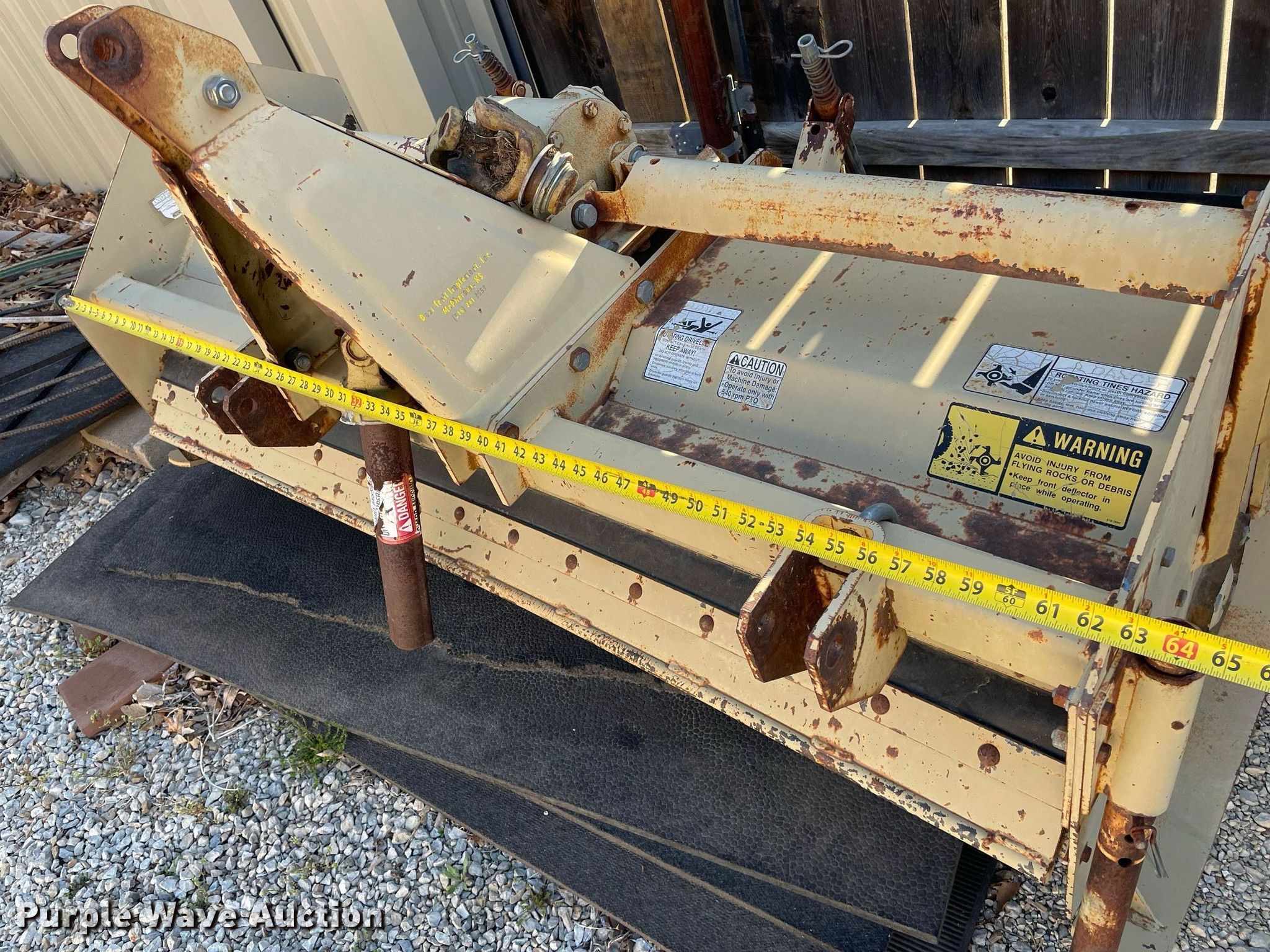 Purple Wave is selling a used Ag Tractor Loader or Attach. in Kansas. This item is a Land Pride tiller with the following: Overall width: 62"
