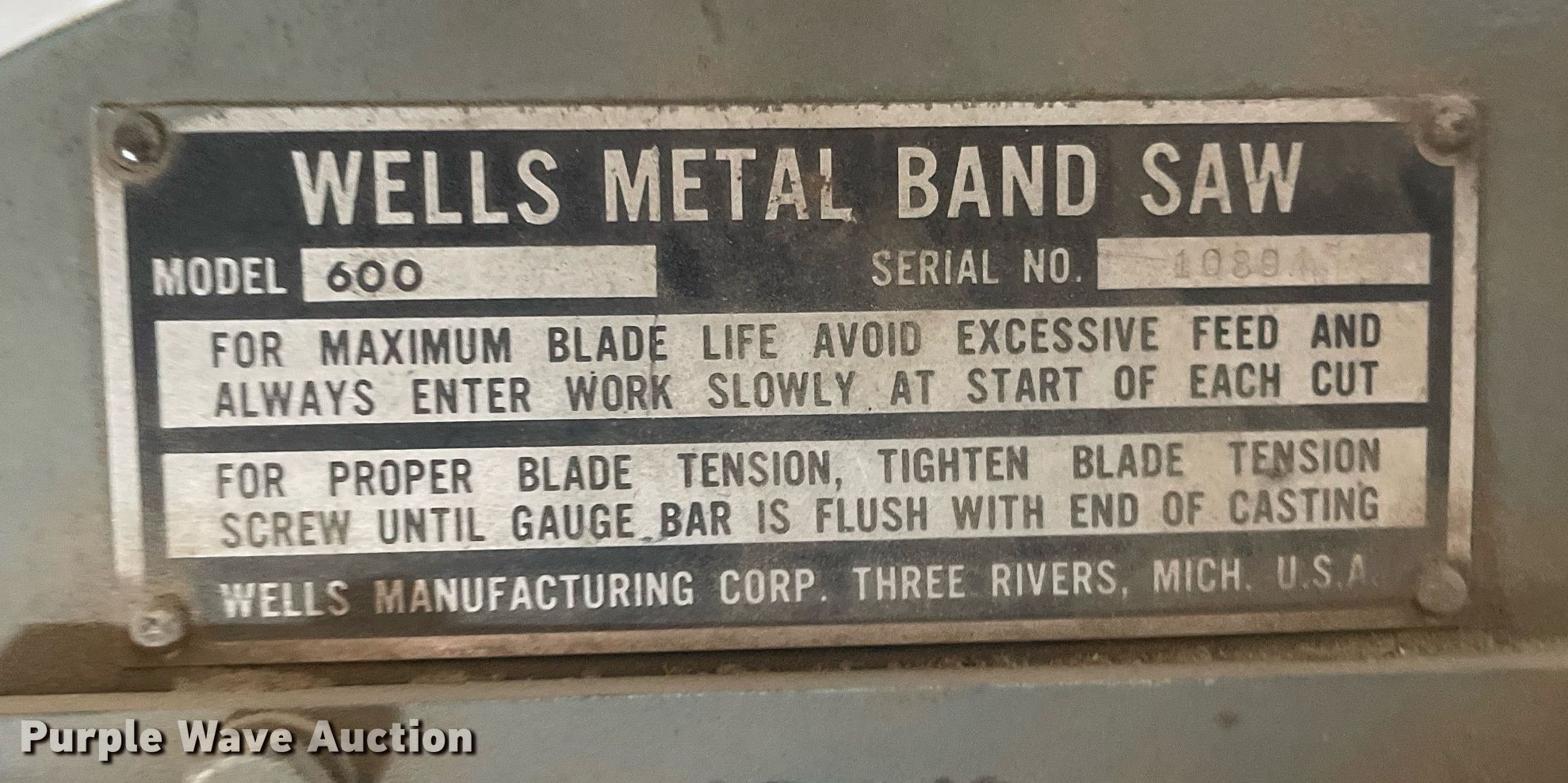 Purple Wave is selling a used Tools in Kansas. This item is a Wells 600 metal bandsaw with the following: Wells 600 metal bandsaw. USD 418 McPherson. McPherson, KS 67460