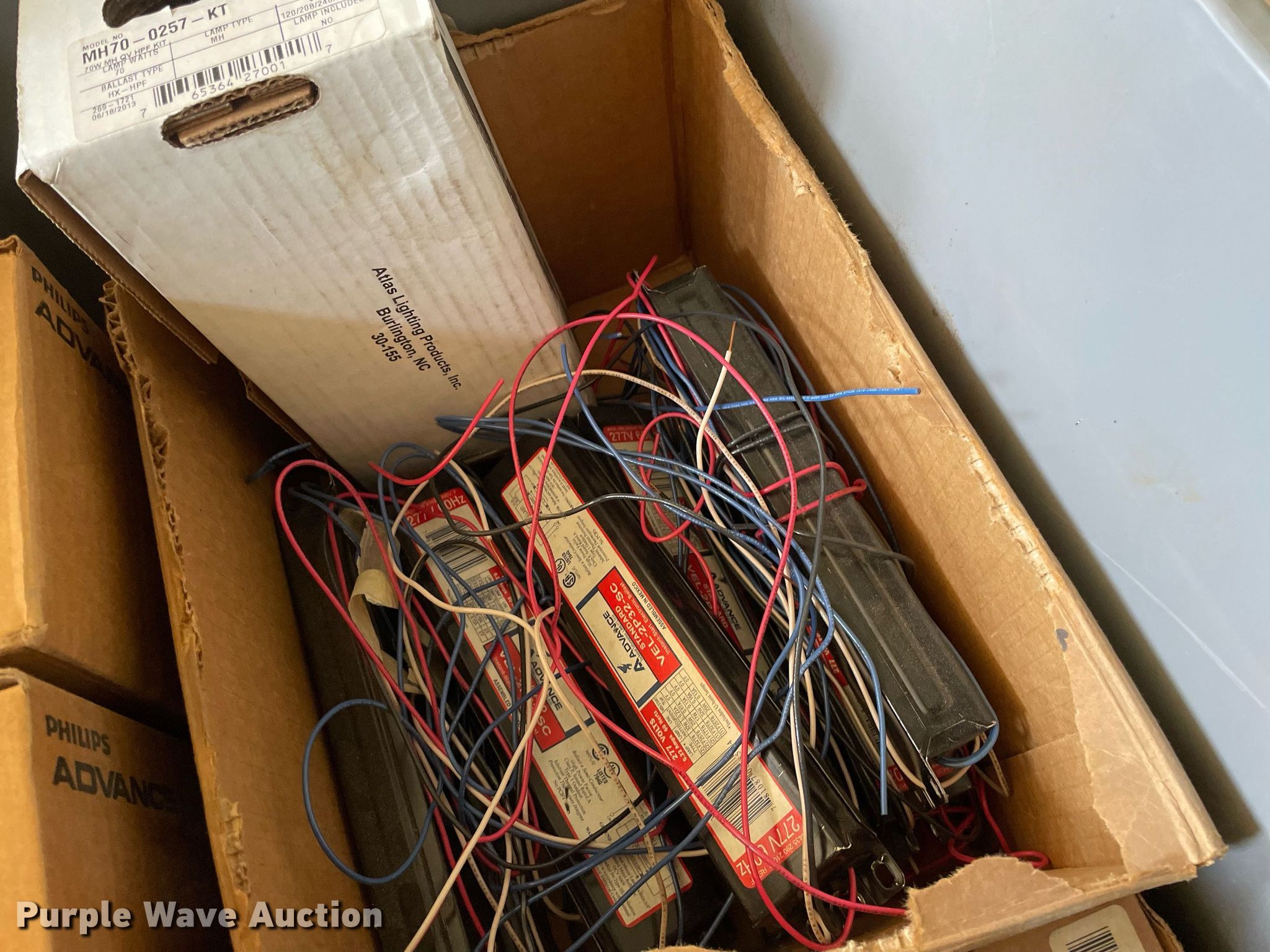 Purple Wave is selling a used Building Materials in Kansas. This item is a Electrical equipment with the following: Ballast kits, Miscellaneous breakers