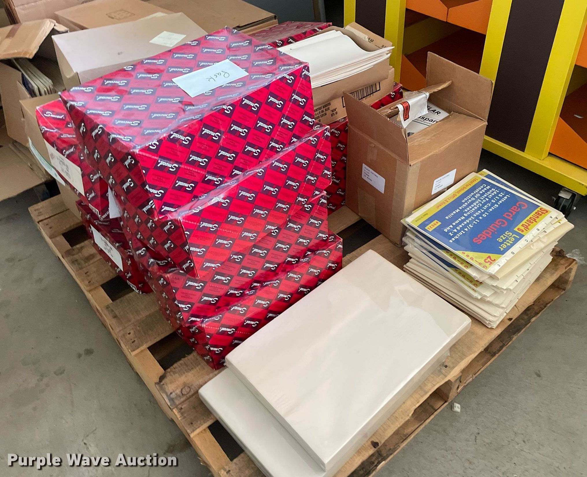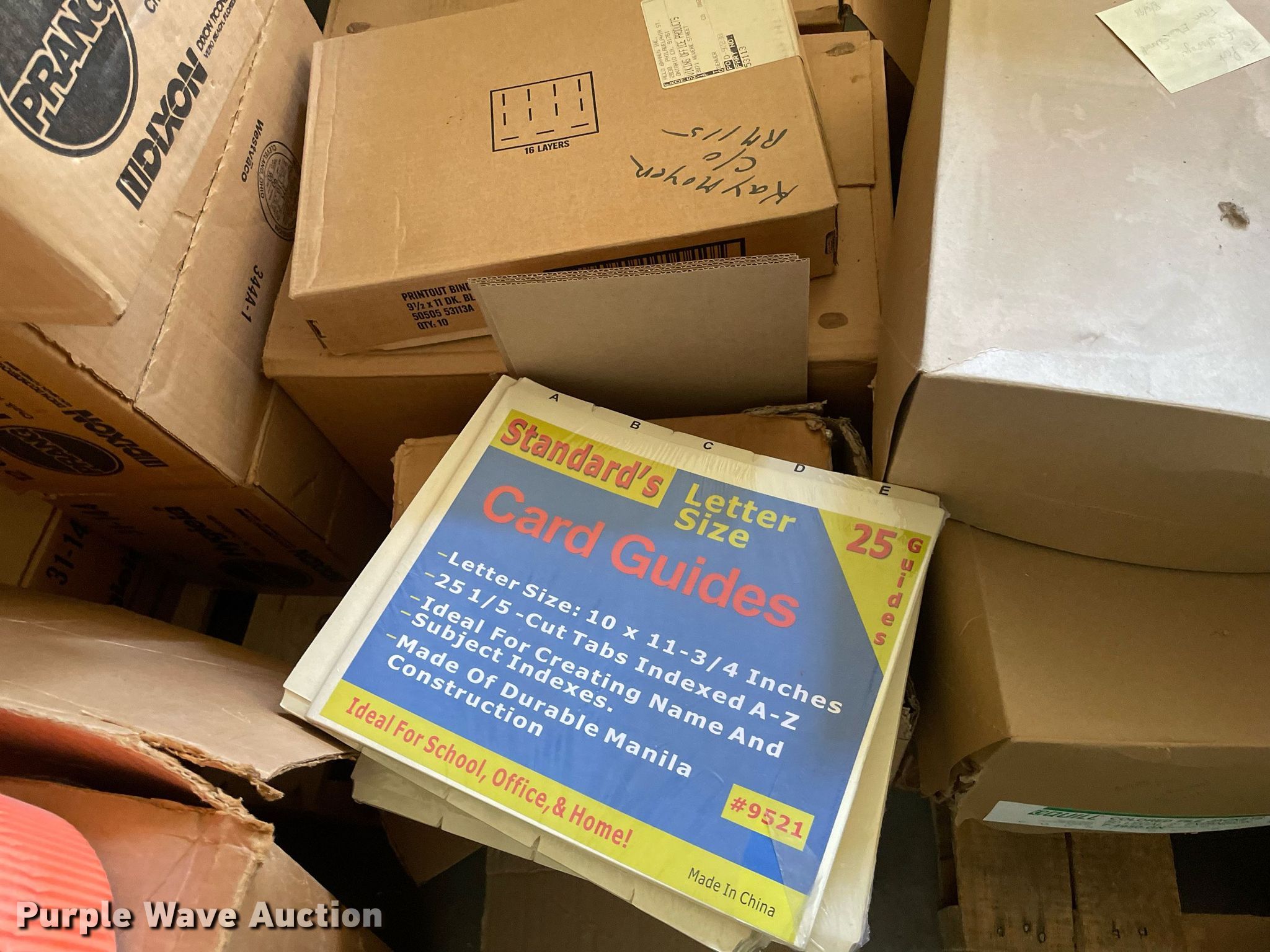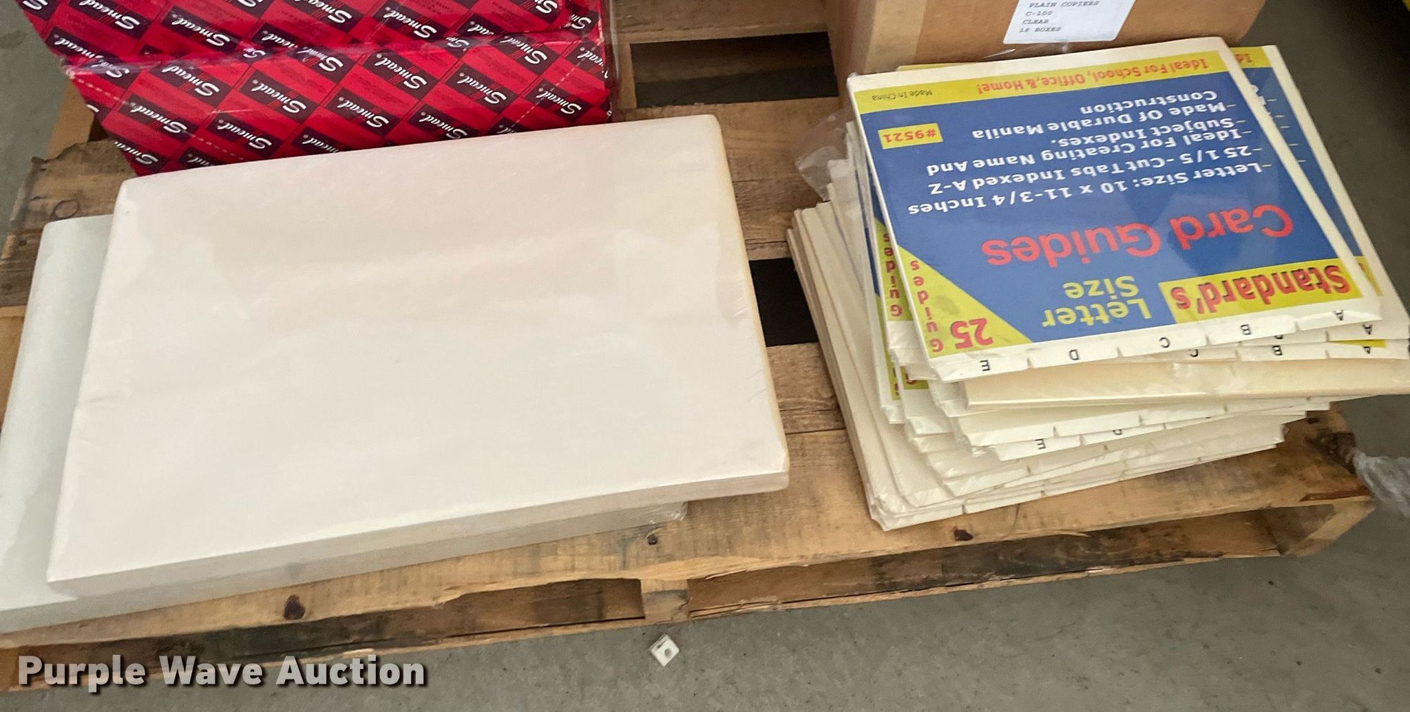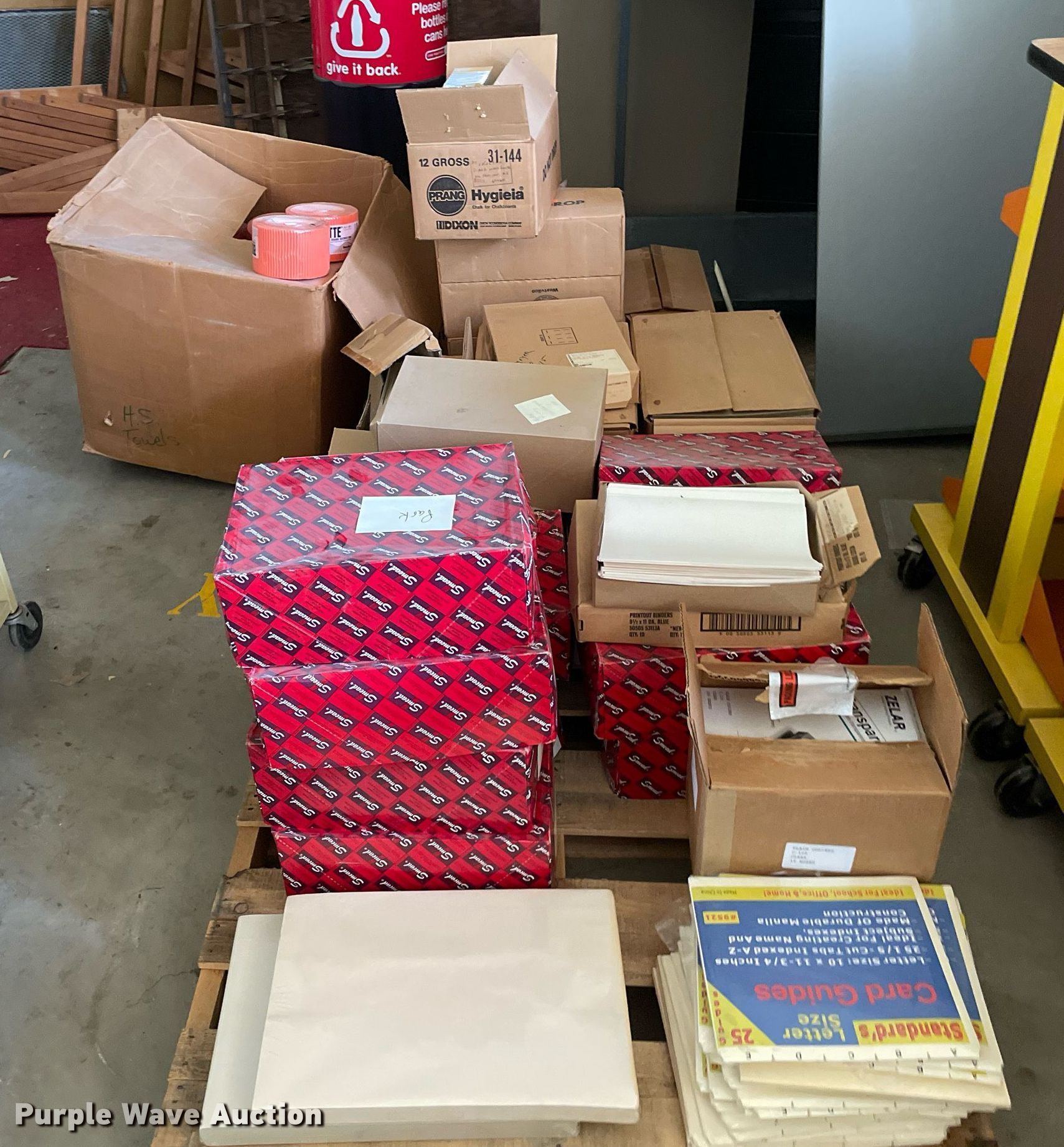 Purple Wave is selling a used Office Supplies and Equip. in Kansas. This item is a Office supplies with the following: Construction paper, Chalk, File jackets, Card guide and more