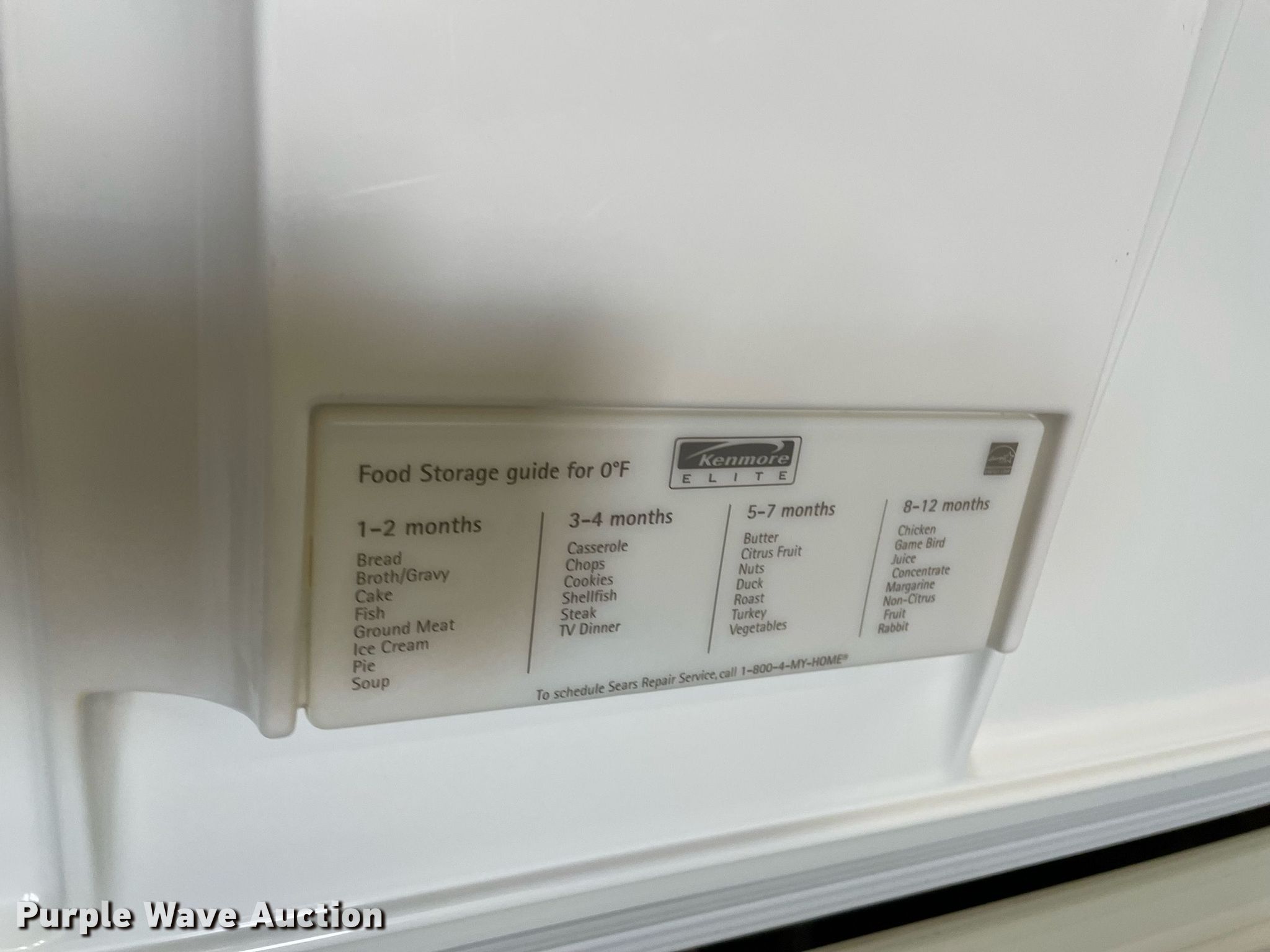 Purple Wave is selling a used Appliances in Kansas. This item is a (2) freezers with the following: Frigidaire, Kenmore Elite