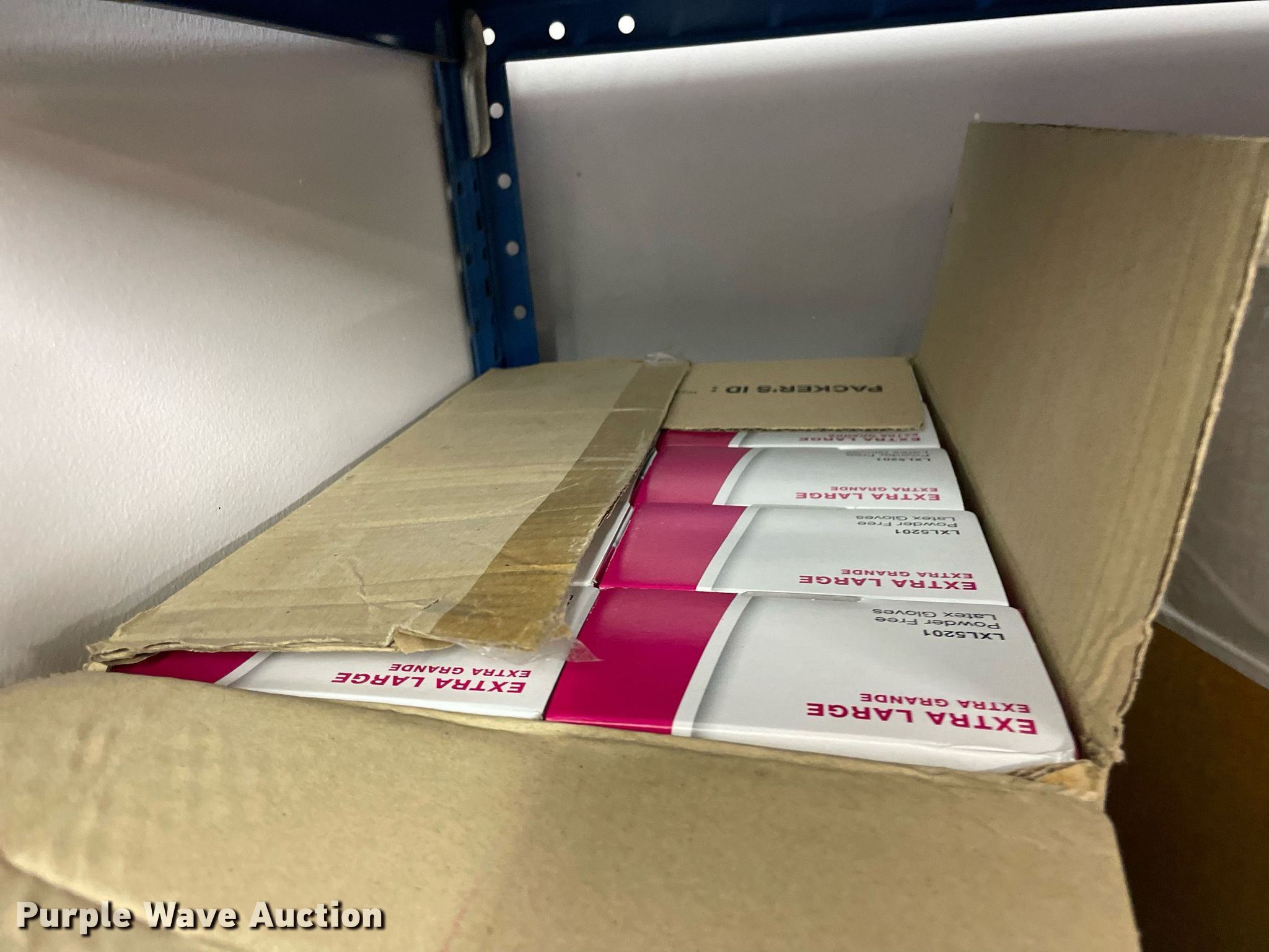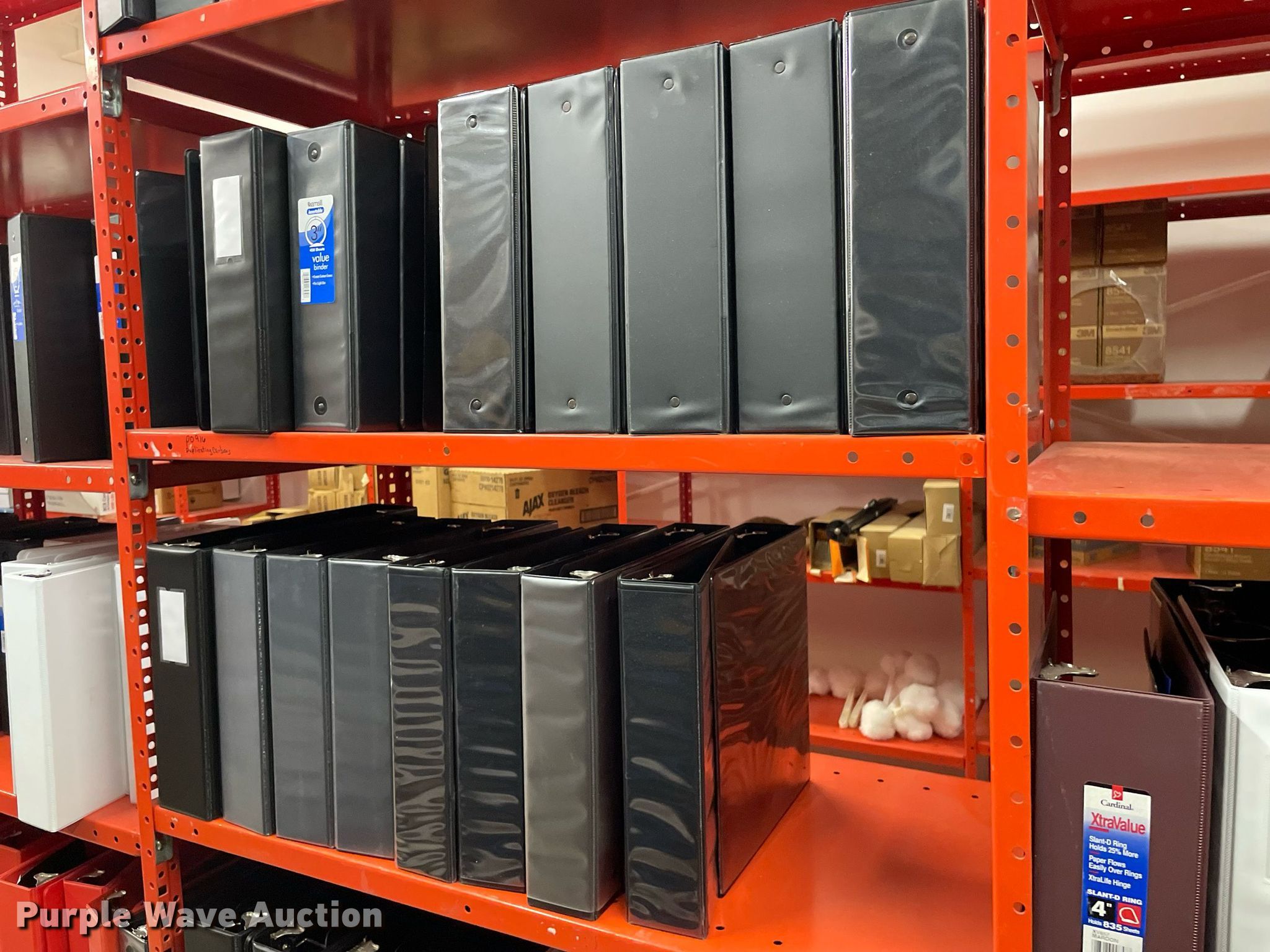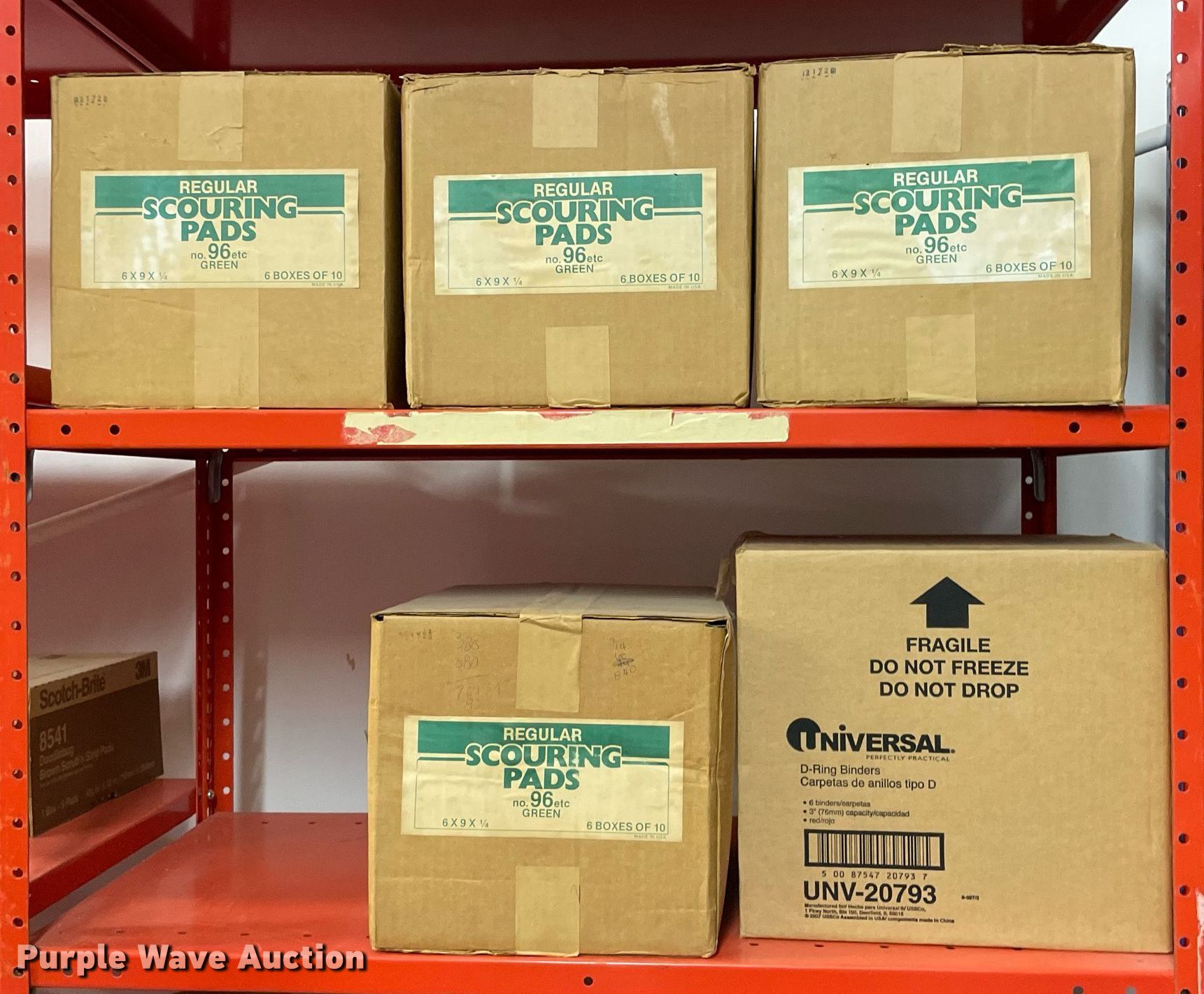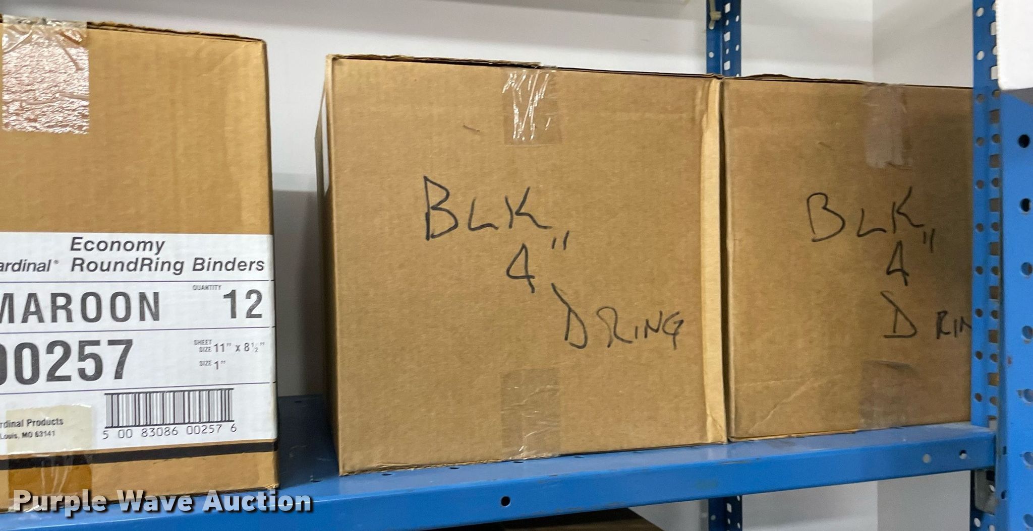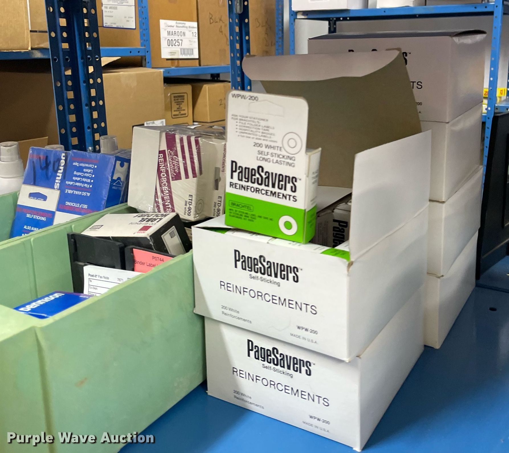Purple Wave is selling a used Office Supplies and Equip. in Kansas. This item is a Office supplies with the following: Gloves, Cotton balls, Infectious waste bags, Plastic cutlery, Hot/Cold packs, Foam cups, Bleach, Soap, Paint, Floor brushes, Binders and more