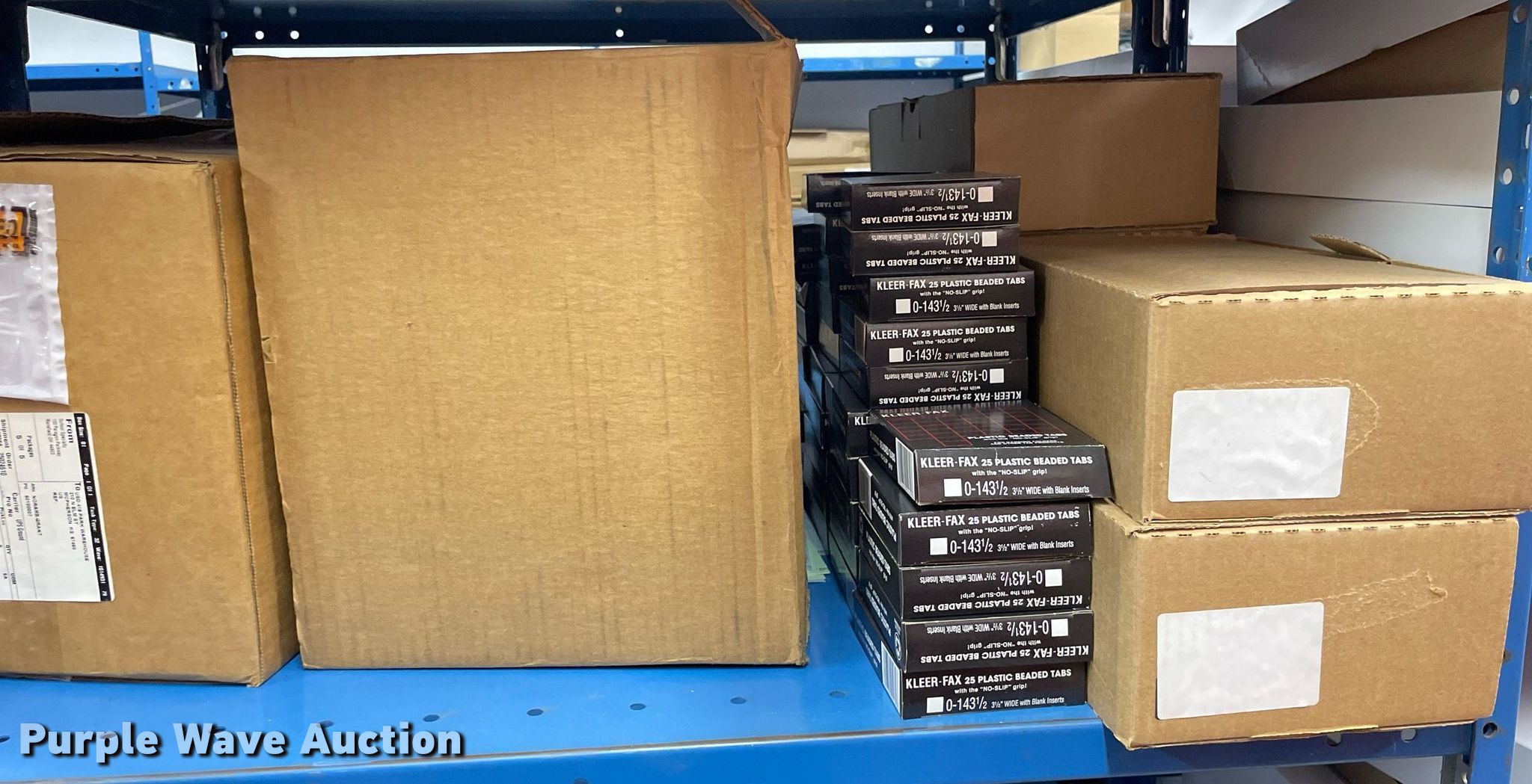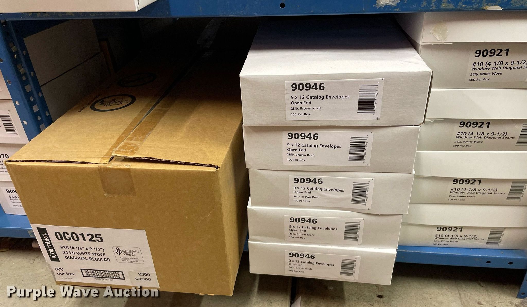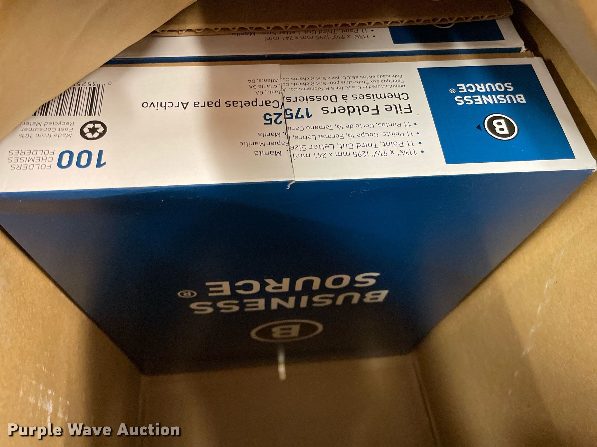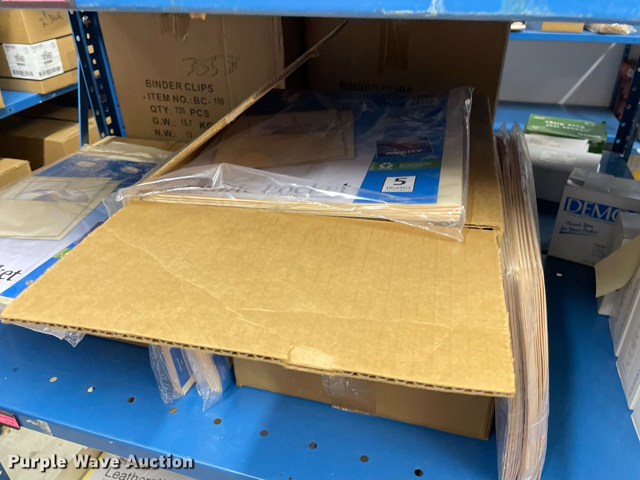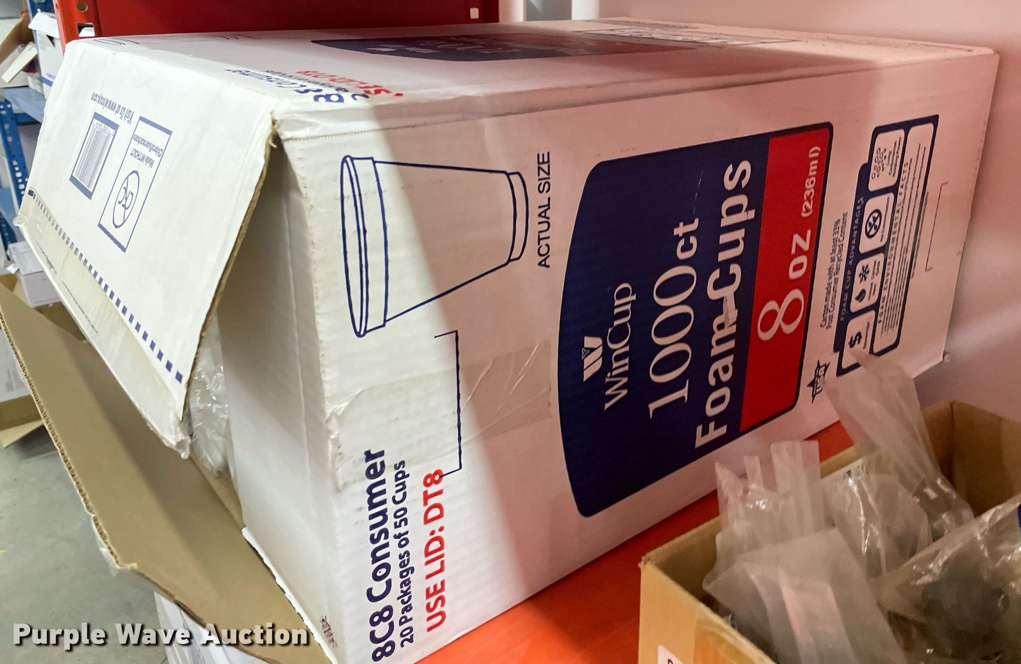 Purple Wave is selling a used Office Supplies and Equip. in Kansas. This item is a Office supplies with the following: Gloves, Cotton balls, Infectious waste bags, Plastic cutlery, Hot/Cold packs, Foam cups, Bleach, Soap, Paint, Floor brushes, Binders and more