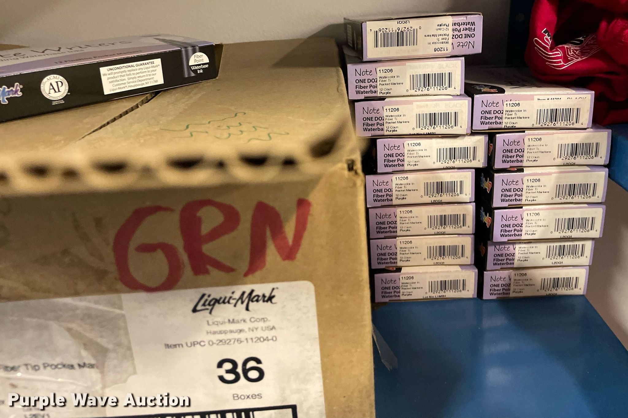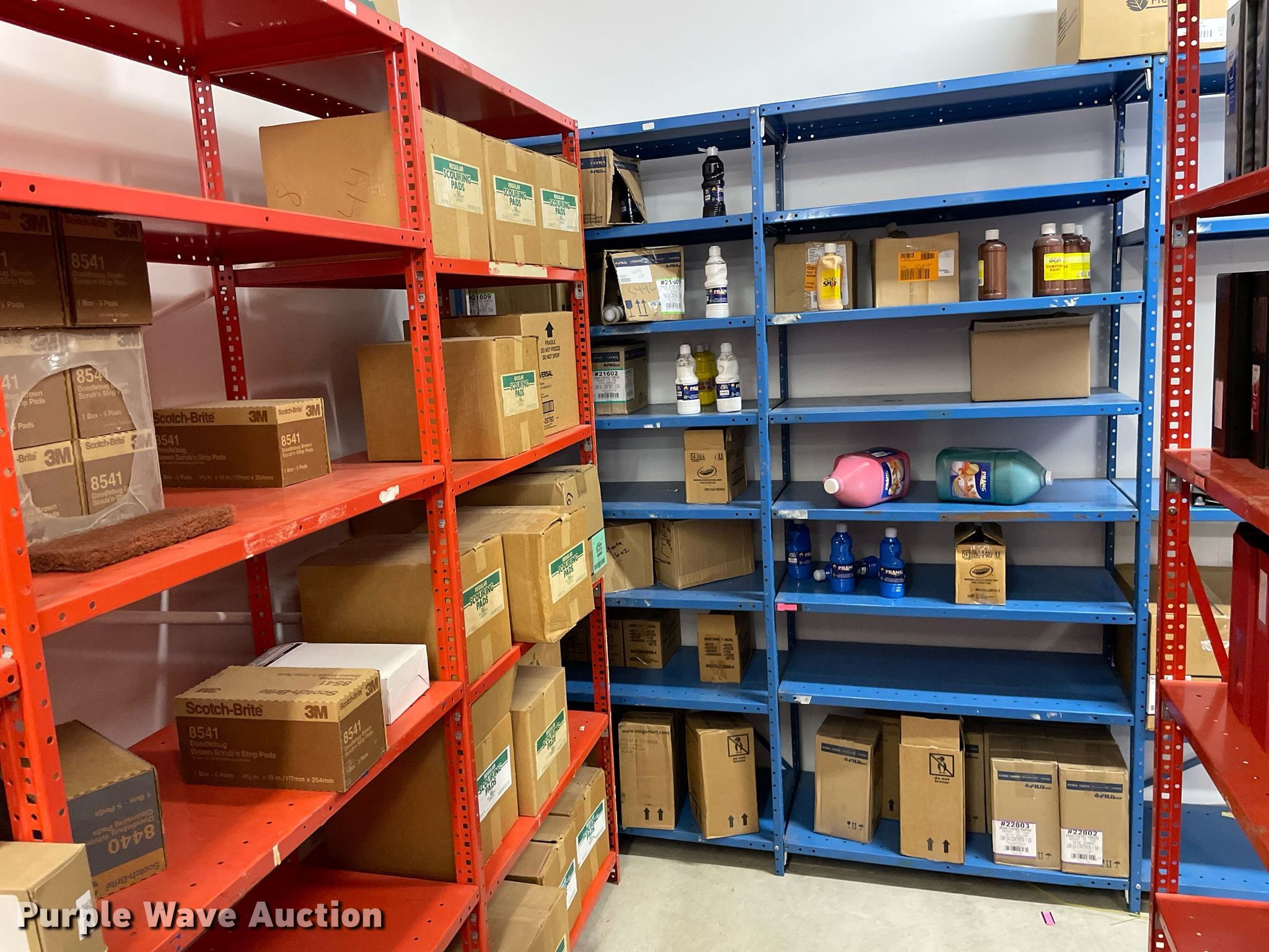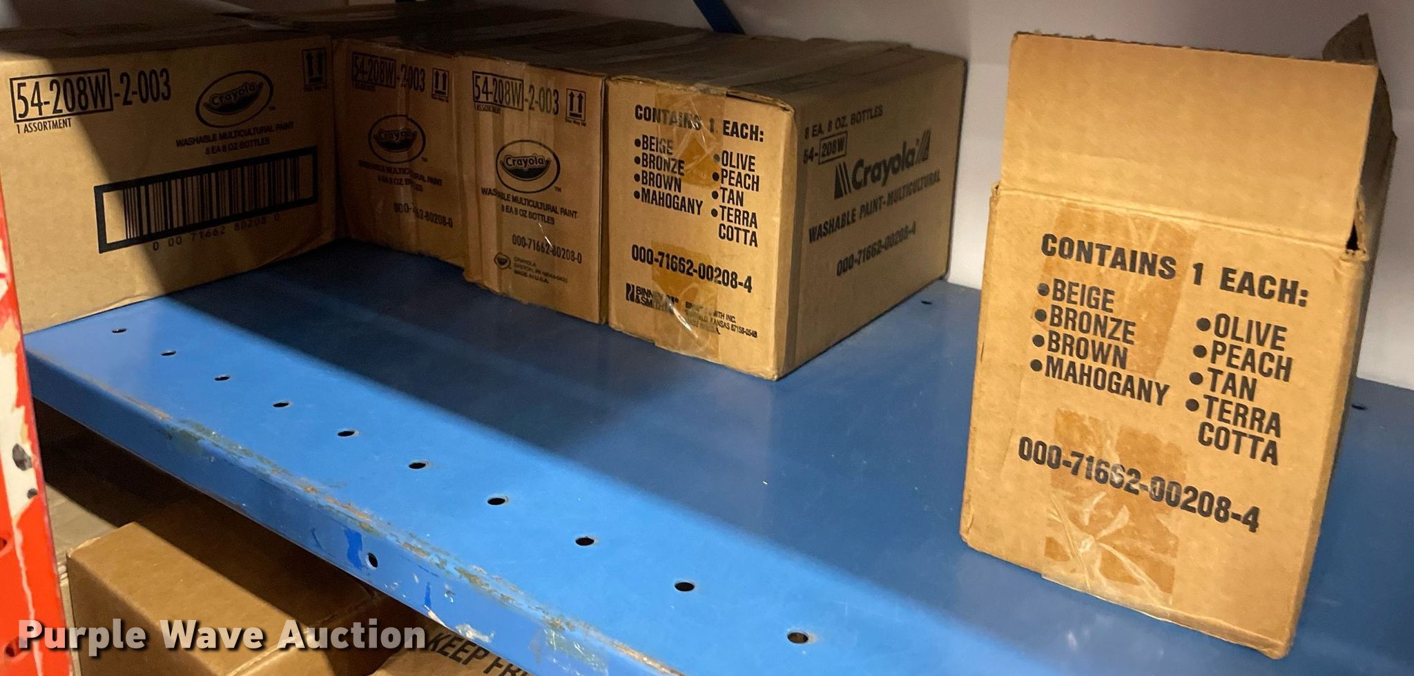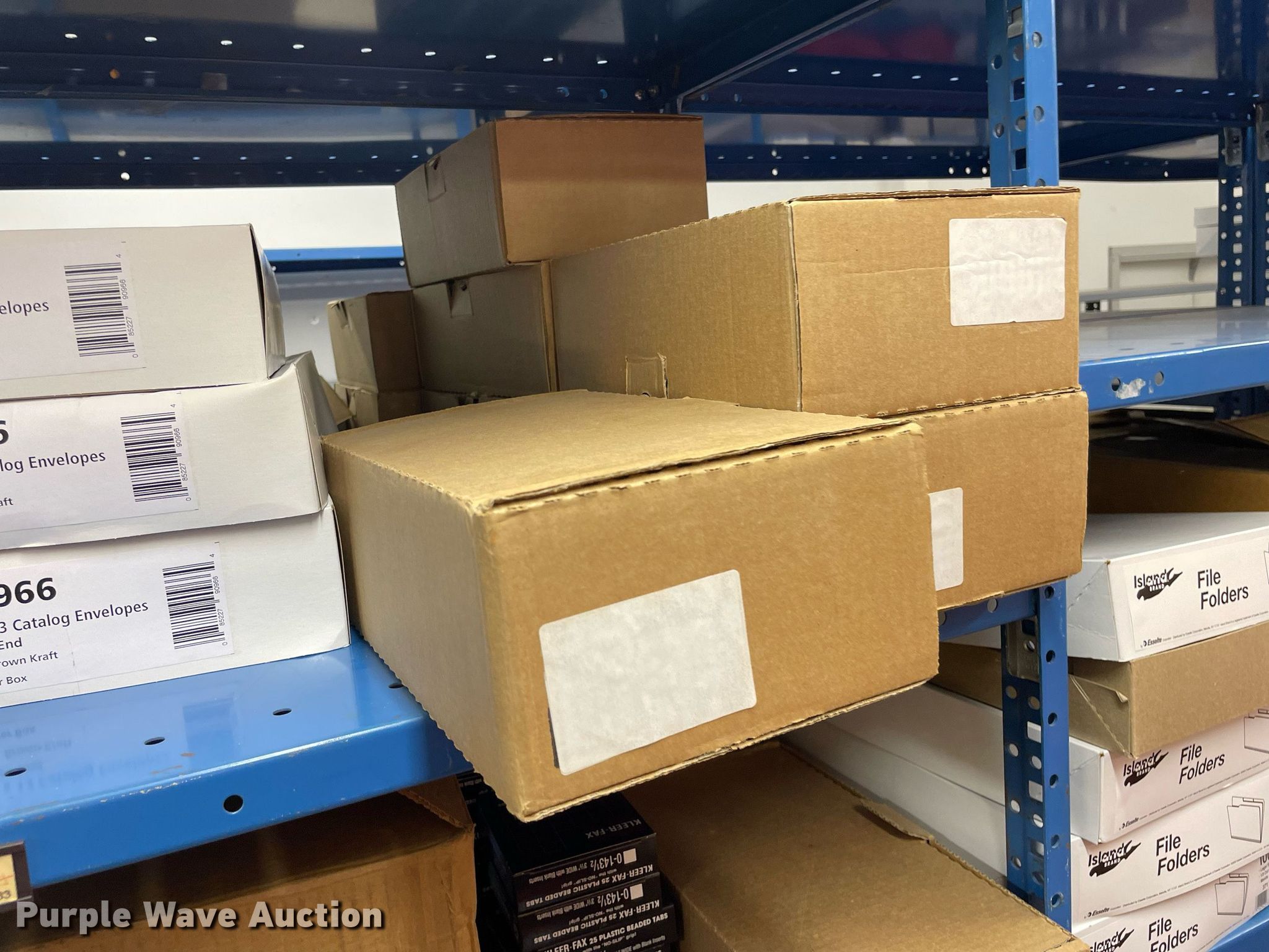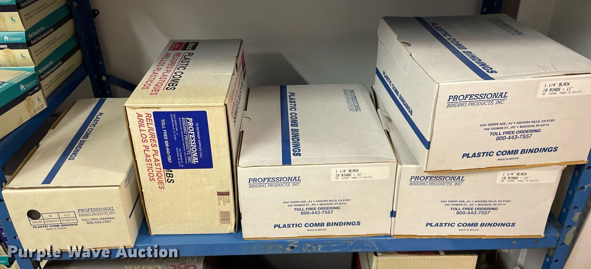 Purple Wave is selling a used Office Supplies and Equip. in Kansas. This item is a Office supplies with the following: Gloves, Cotton balls, Infectious waste bags, Plastic cutlery, Hot/Cold packs, Foam cups, Bleach, Soap, Paint, Floor brushes, Binders and more
