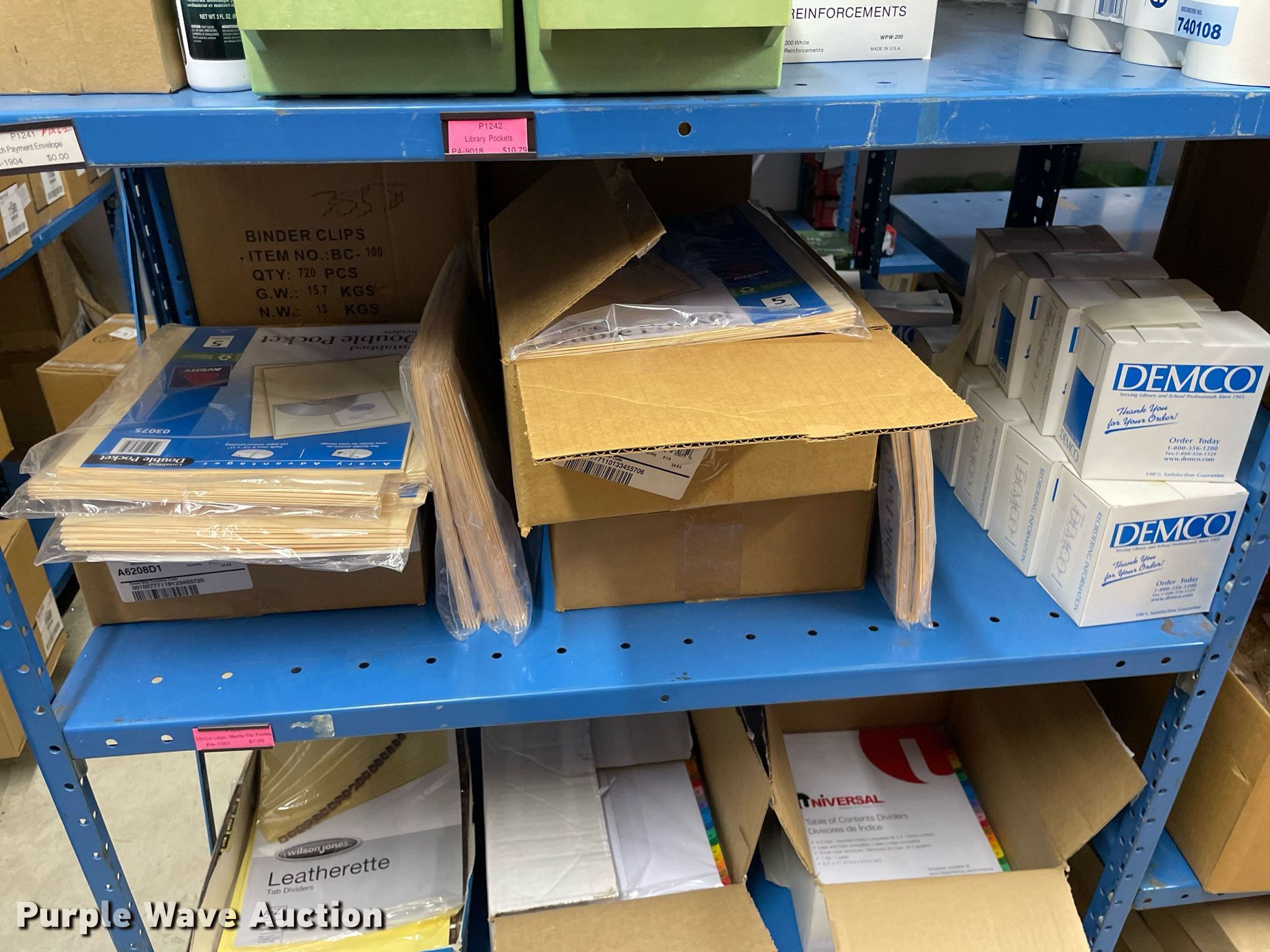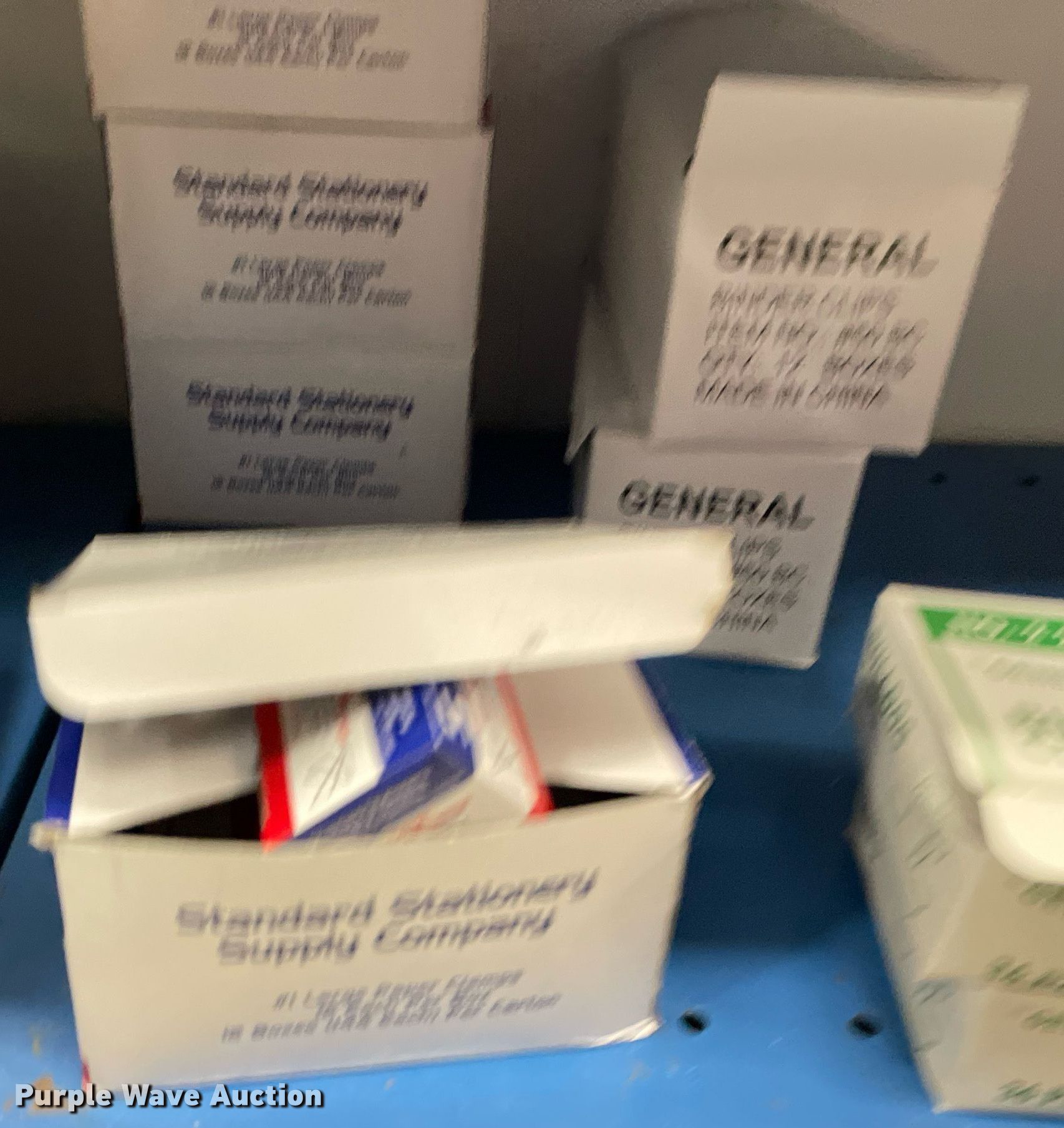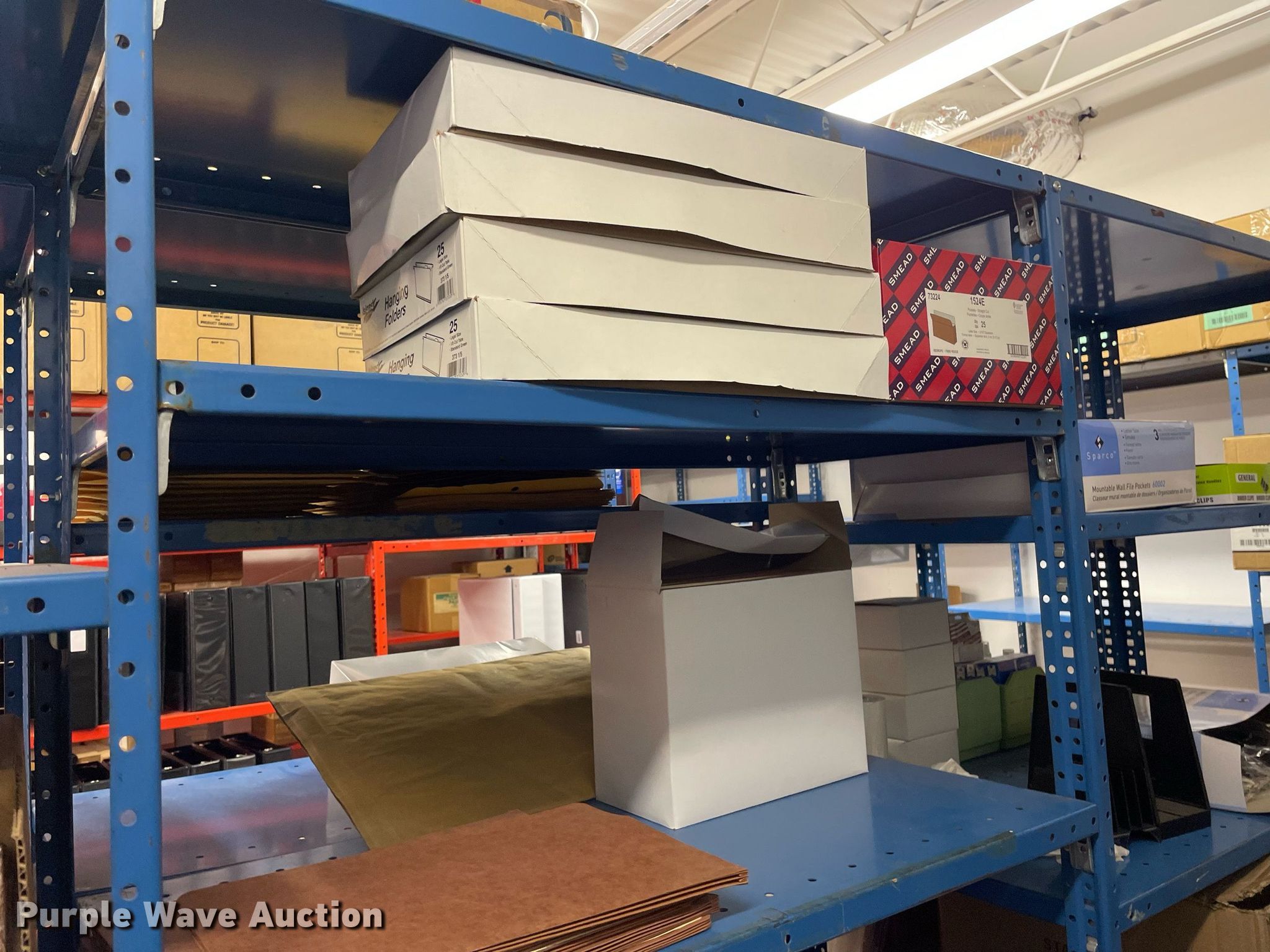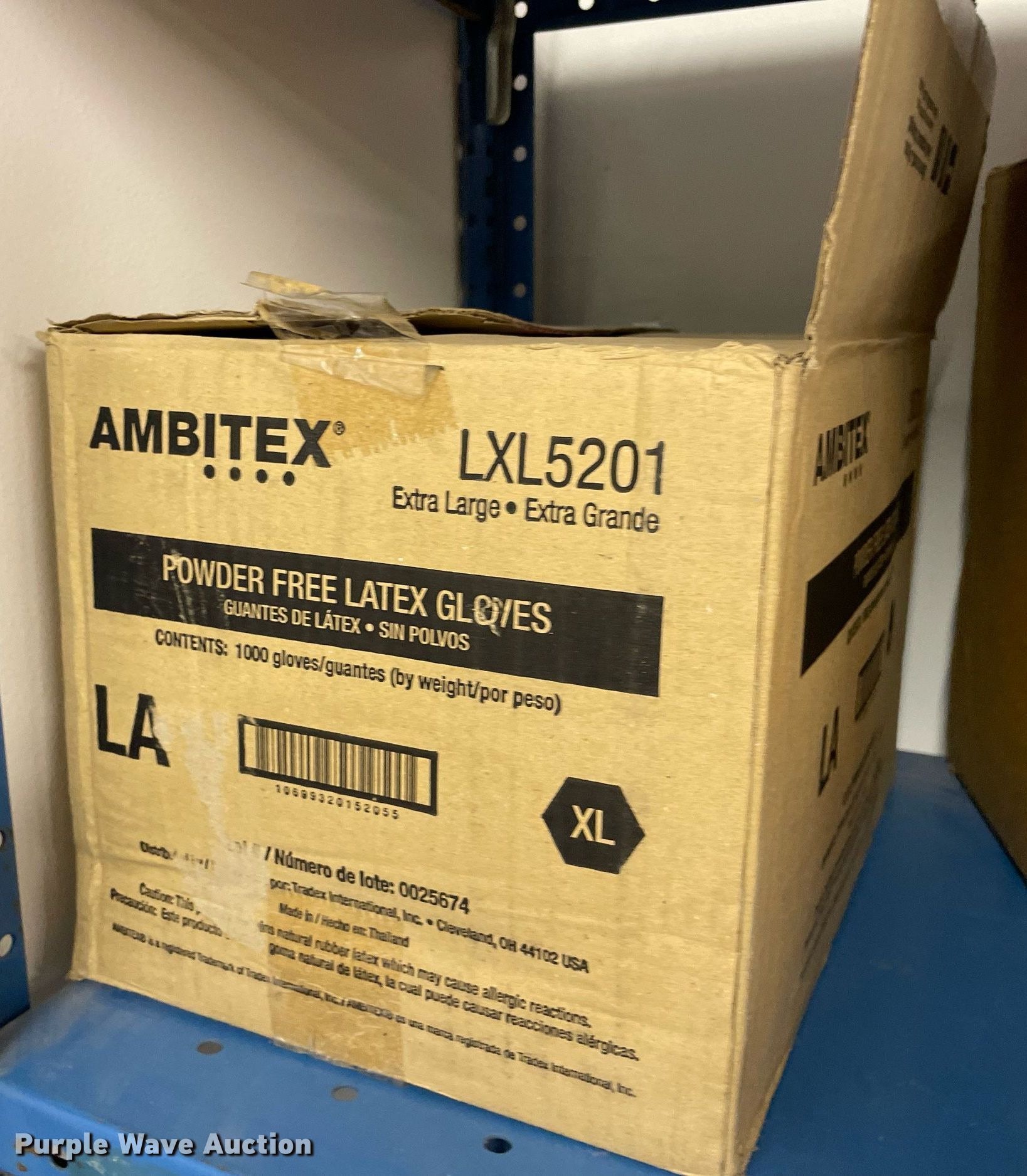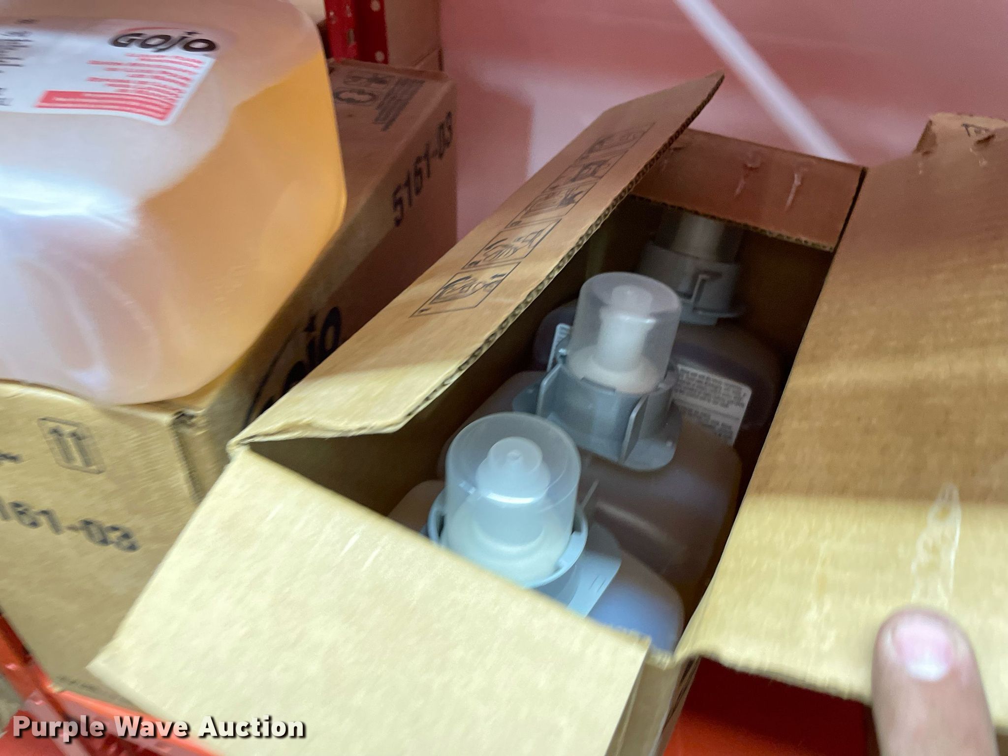 Purple Wave is selling a used Office Supplies and Equip. in Kansas. This item is a Office supplies with the following: Gloves, Cotton balls, Infectious waste bags, Plastic cutlery, Hot/Cold packs, Foam cups, Bleach, Soap, Paint, Floor brushes, Binders and more
