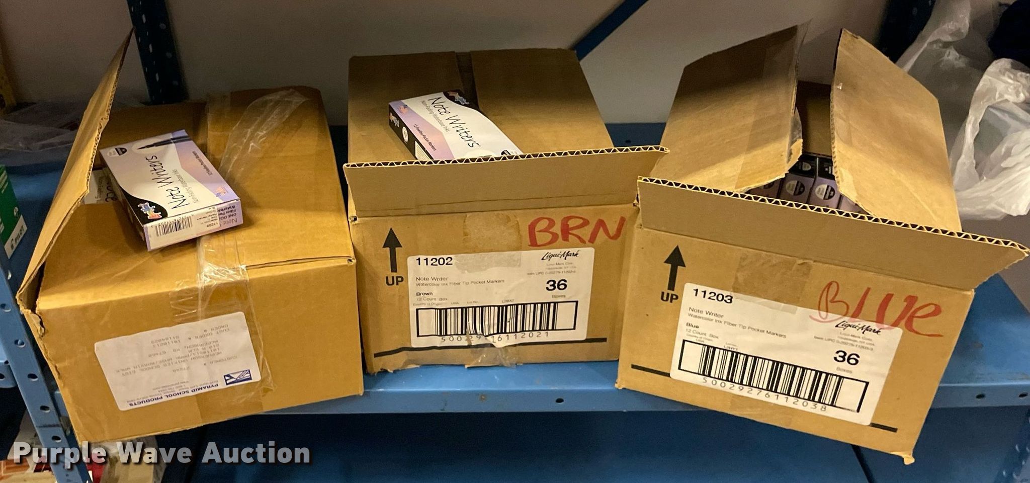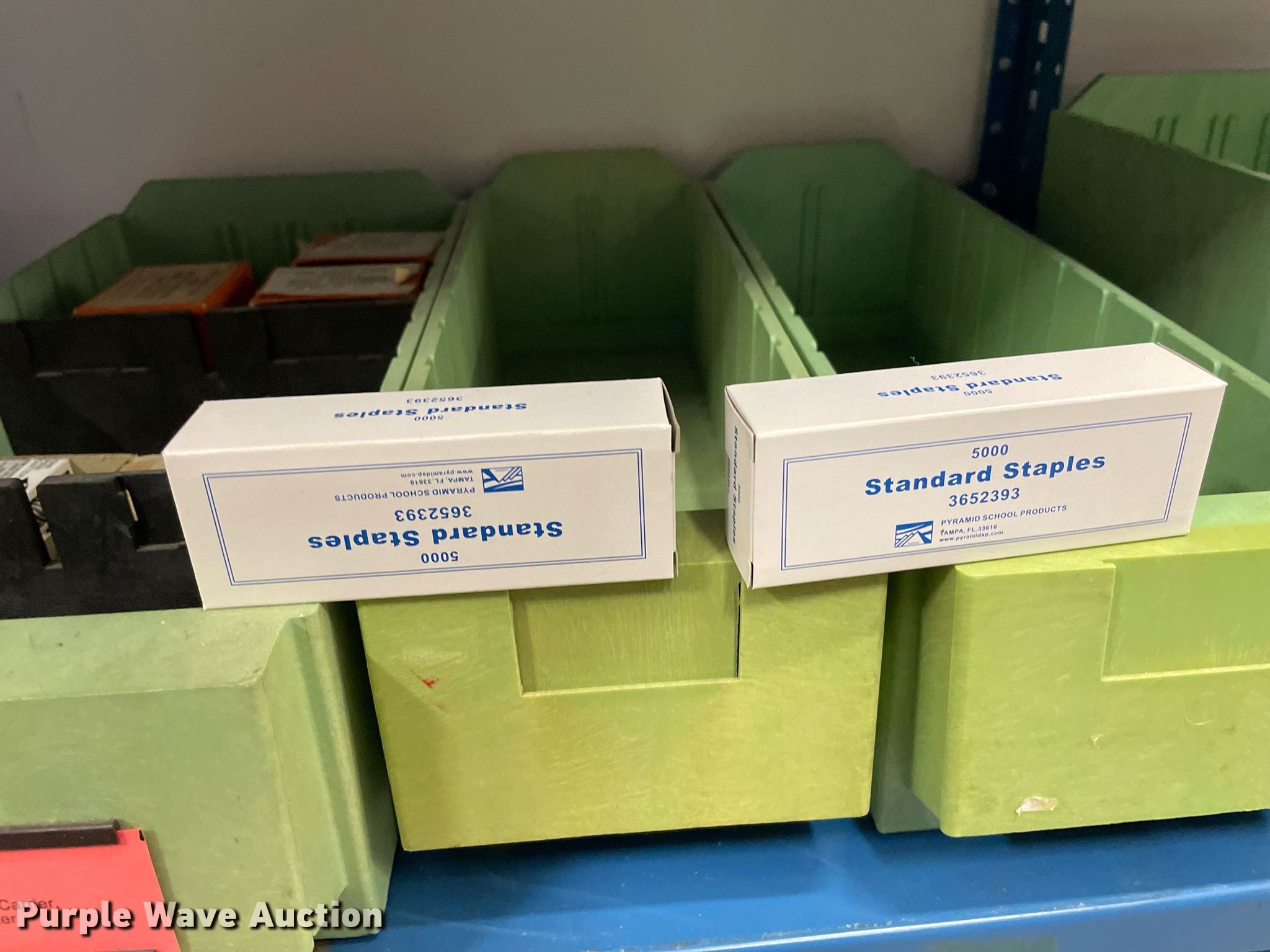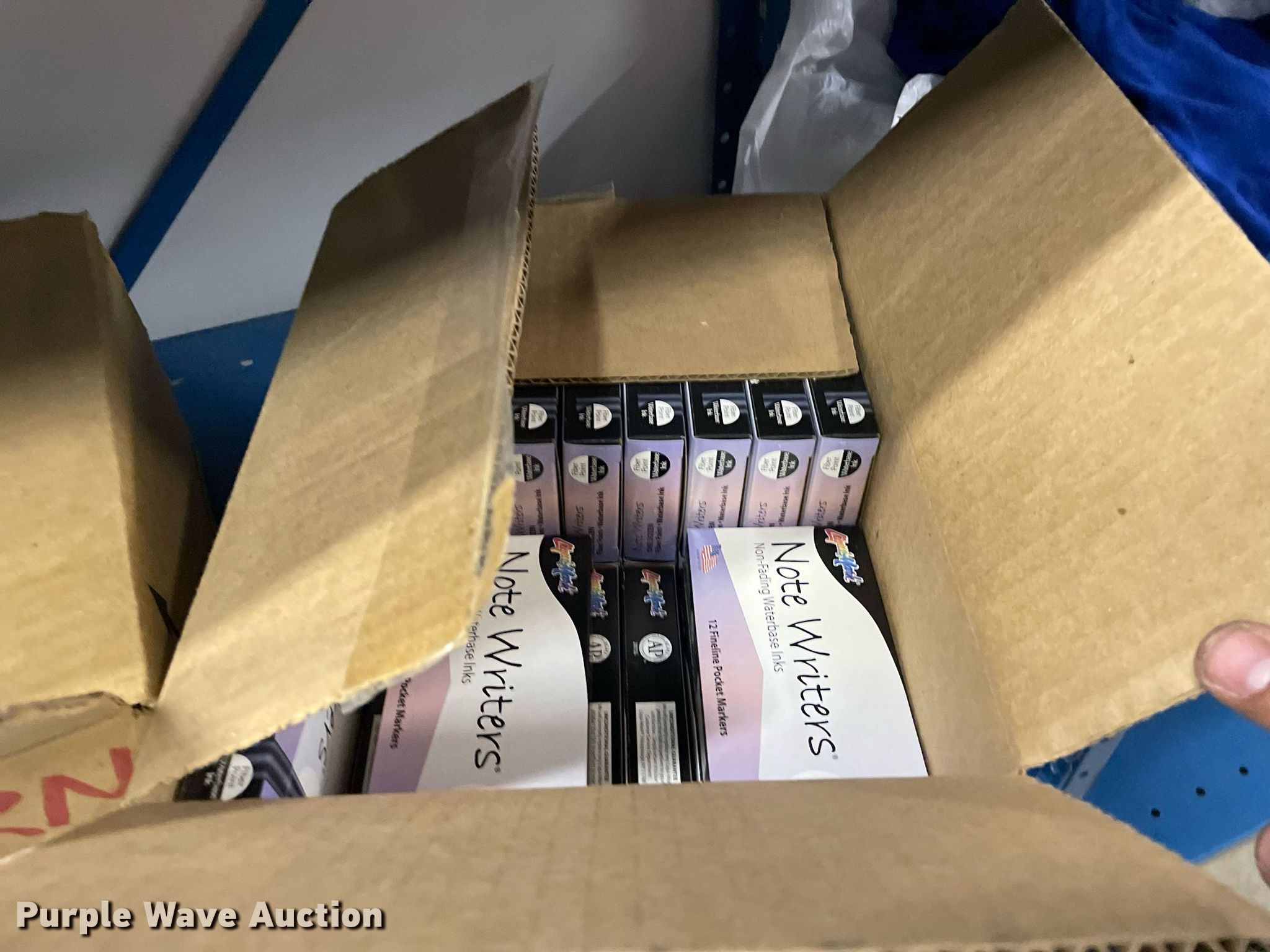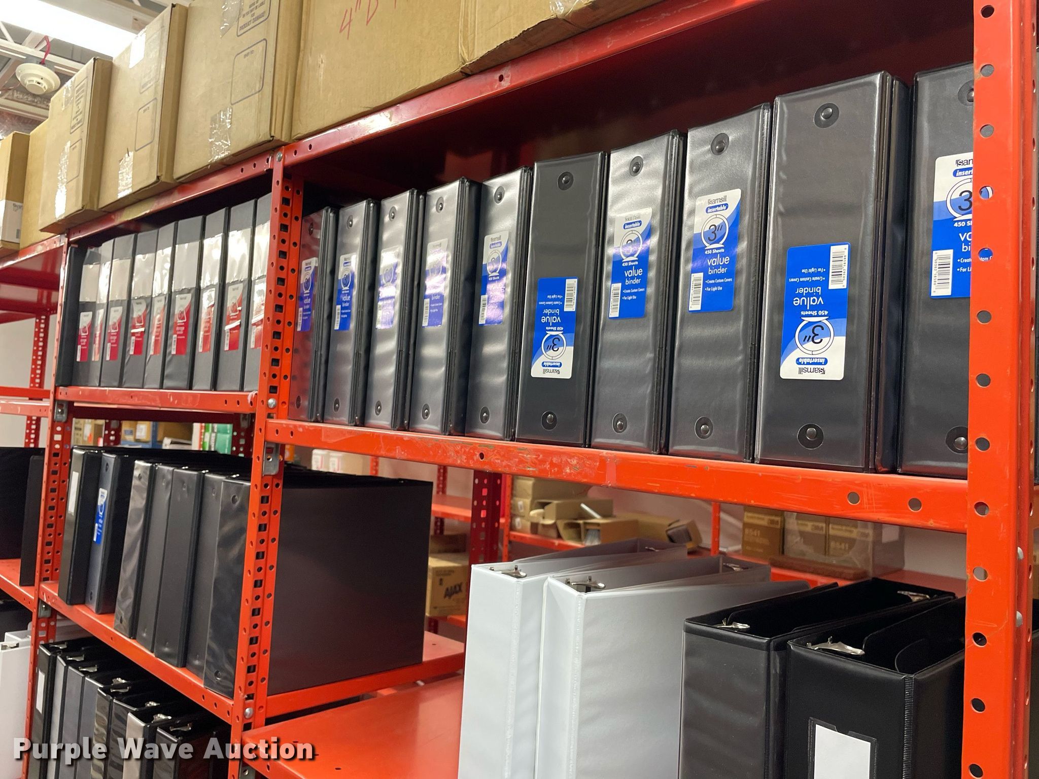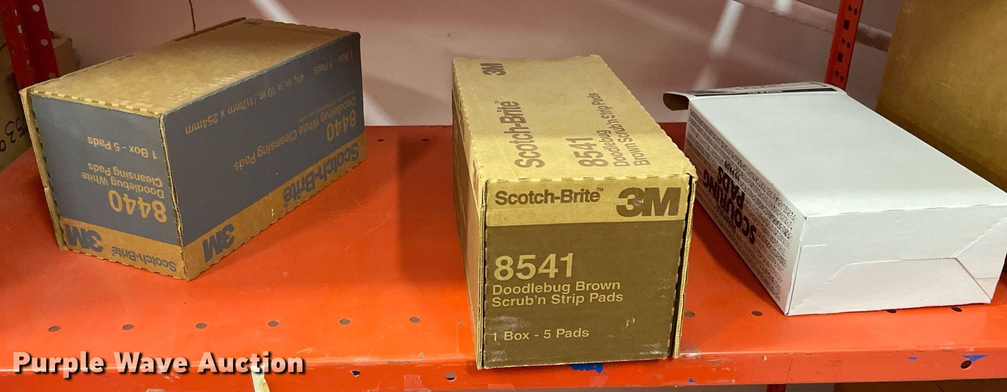 Purple Wave is selling a used Office Supplies and Equip. in Kansas. This item is a Office supplies with the following: Gloves, Cotton balls, Infectious waste bags, Plastic cutlery, Hot/Cold packs, Foam cups, Bleach, Soap, Paint, Floor brushes, Binders and more