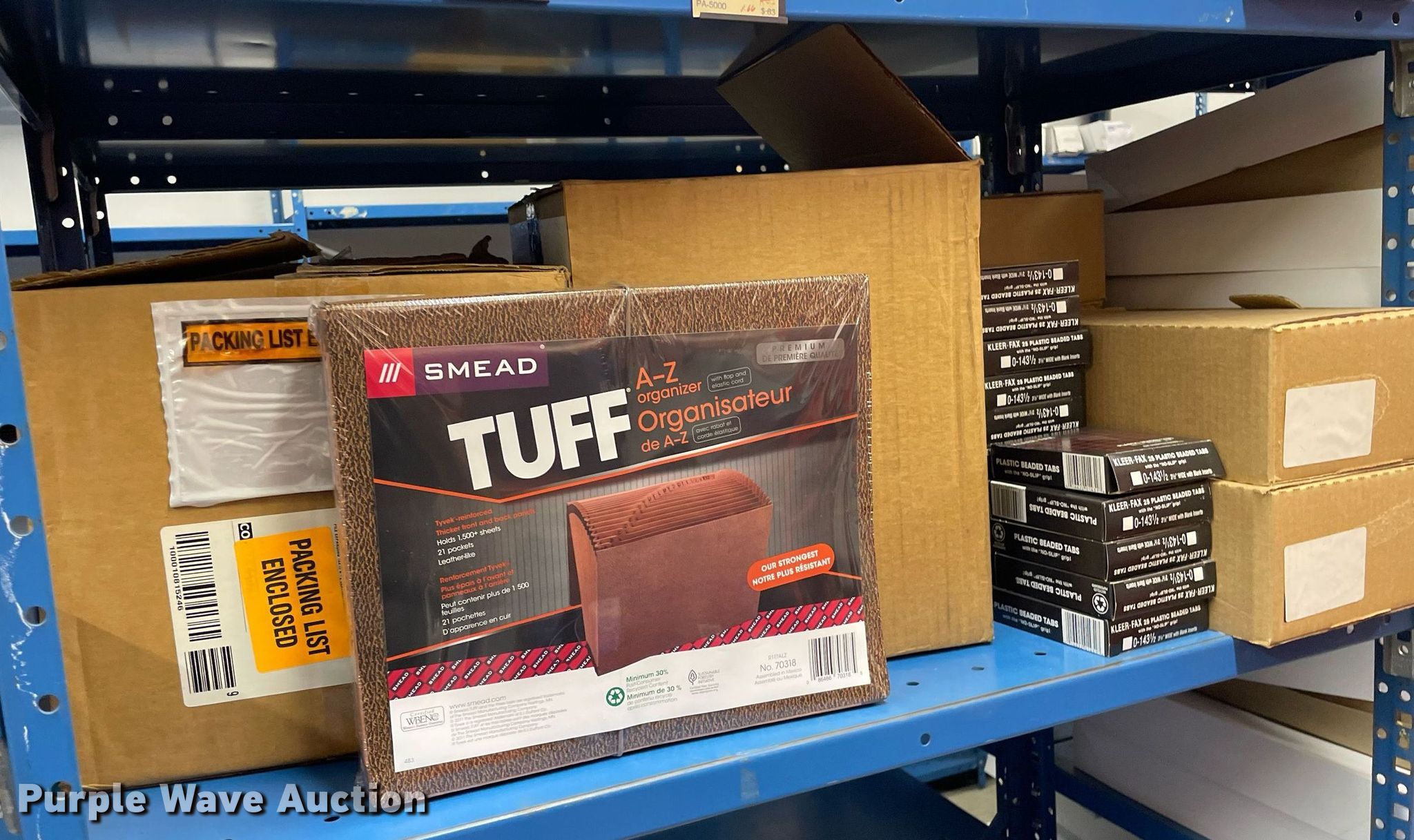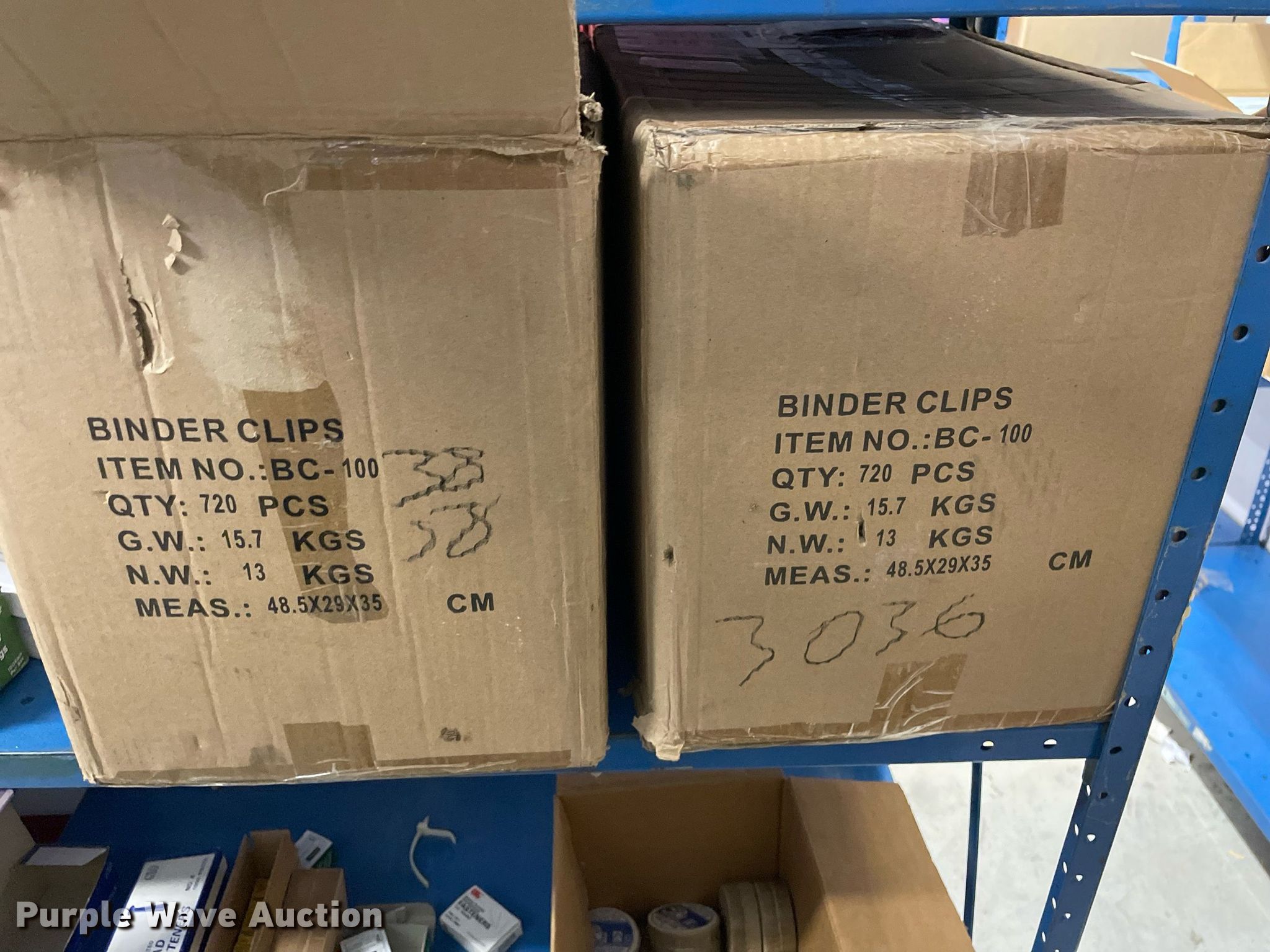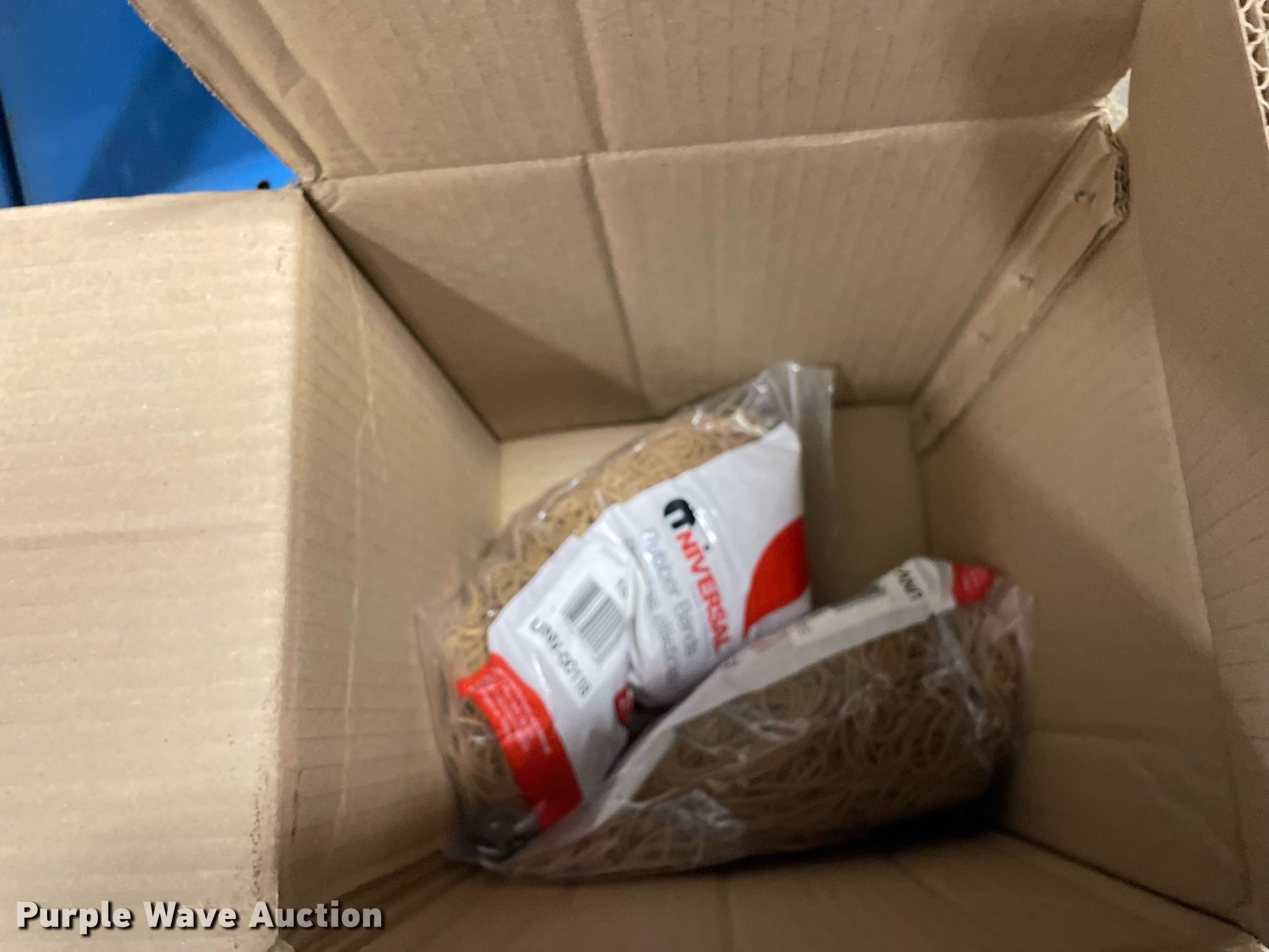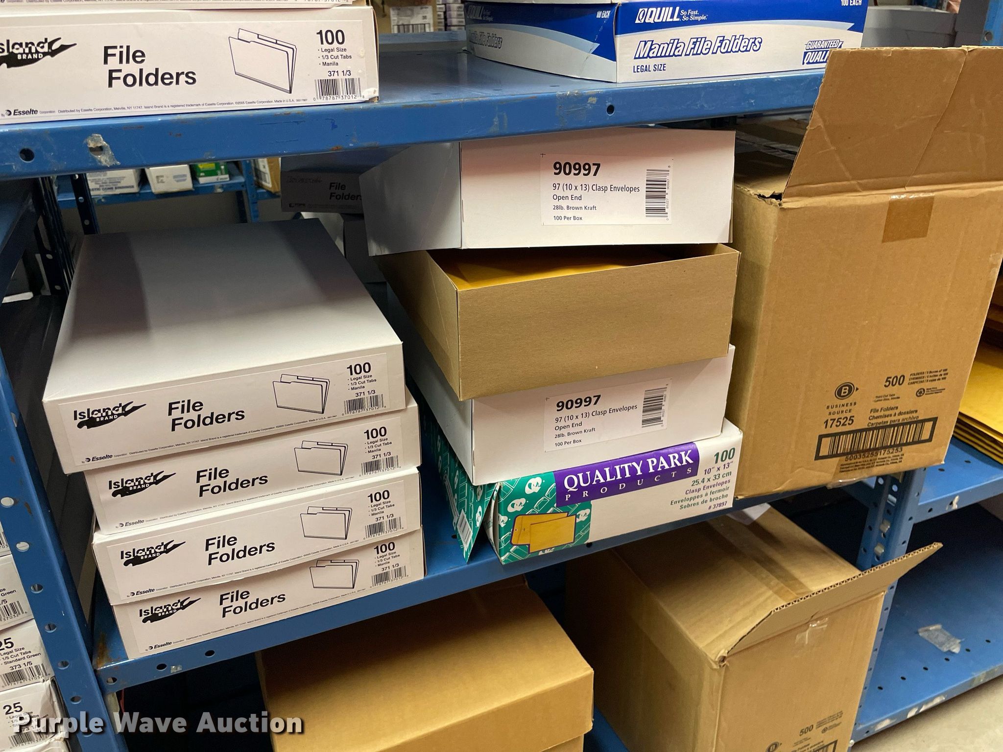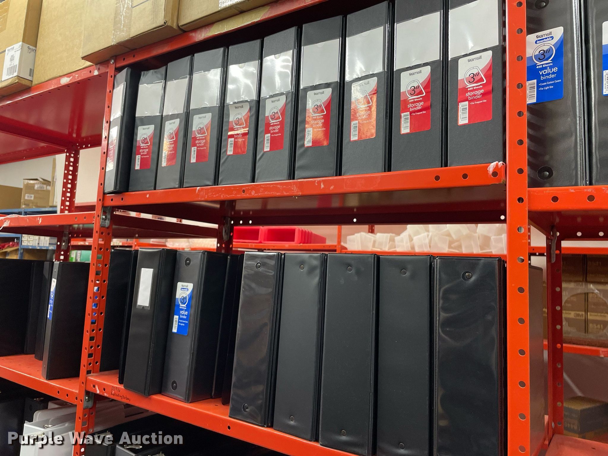 Purple Wave is selling a used Office Supplies and Equip. in Kansas. This item is a Office supplies with the following: Gloves, Cotton balls, Infectious waste bags, Plastic cutlery, Hot/Cold packs, Foam cups, Bleach, Soap, Paint, Floor brushes, Binders and more