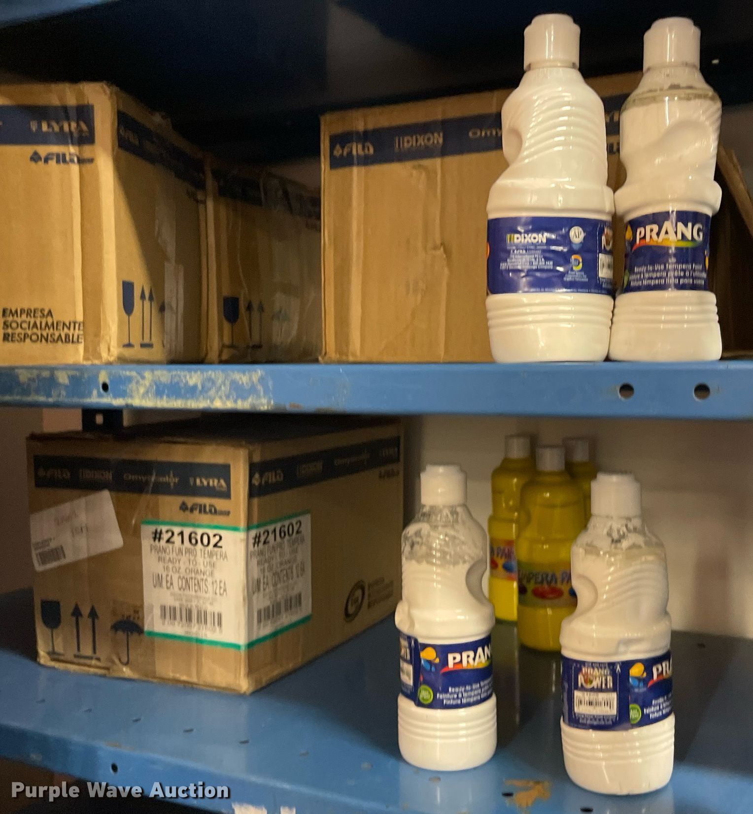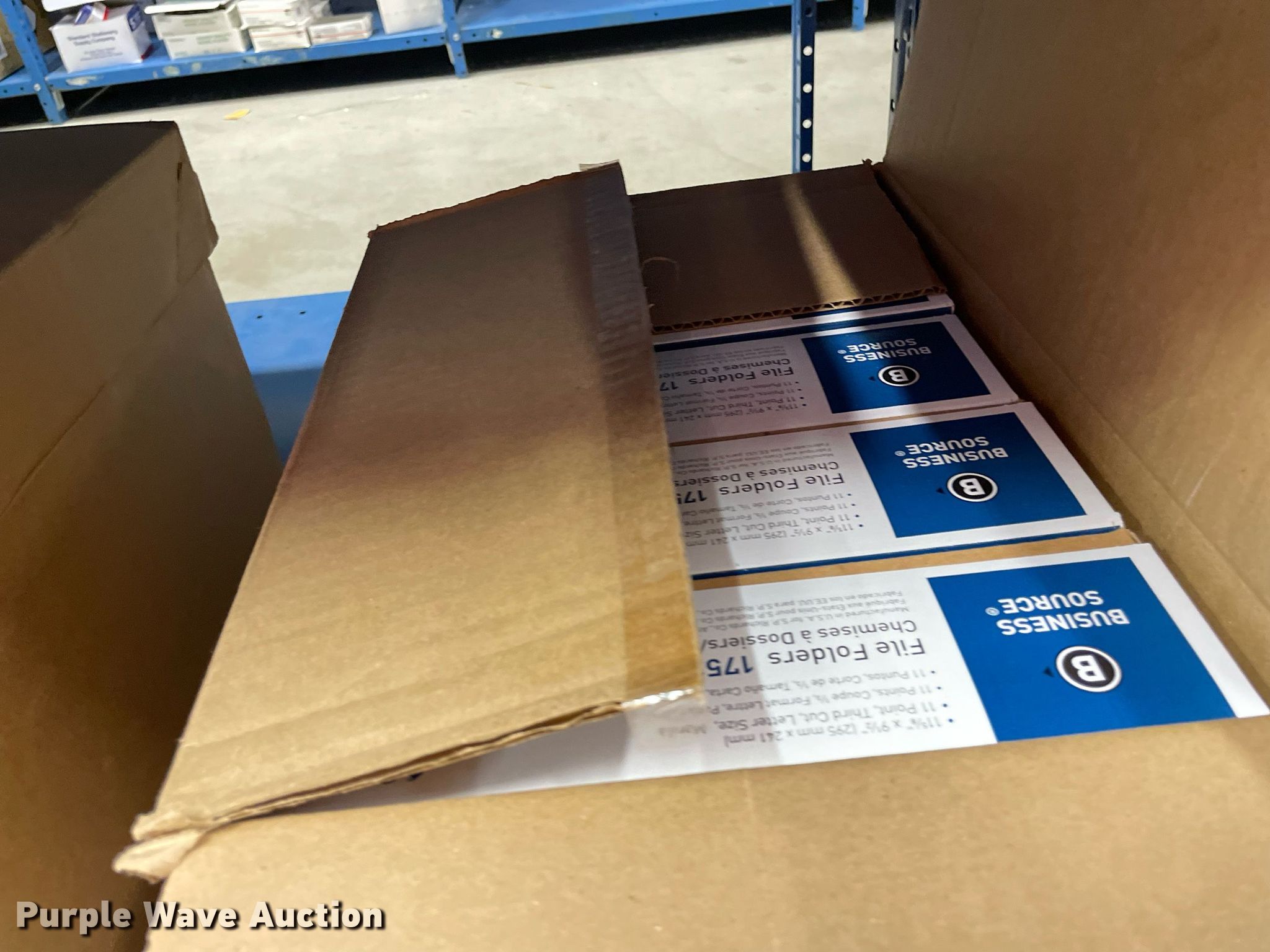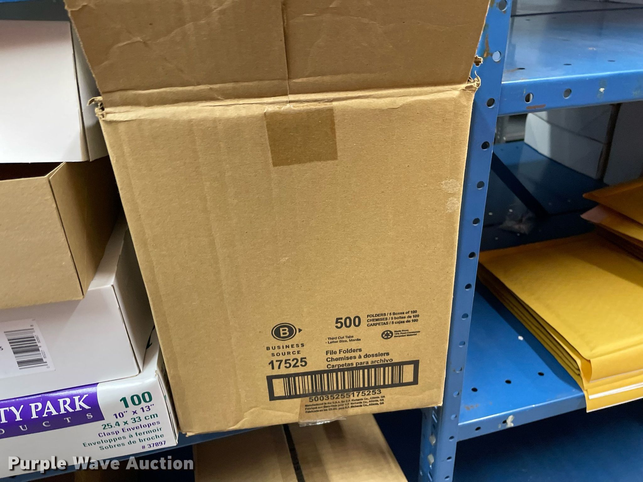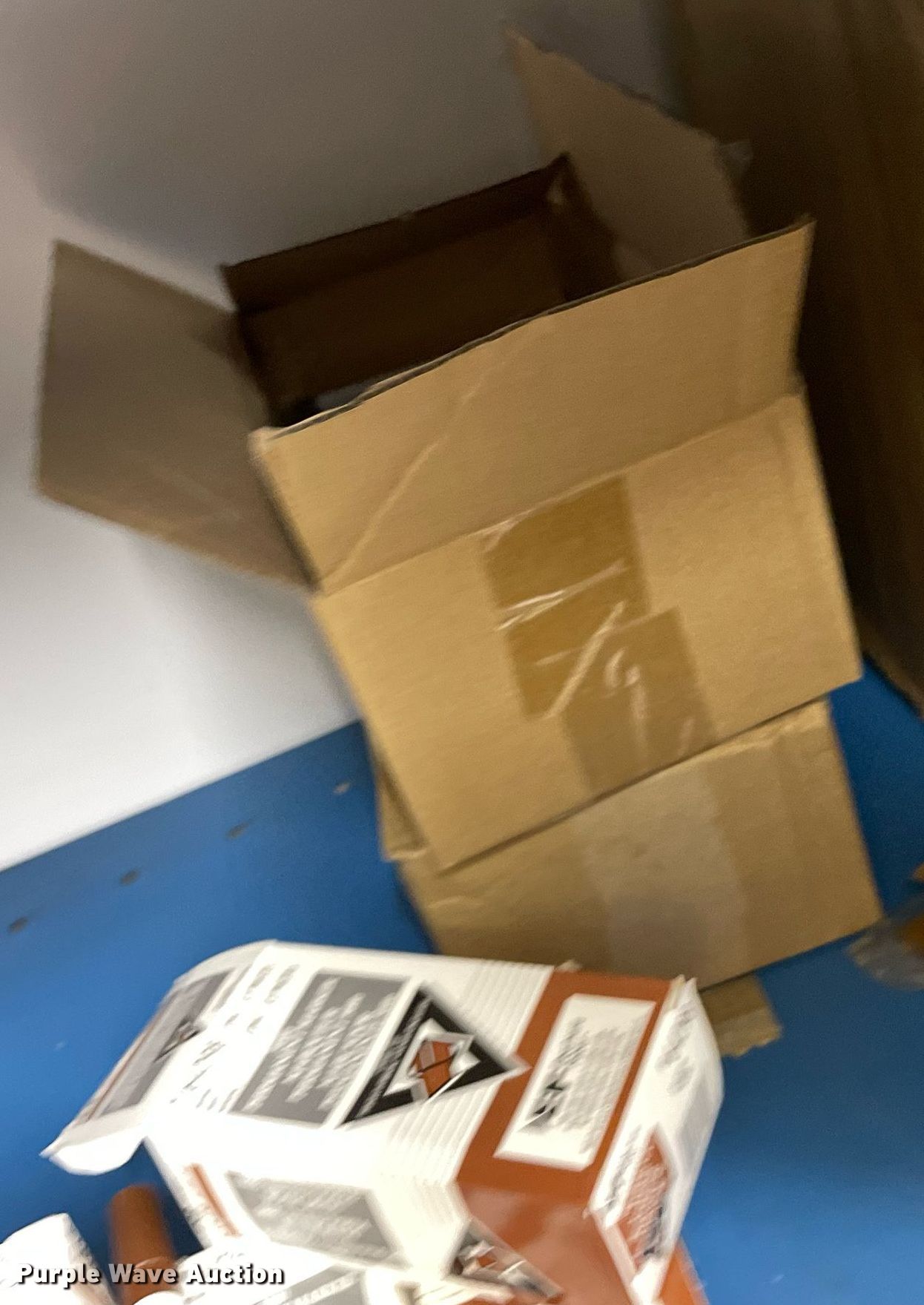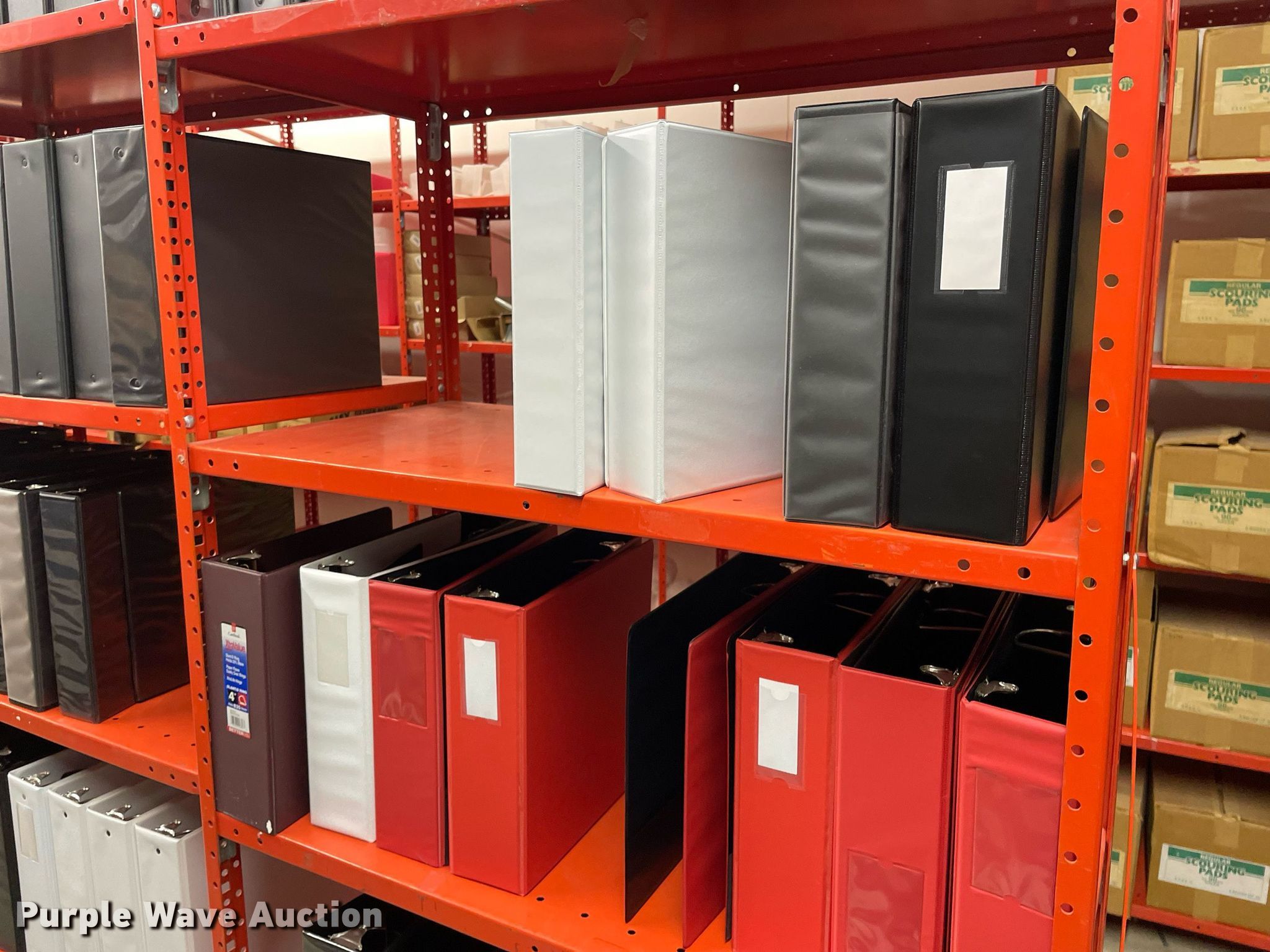 Purple Wave is selling a used Office Supplies and Equip. in Kansas. This item is a Office supplies with the following: Gloves, Cotton balls, Infectious waste bags, Plastic cutlery, Hot/Cold packs, Foam cups, Bleach, Soap, Paint, Floor brushes, Binders and more