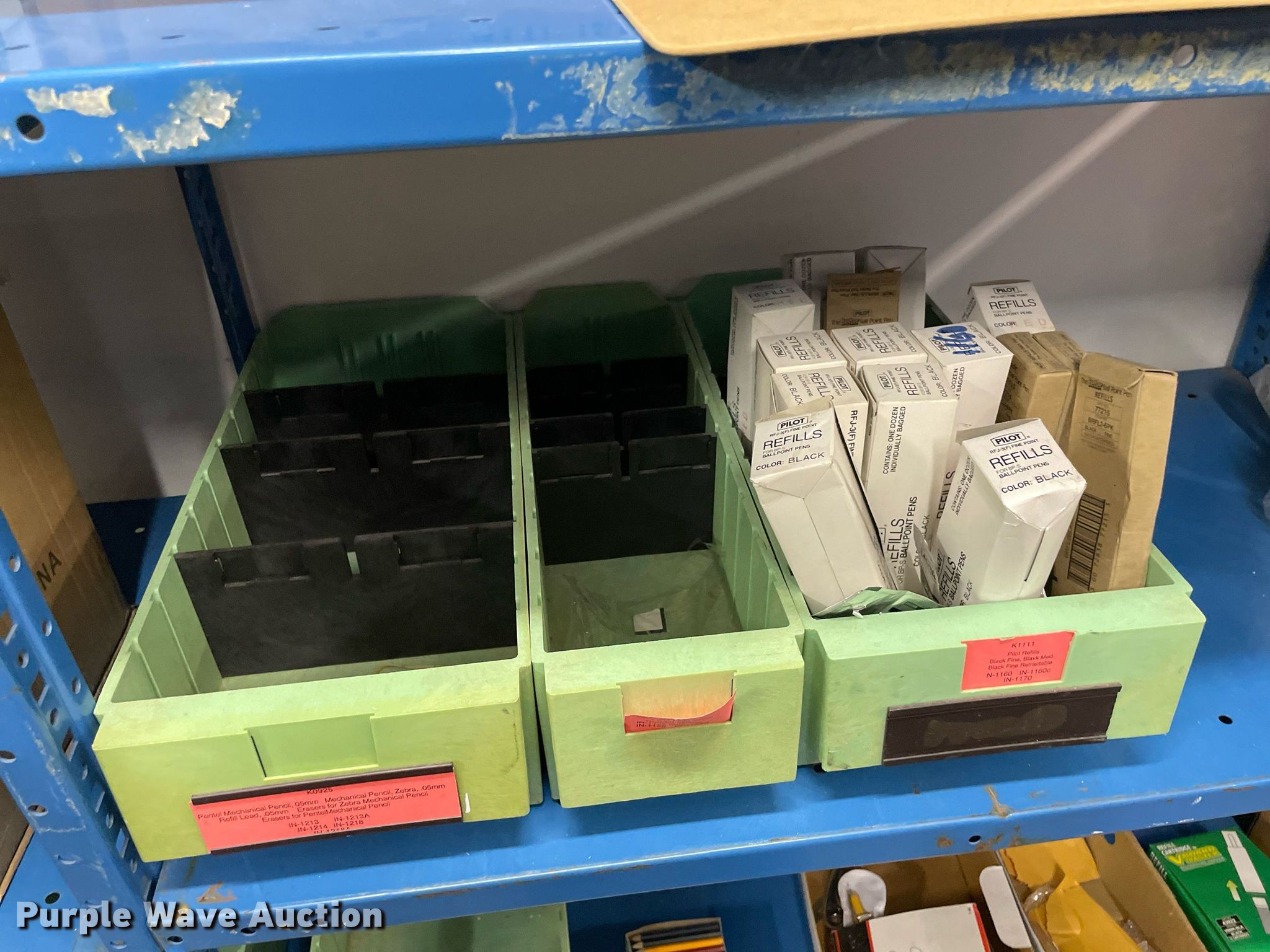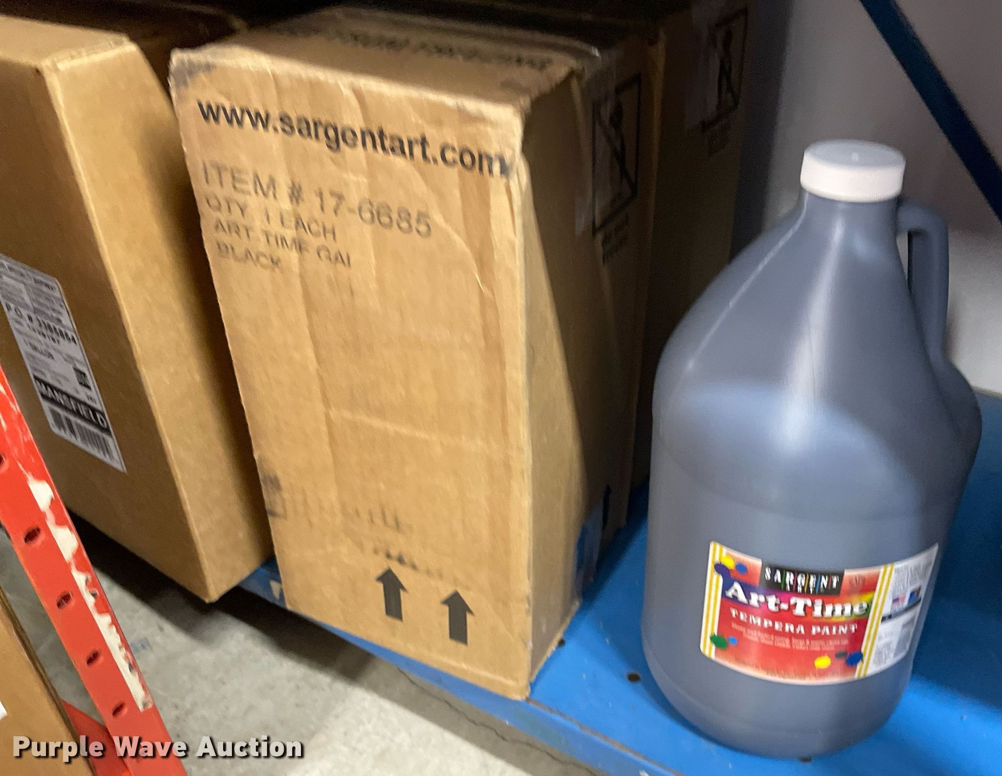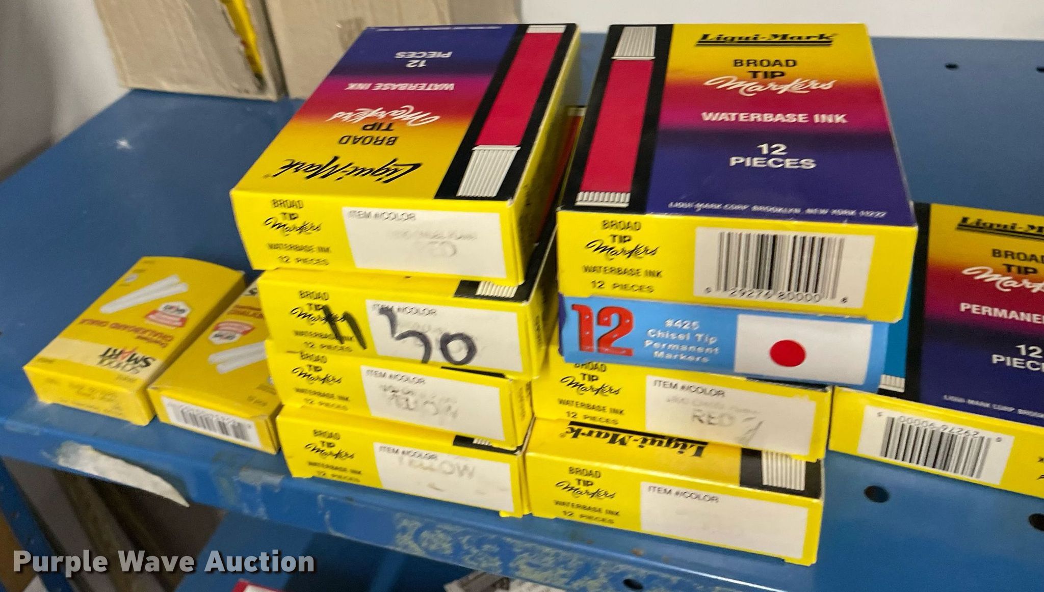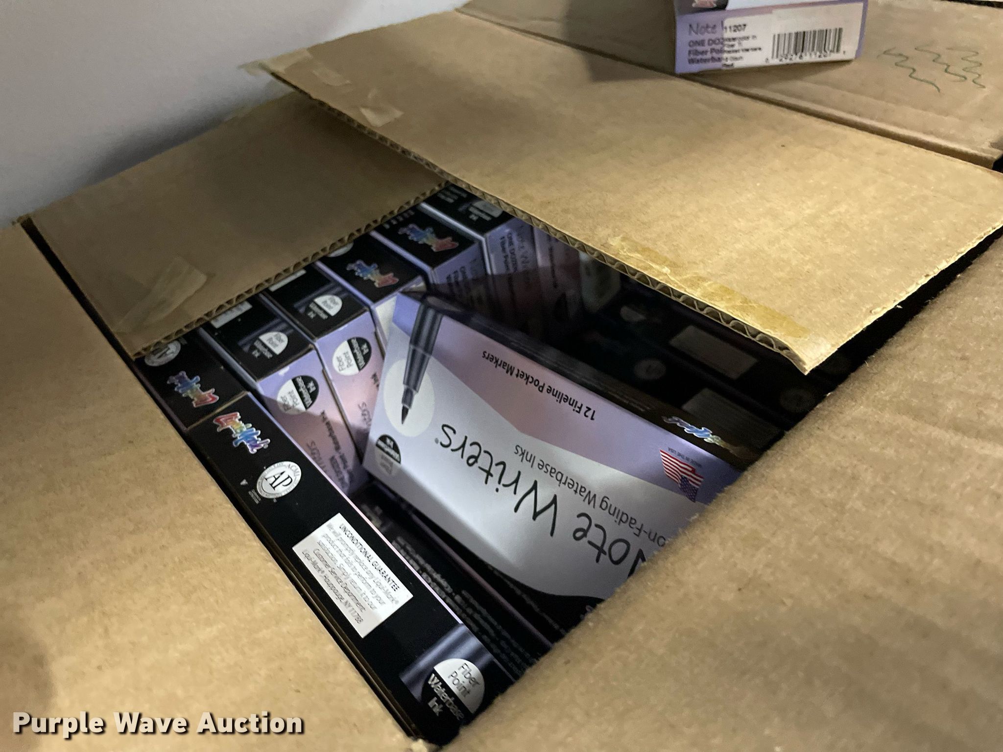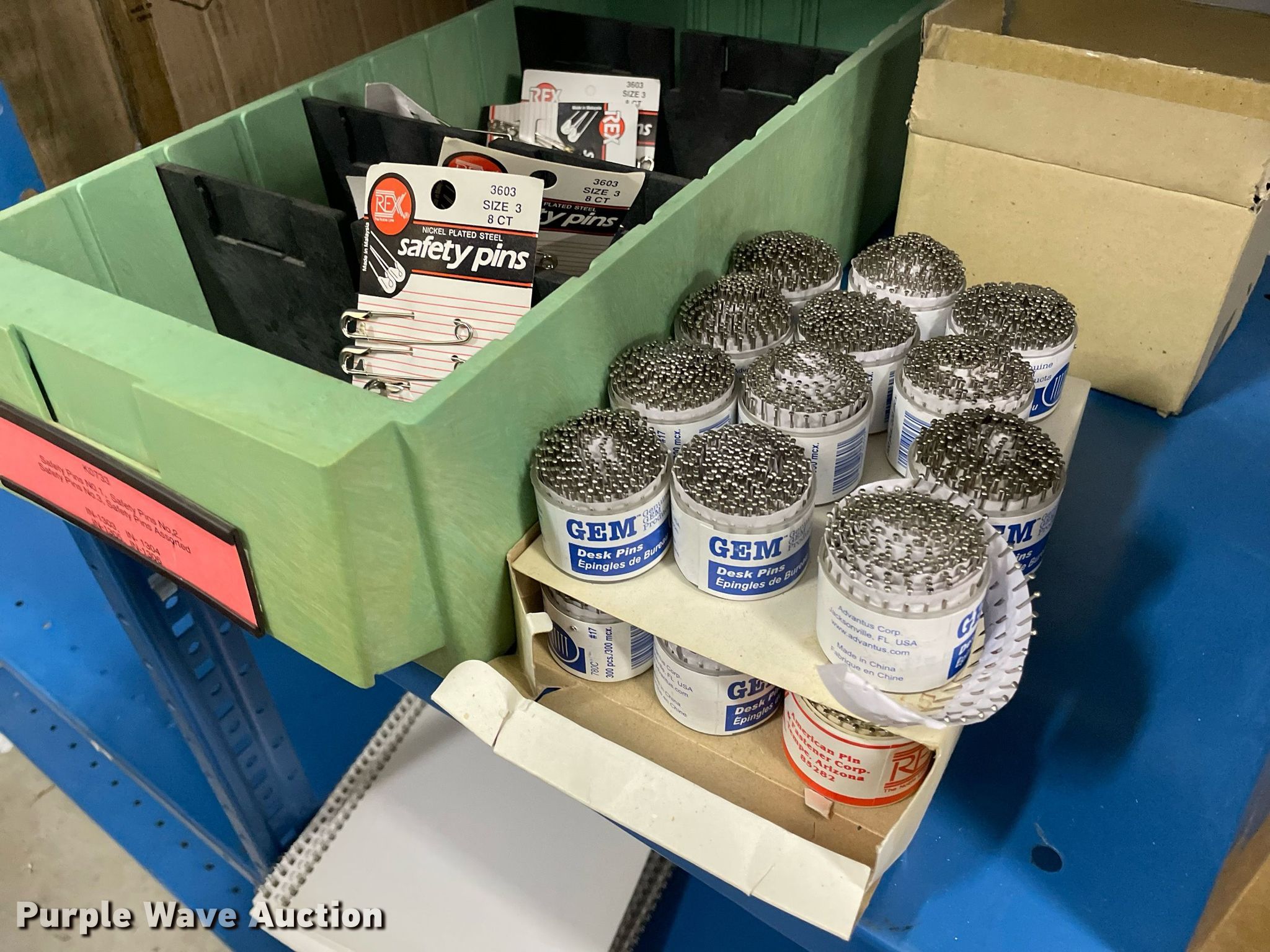 Purple Wave is selling a used Office Supplies and Equip. in Kansas. This item is a Office supplies with the following: Gloves, Cotton balls, Infectious waste bags, Plastic cutlery, Hot/Cold packs, Foam cups, Bleach, Soap, Paint, Floor brushes, Binders and more