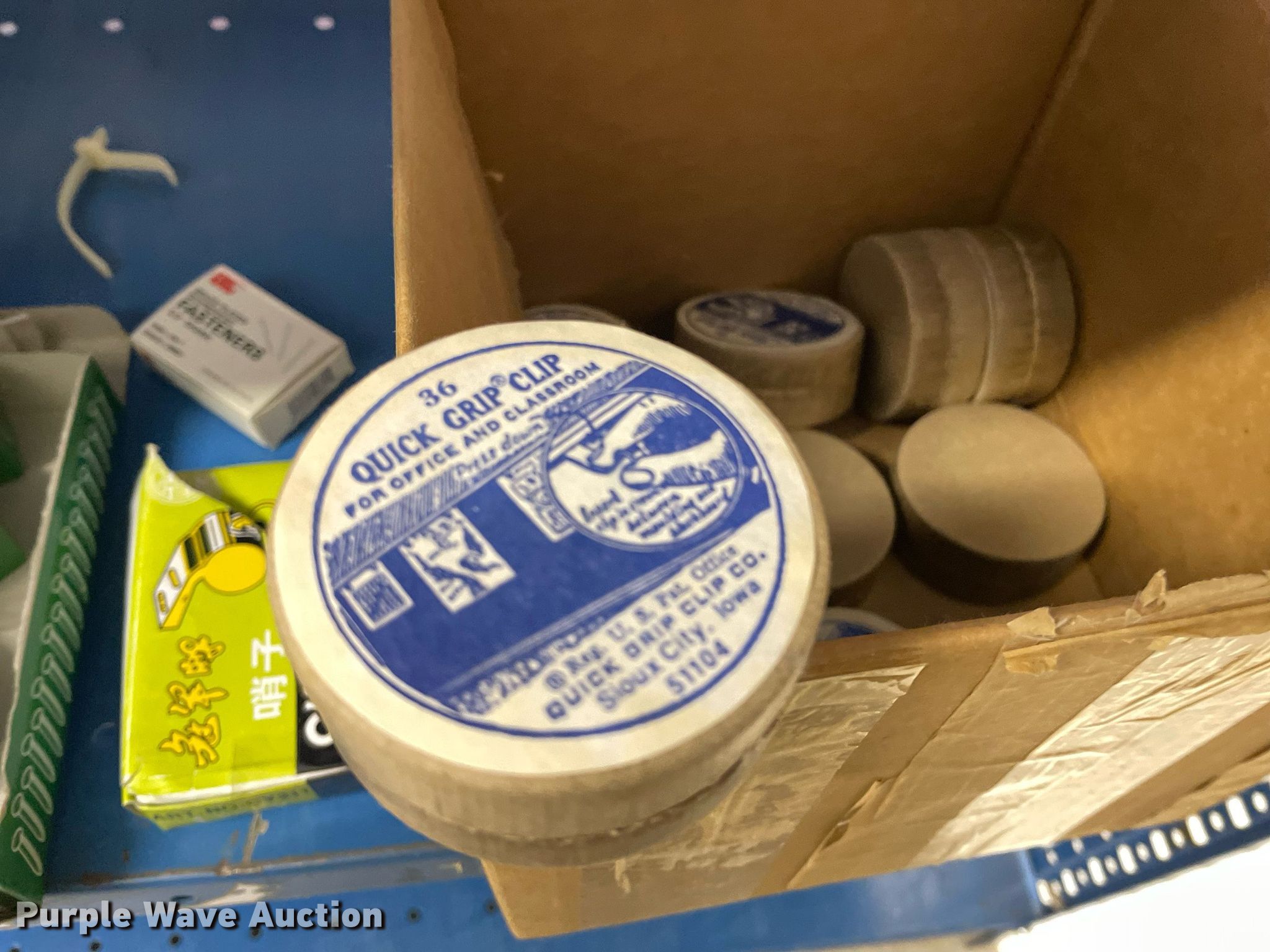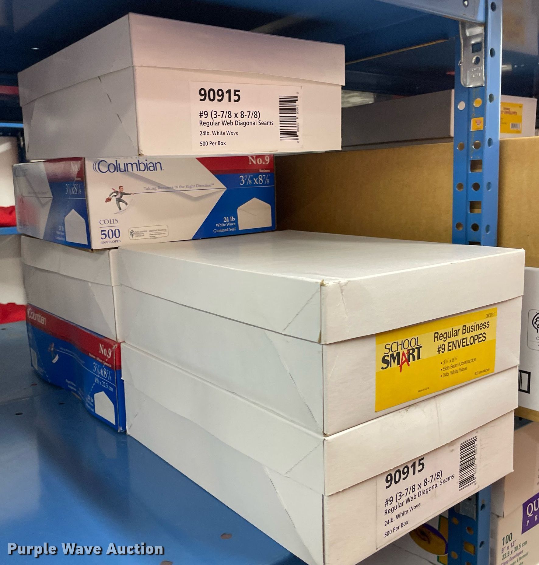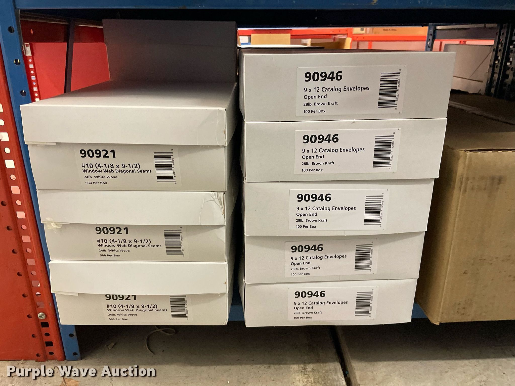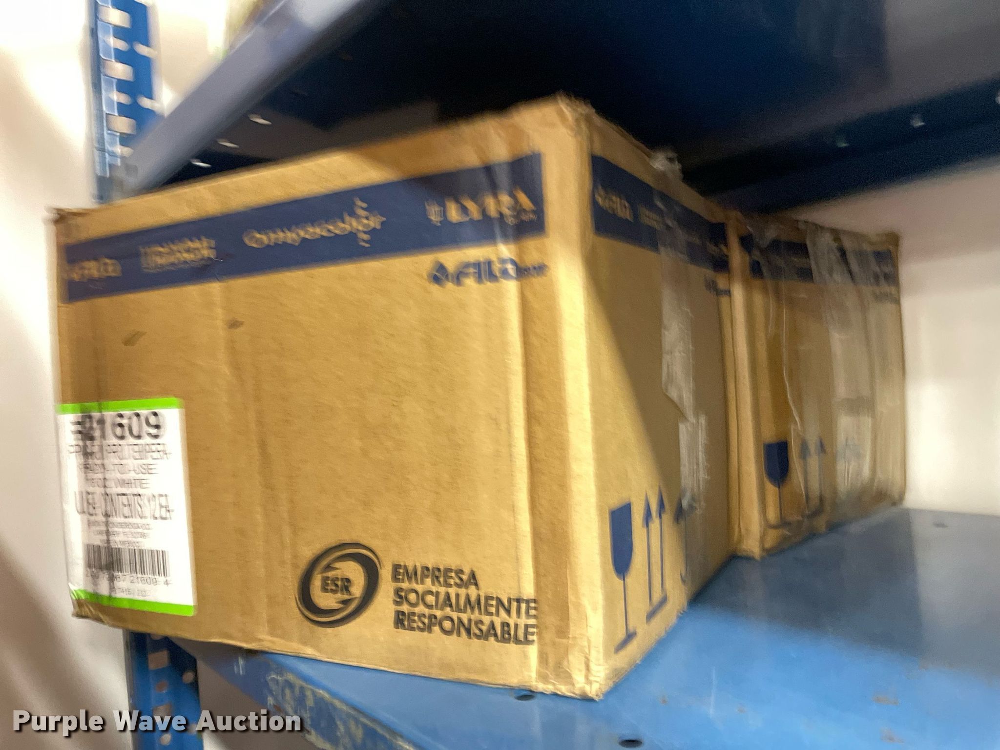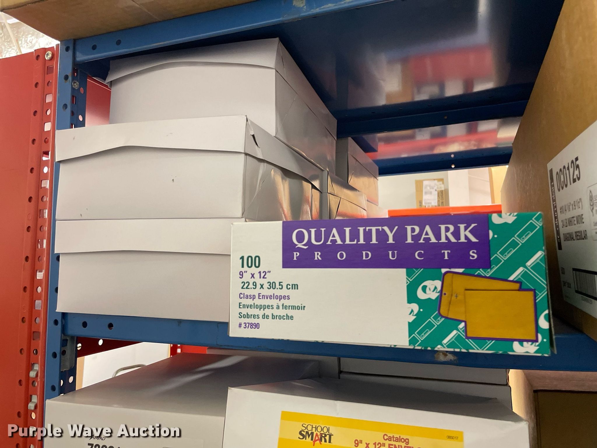 Purple Wave is selling a used Office Supplies and Equip. in Kansas. This item is a Office supplies with the following: Gloves, Cotton balls, Infectious waste bags, Plastic cutlery, Hot/Cold packs, Foam cups, Bleach, Soap, Paint, Floor brushes, Binders and more