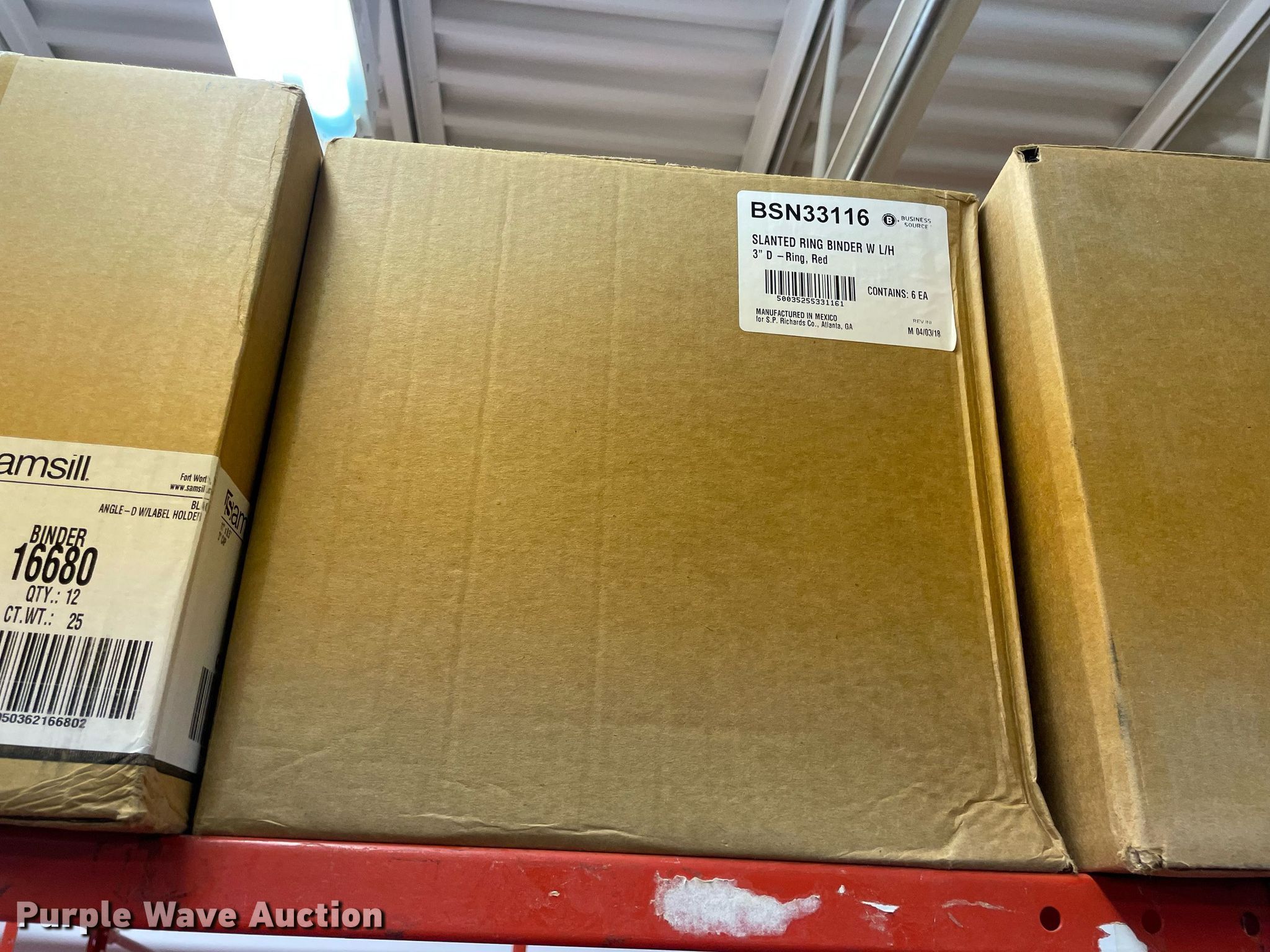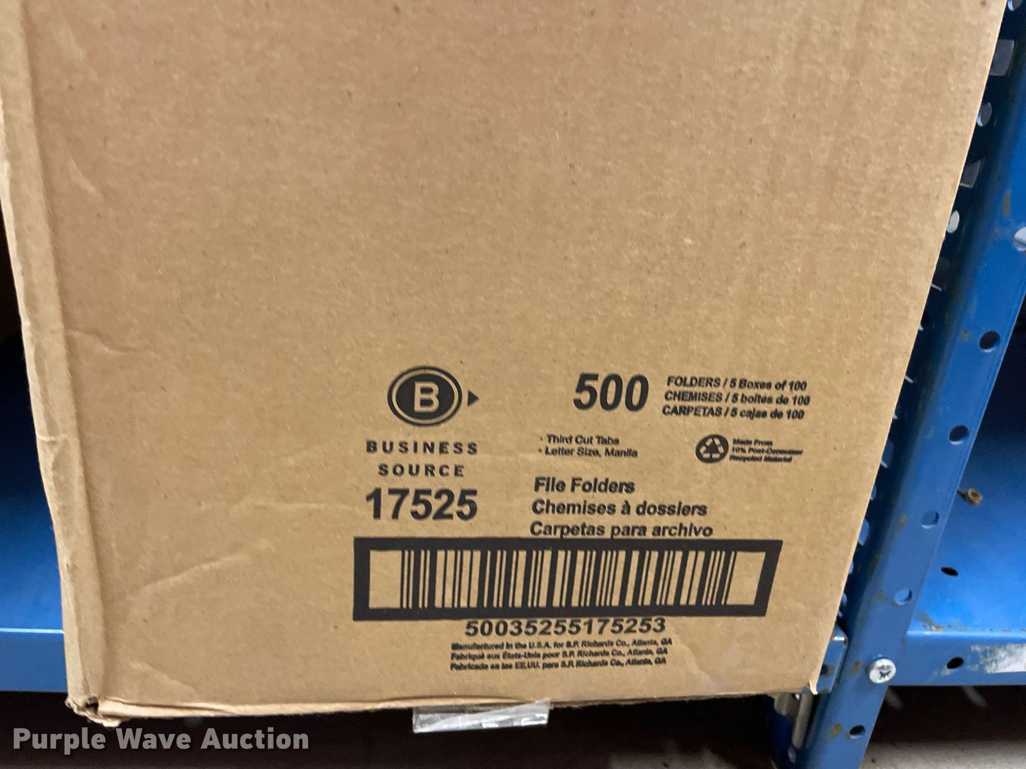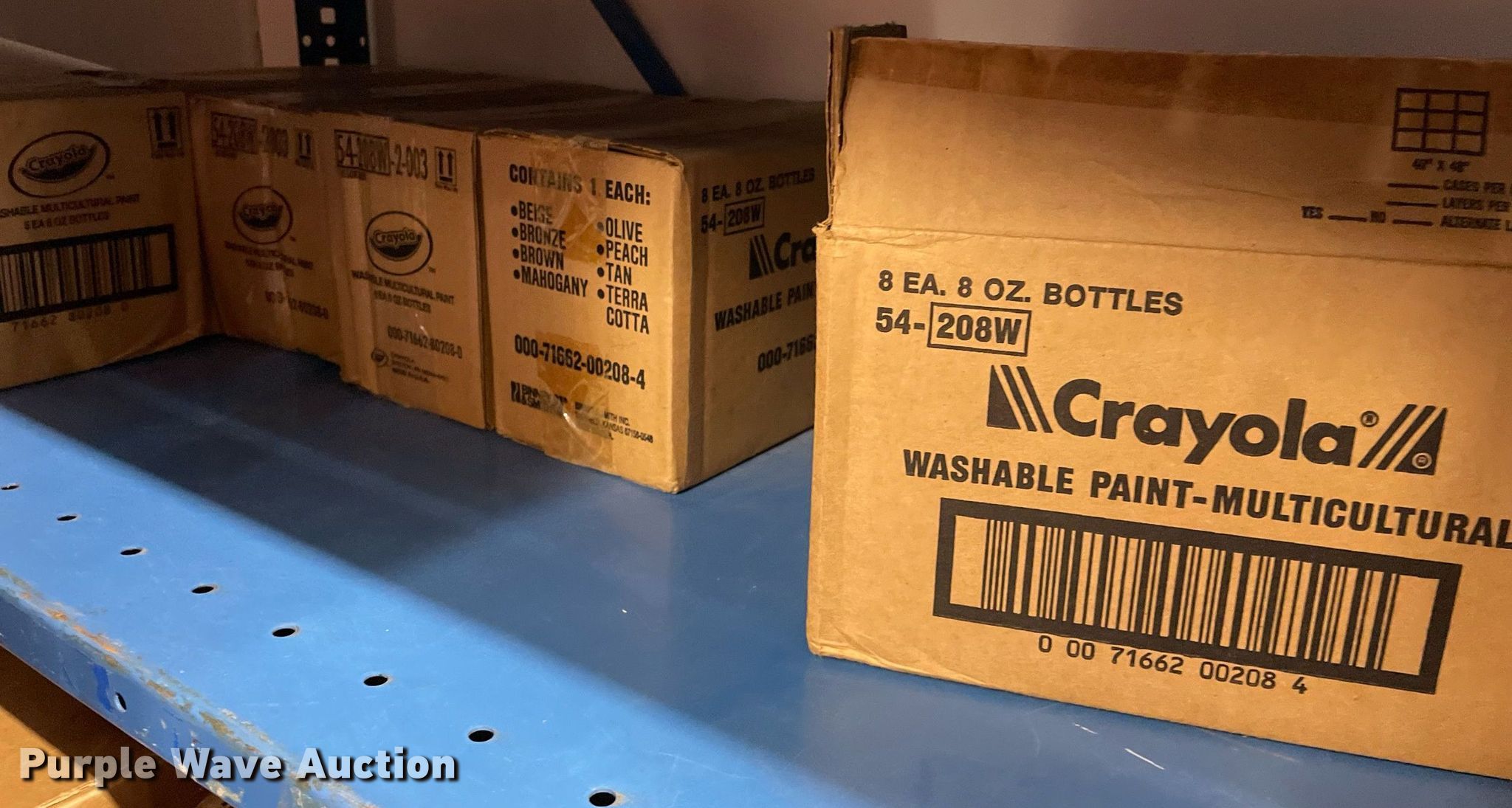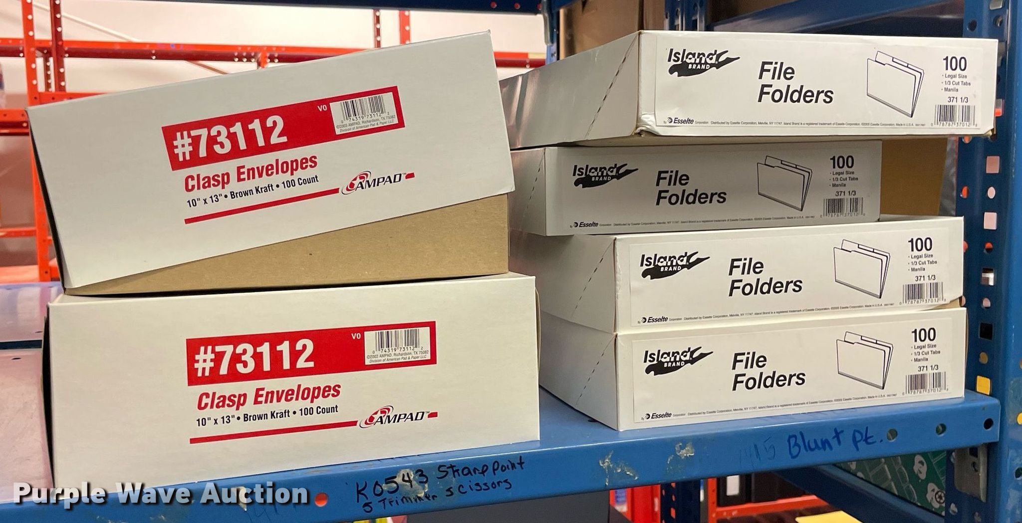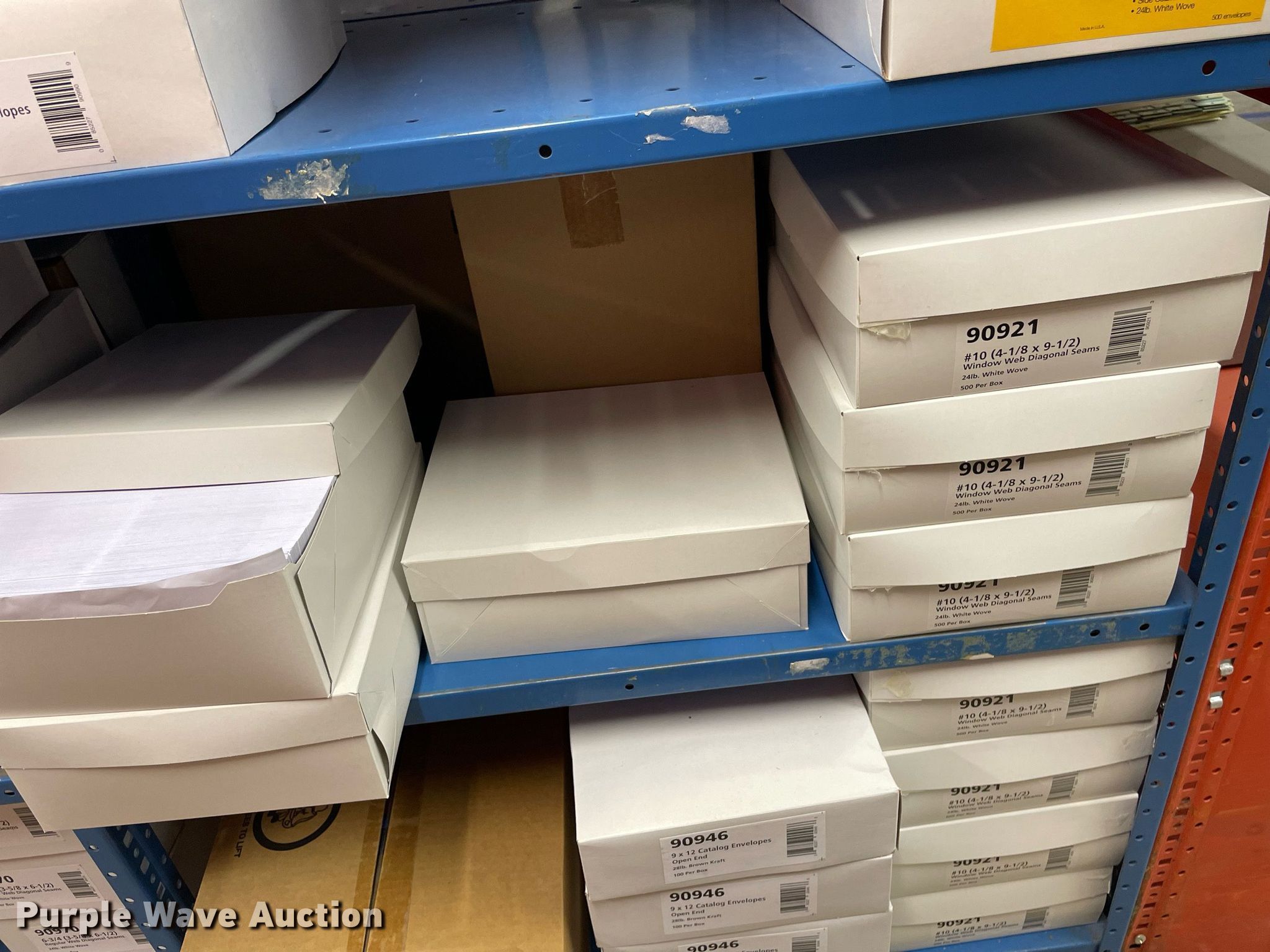 Purple Wave is selling a used Office Supplies and Equip. in Kansas. This item is a Office supplies with the following: Gloves, Cotton balls, Infectious waste bags, Plastic cutlery, Hot/Cold packs, Foam cups, Bleach, Soap, Paint, Floor brushes, Binders and more