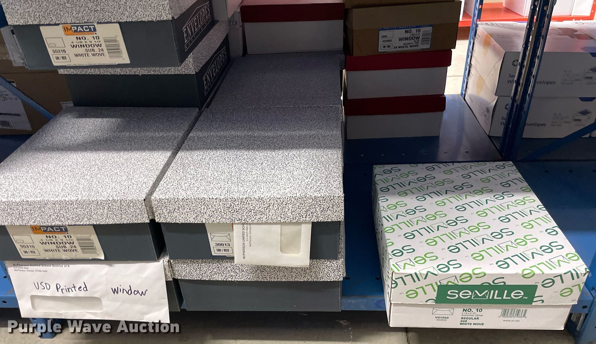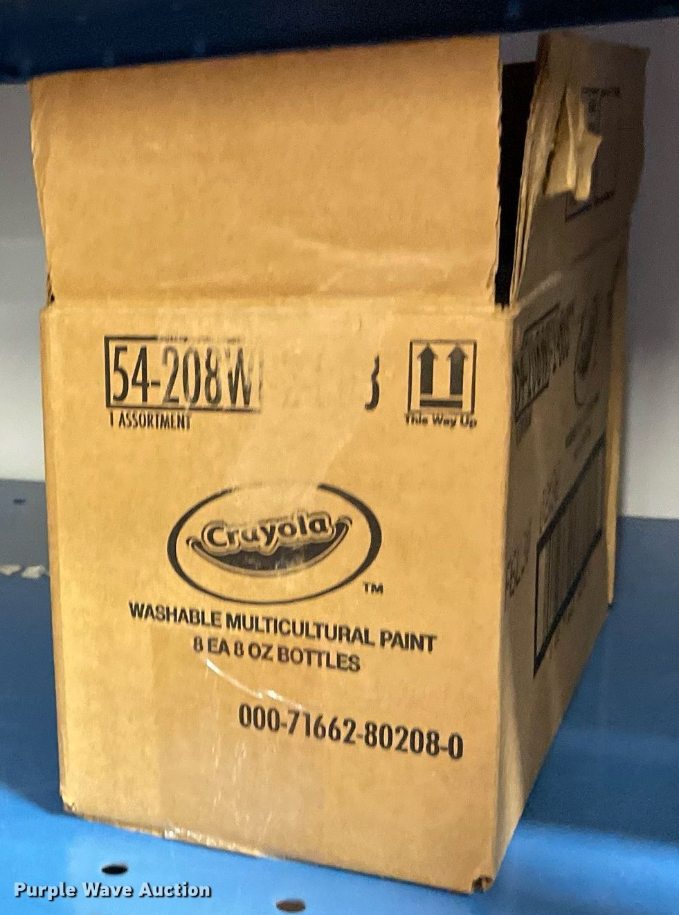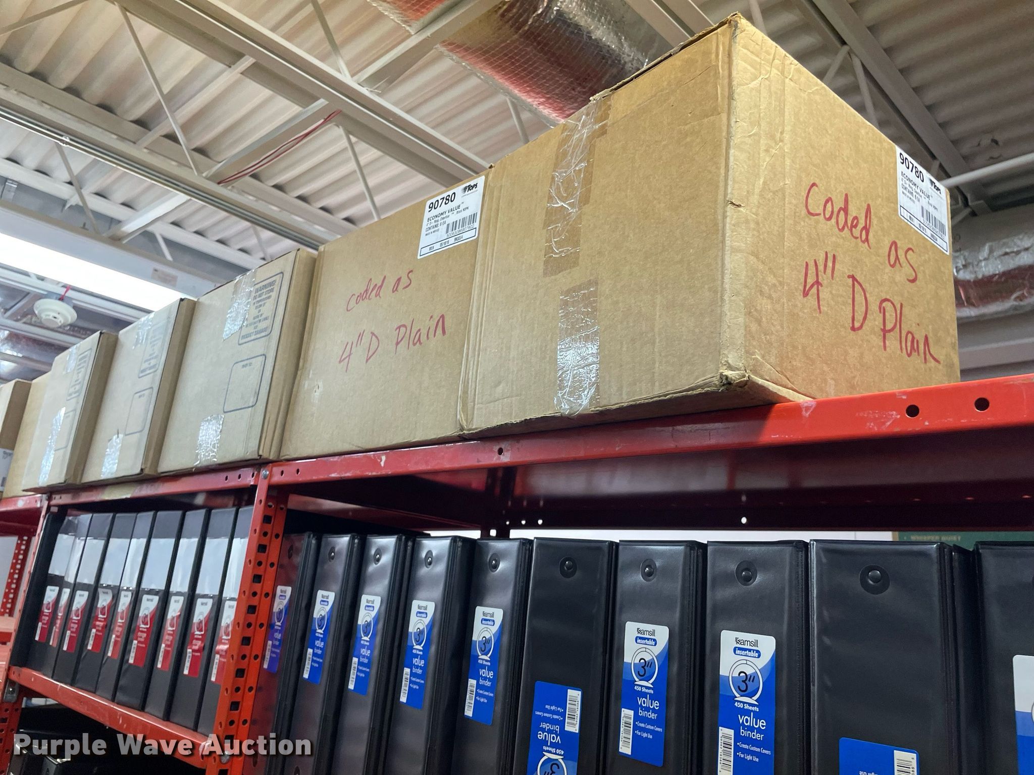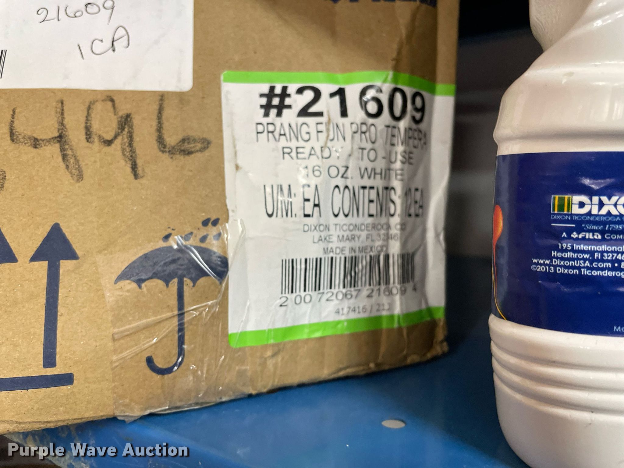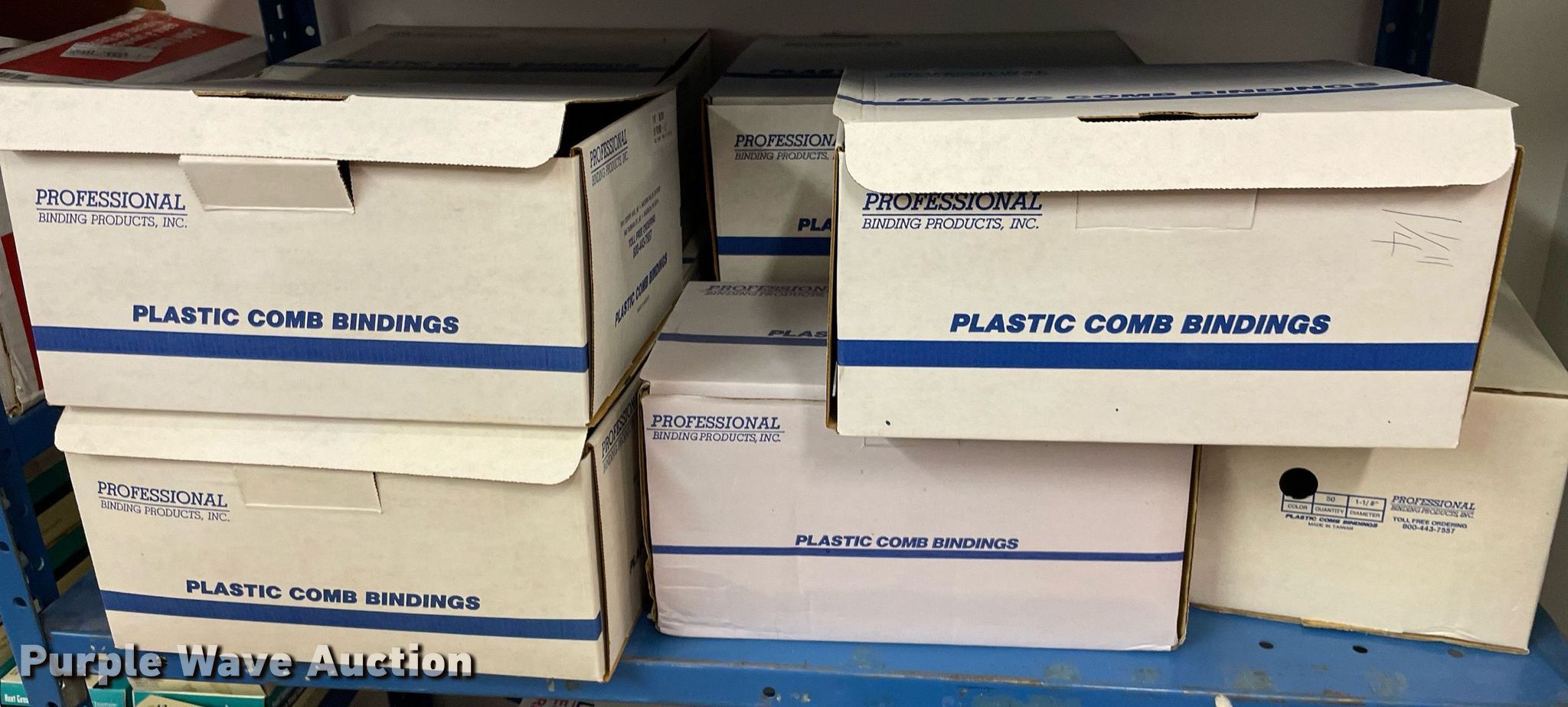 Purple Wave is selling a used Office Supplies and Equip. in Kansas. This item is a Office supplies with the following: Gloves, Cotton balls, Infectious waste bags, Plastic cutlery, Hot/Cold packs, Foam cups, Bleach, Soap, Paint, Floor brushes, Binders and more