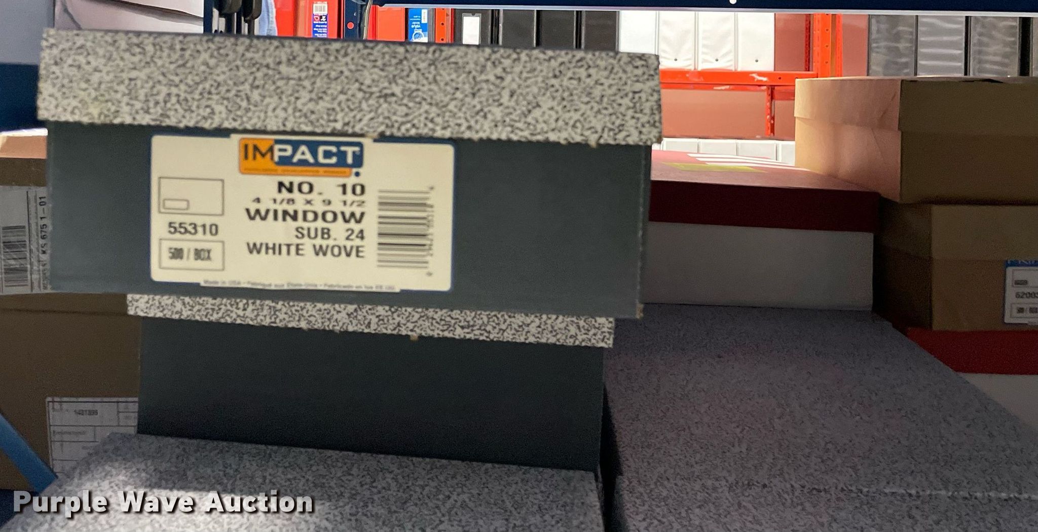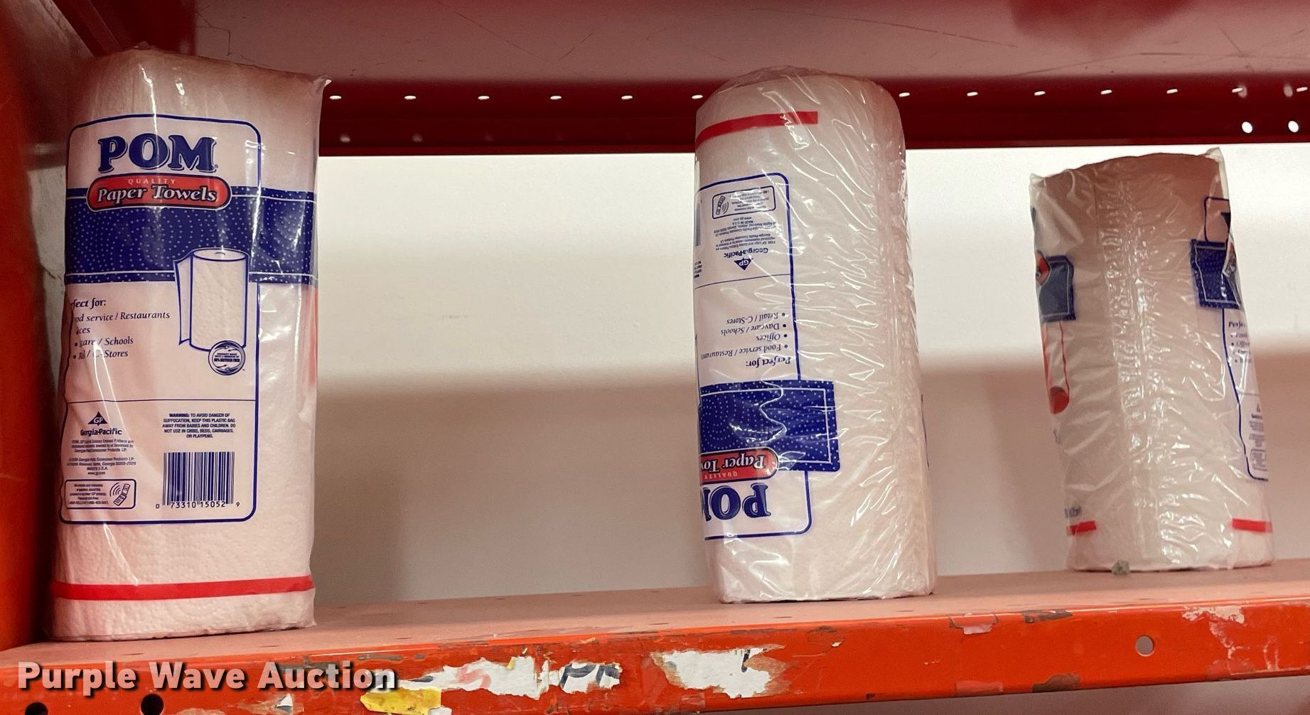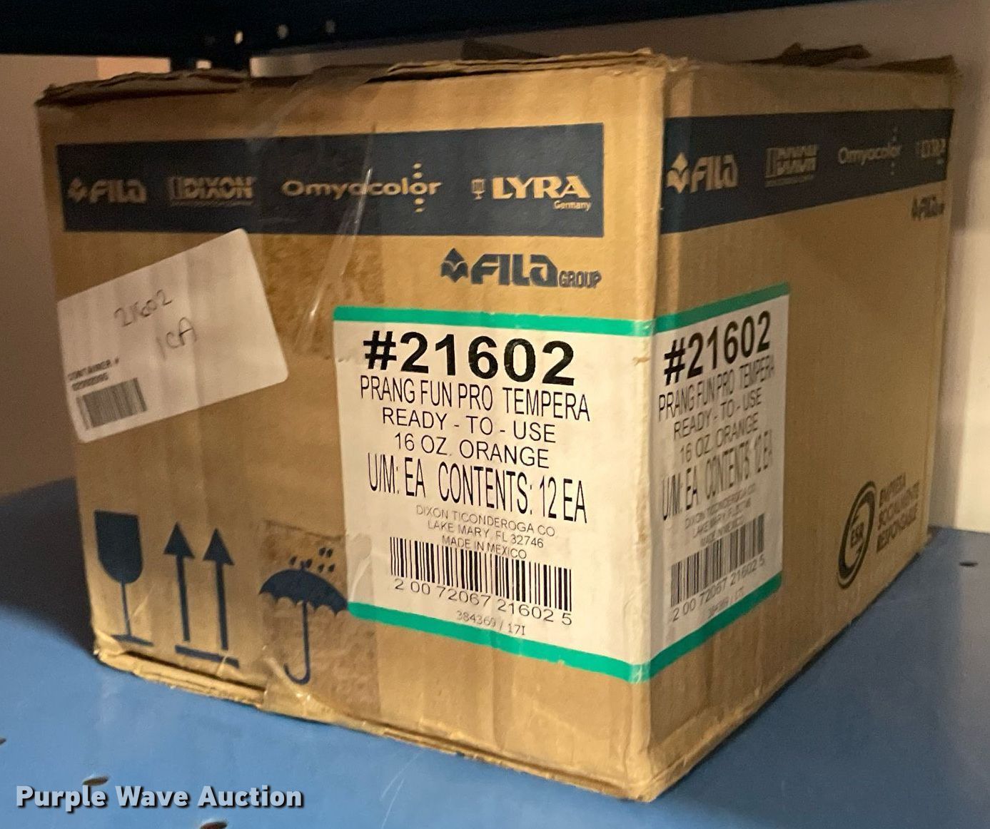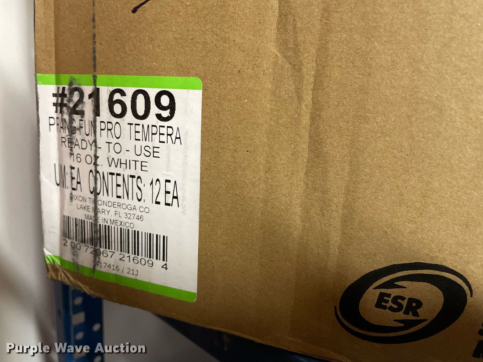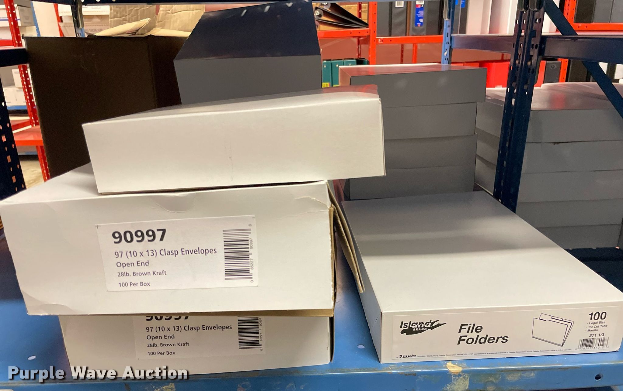Purple Wave is selling a used Office Supplies and Equip. in Kansas. This item is a Office supplies with the following: Gloves, Cotton balls, Infectious waste bags, Plastic cutlery, Hot/Cold packs, Foam cups, Bleach, Soap, Paint, Floor brushes, Binders and more