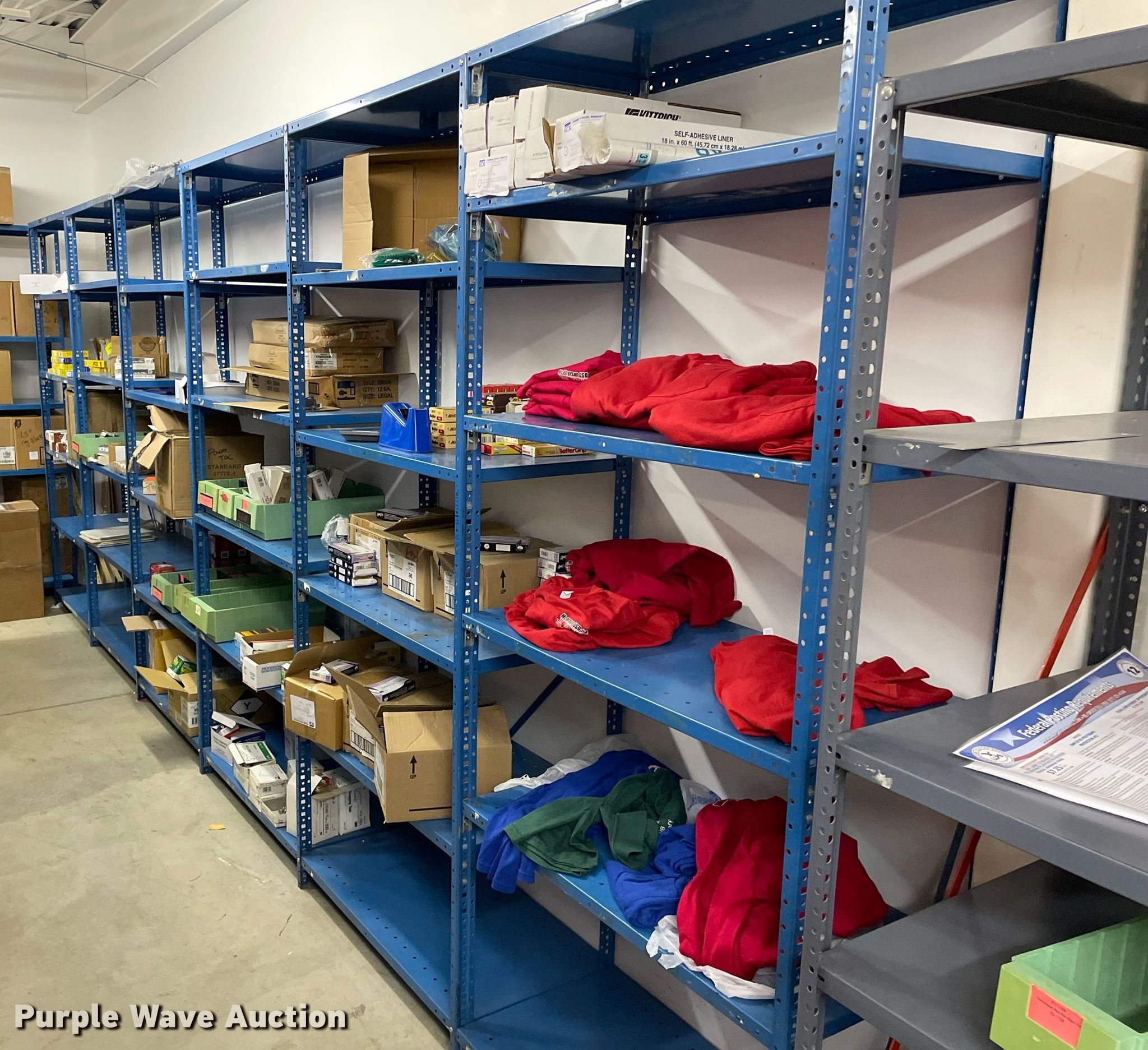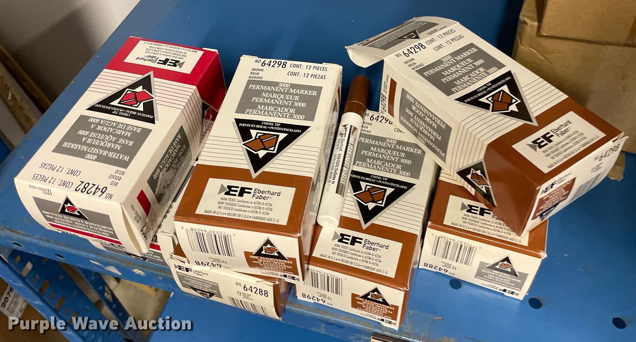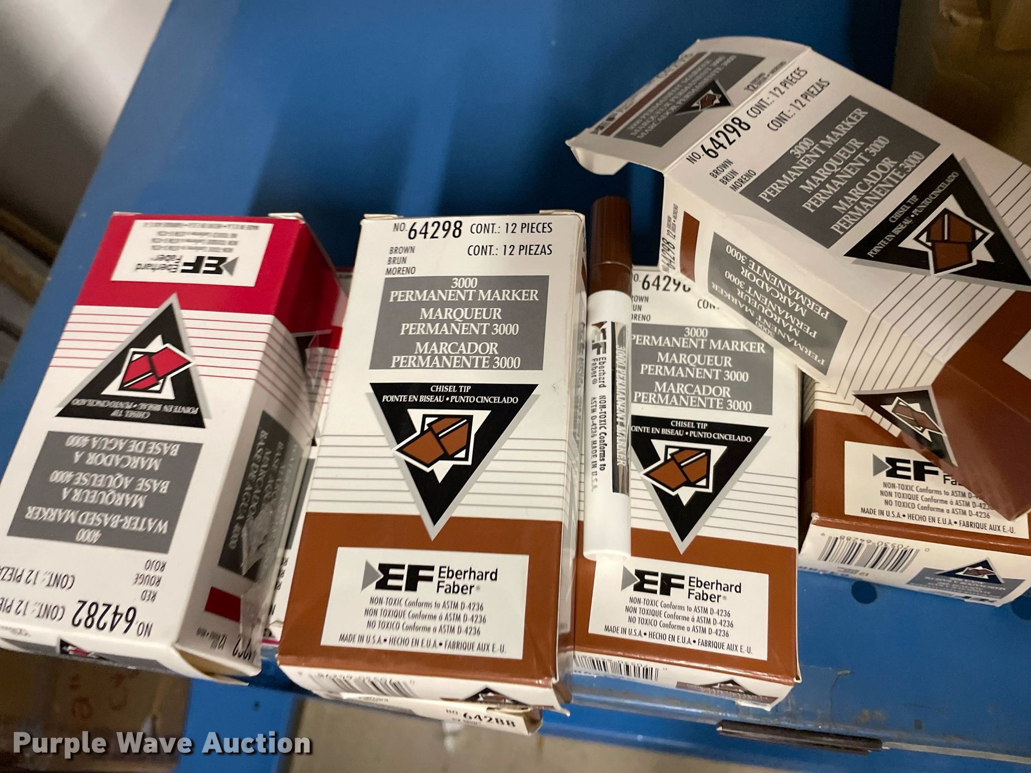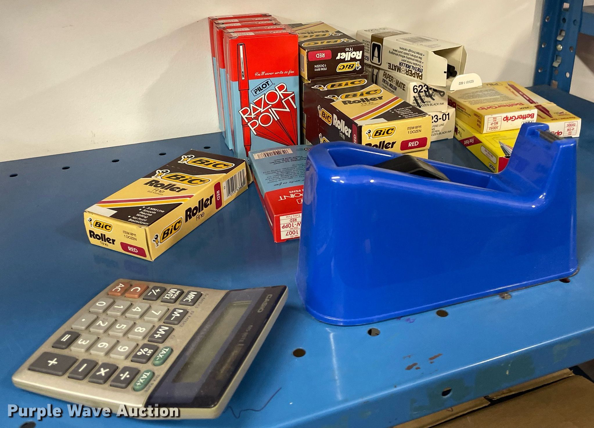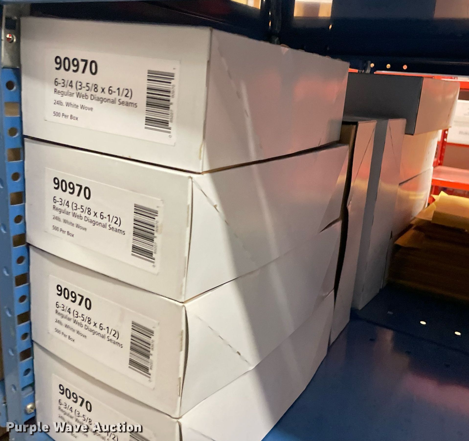 Purple Wave is selling a used Office Supplies and Equip. in Kansas. This item is a Office supplies with the following: Gloves, Cotton balls, Infectious waste bags, Plastic cutlery, Hot/Cold packs, Foam cups, Bleach, Soap, Paint, Floor brushes, Binders and more