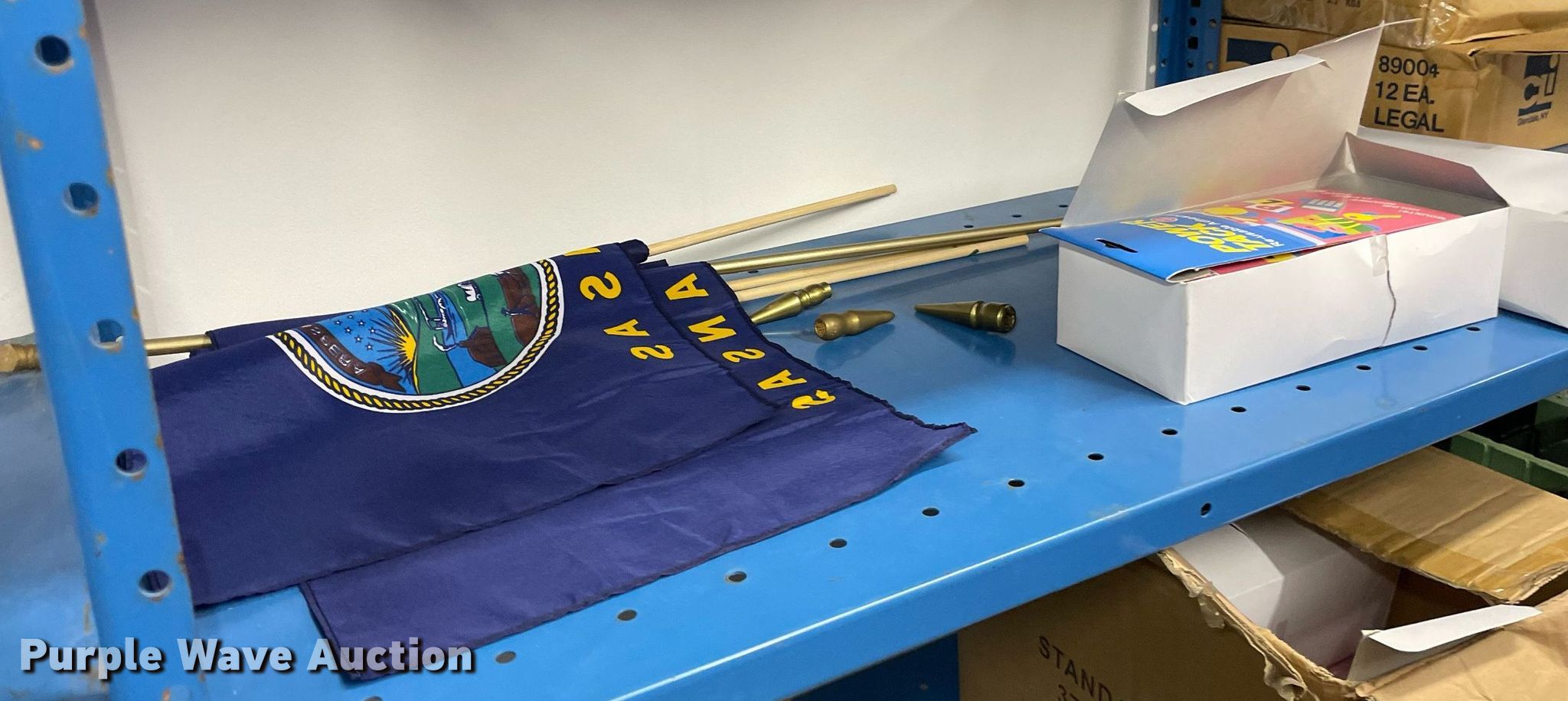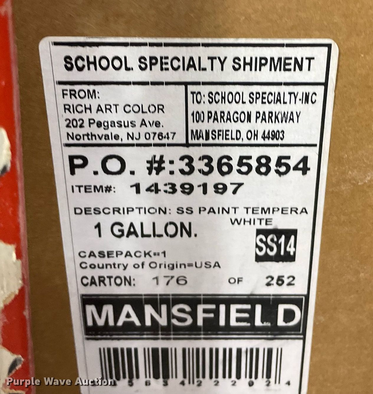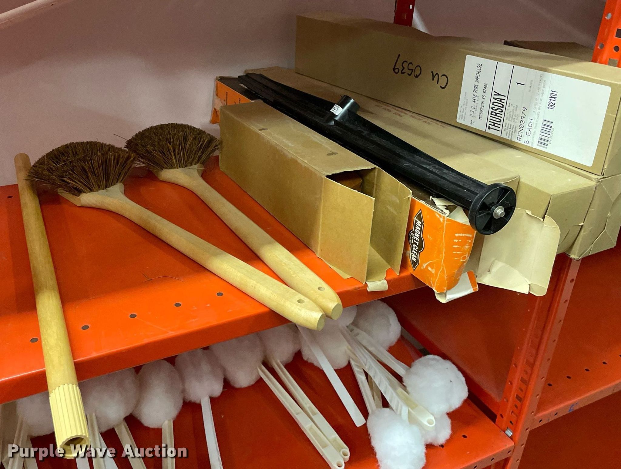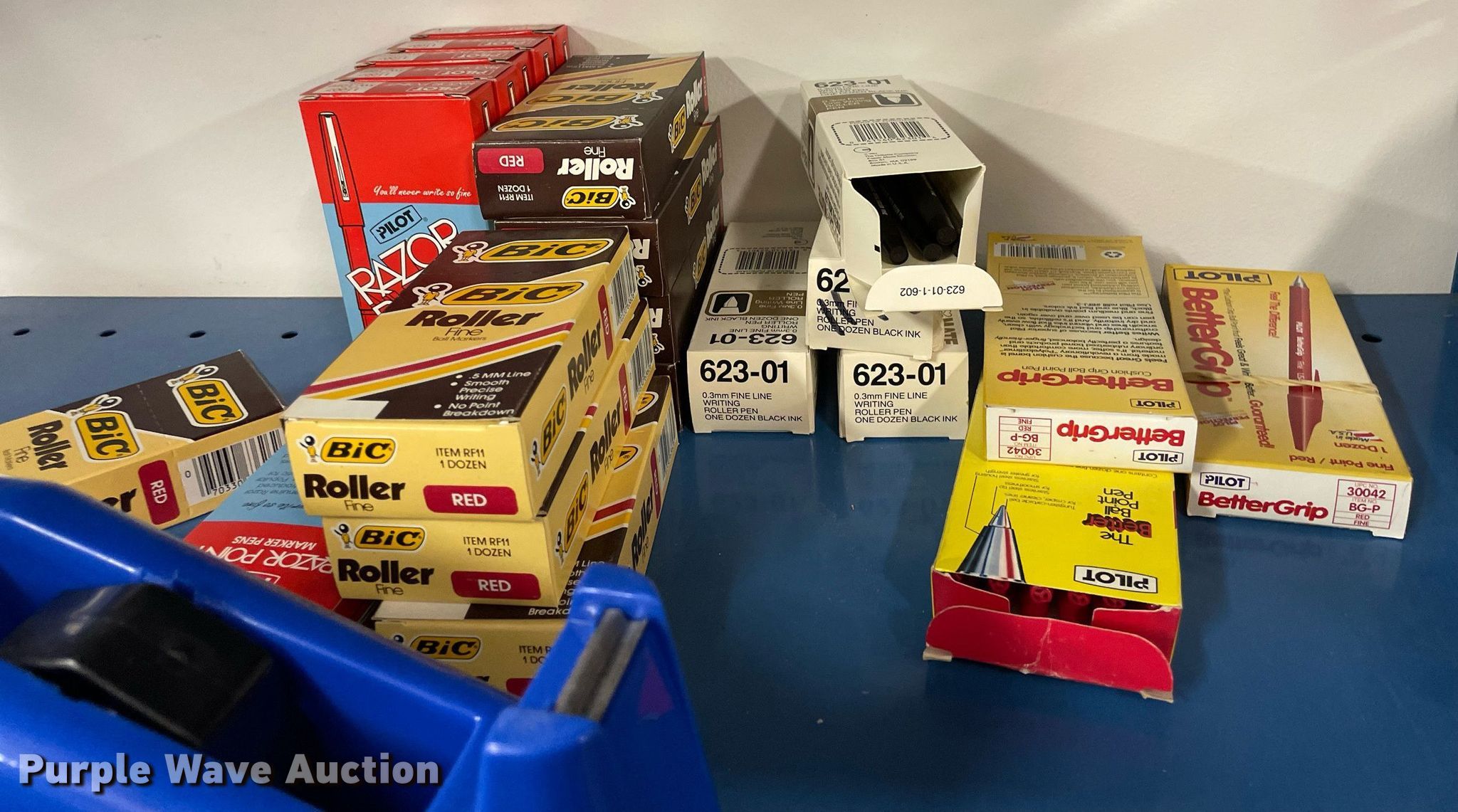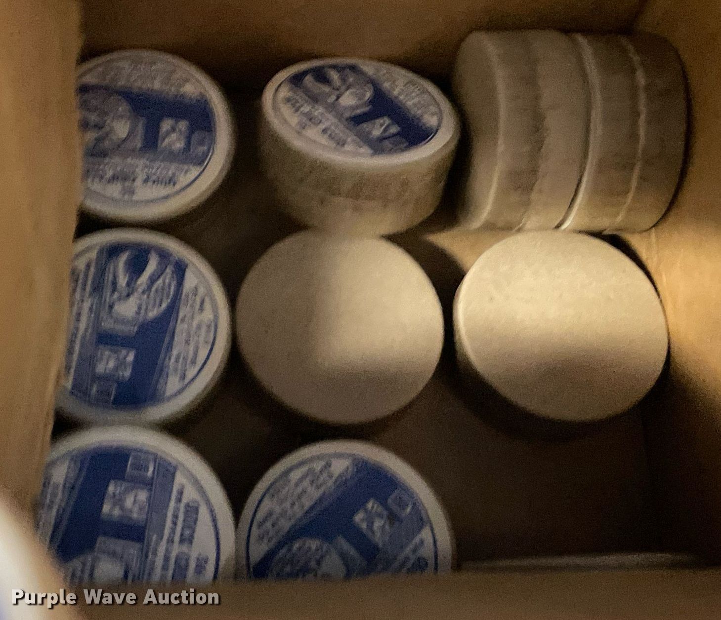 Purple Wave is selling a used Office Supplies and Equip. in Kansas. This item is a Office supplies with the following: Gloves, Cotton balls, Infectious waste bags, Plastic cutlery, Hot/Cold packs, Foam cups, Bleach, Soap, Paint, Floor brushes, Binders and more
