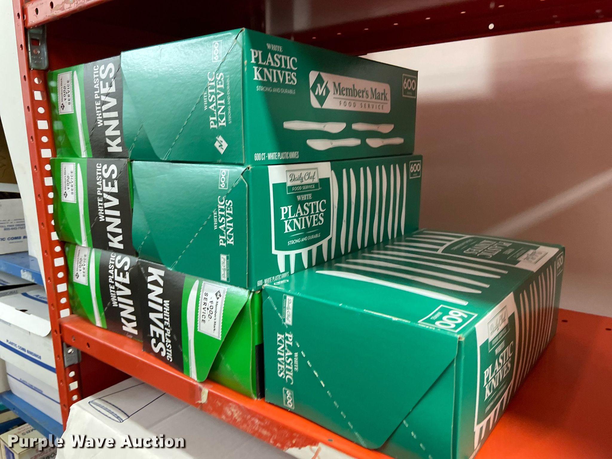 Office supplies. Gloves, Cotton balls, Infectious waste bags, Plastic cutlery, Hot/Cold packs, Foam cups, Bleach, Soap, Paint, Floor brushes, Binders and more. Notes Shelves not included. USD 418 McPherson. McPherson, KS 67460