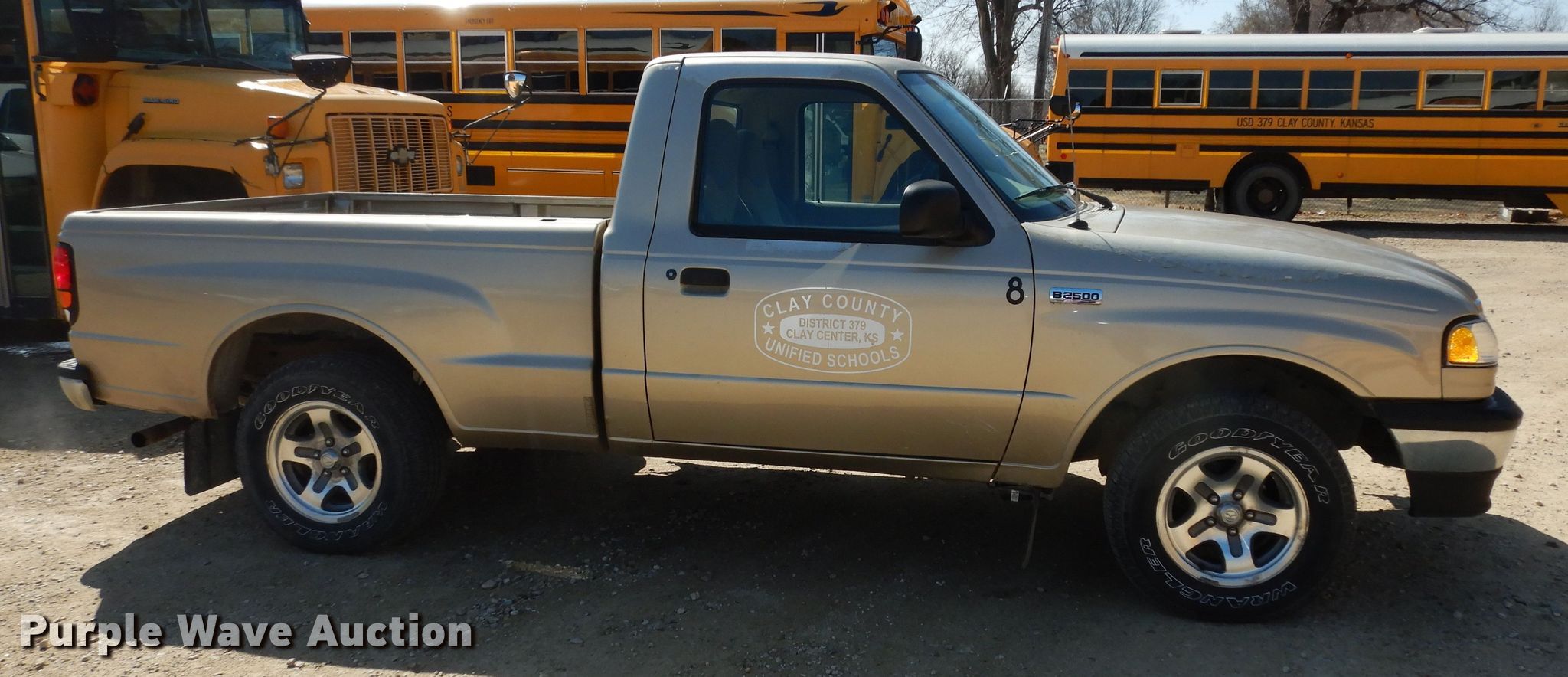 1999 Mazda B2500 SE pickup truck. Miles: 142,728 on odometer, VIN: 4F4YR12C2XTM21031, Unit #: 8. Engine Displacement: 2.5 L4 SOHC, Cylinders: 4, Fuel type: Gas. Transmission Manual, Speed: 5. Interior AC, Heat. Tires Size: 225/70R15. Notes Decals will be removed prior to auction. Kansas title. Title distribution may be delayed up to 14 days from verification of funds. USD 379 Clay Center. 1002 Clay Street. Clay Center, KS 67432