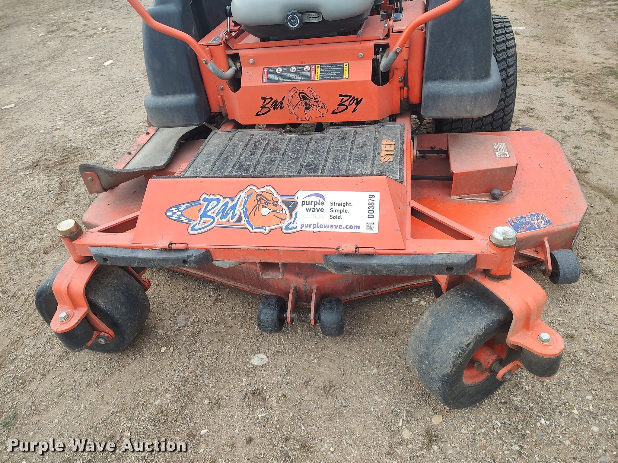 Purple Wave is selling a used Commercial Turf Mower in Kansas. This item is a Bad Boy Pro Series AOS 7200 ZTR lawn mower with the following: Hours: 1,597 on meter, Cutting width: 72", Serial: BBA7227KA040810
