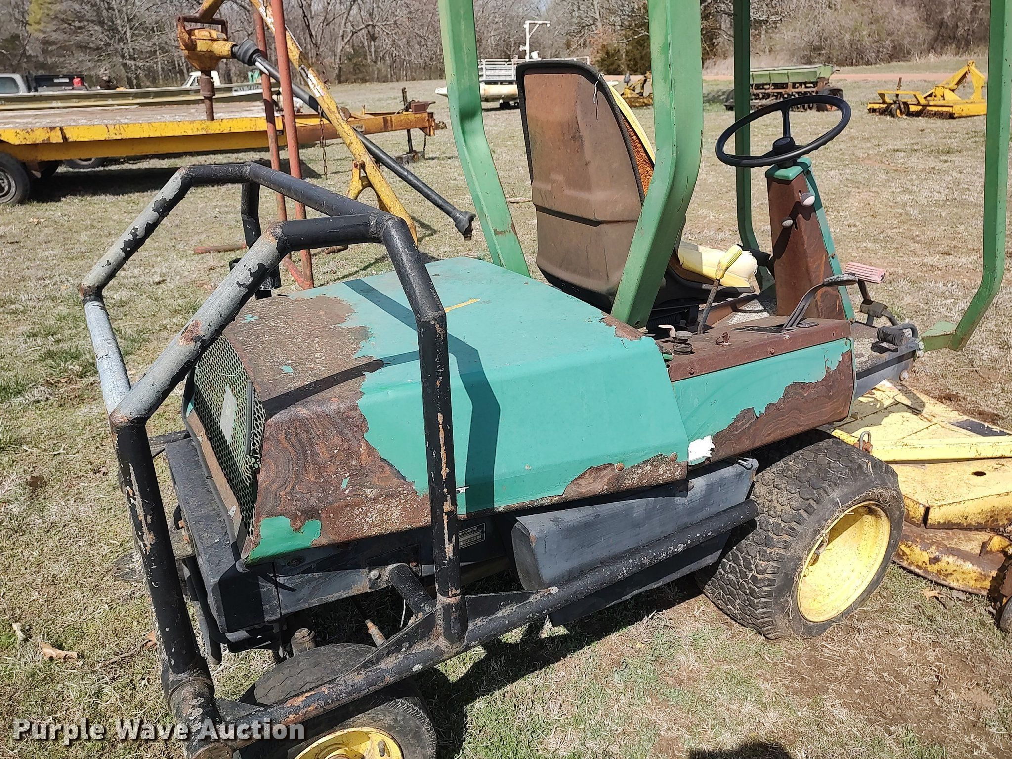 John Deere F930 lawn mower. Hours: 2,301 on meter, Cutting width: 72". Engine Cylinders: 2, Fuel type: Gas. Transmission Hydrostatic. Tires Rear: 16.5x6.5-8. Notes Non-operational unit. 144 Hwy 105. Toronto, KS 66777