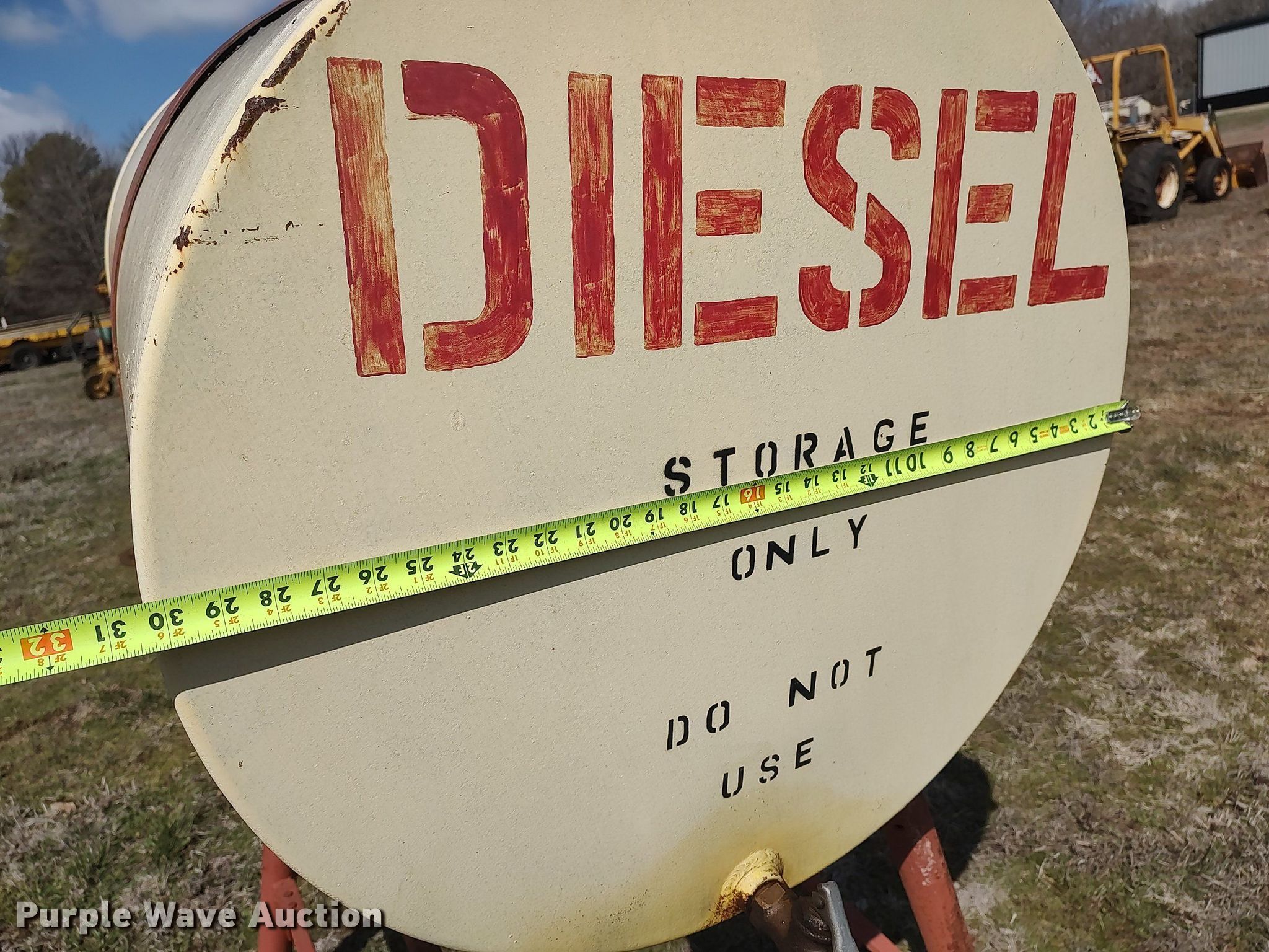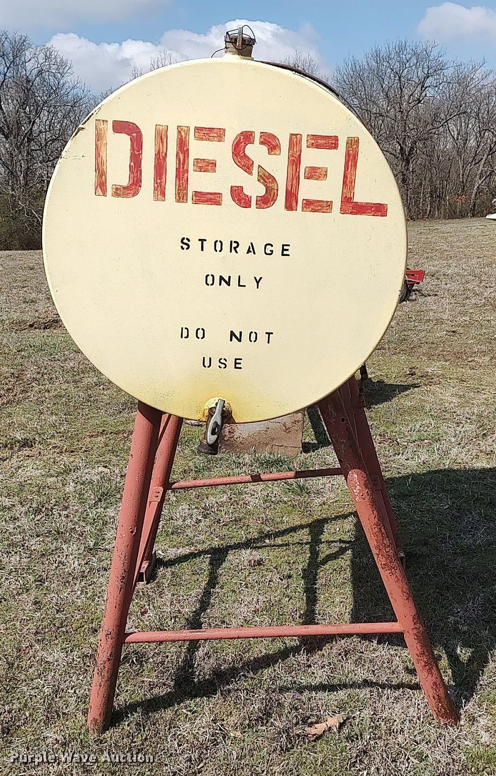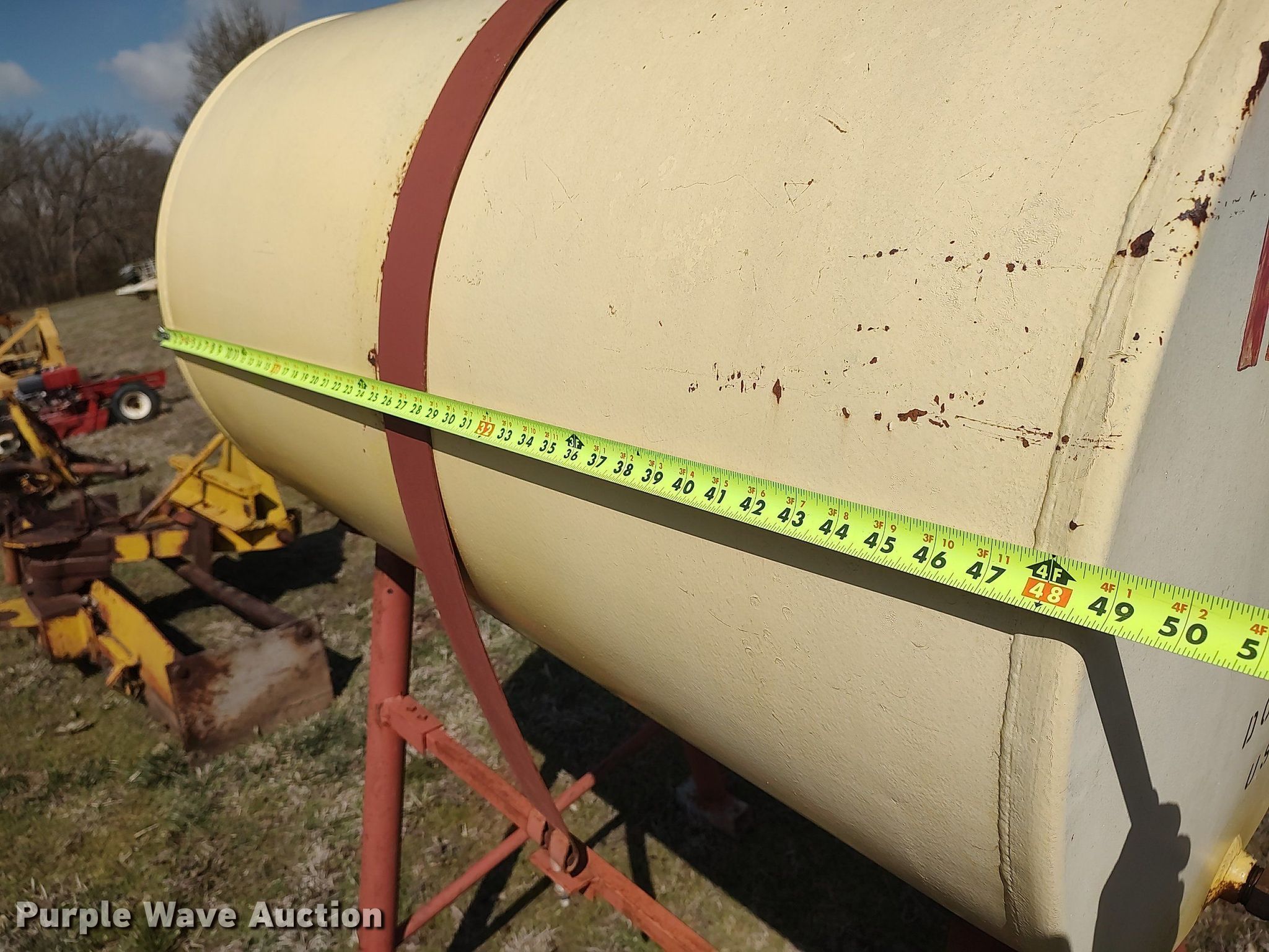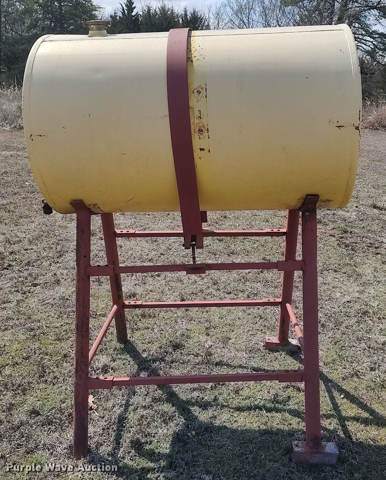 Fuel tank. 48"L x 30" diameter, Approx. 150 gallon capacity, Stand. 144 Hwy 105. Toronto, KS 66777