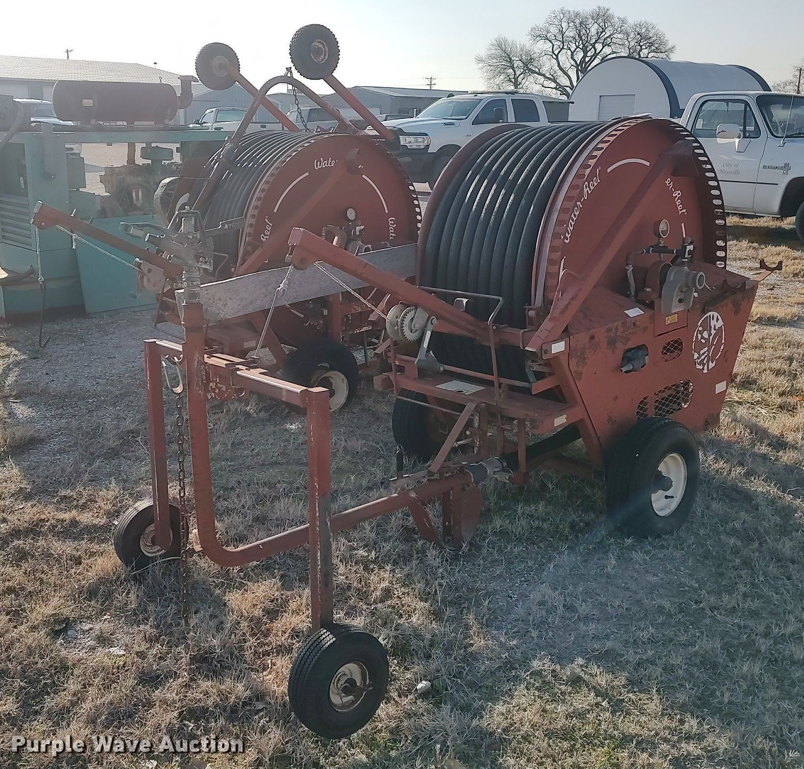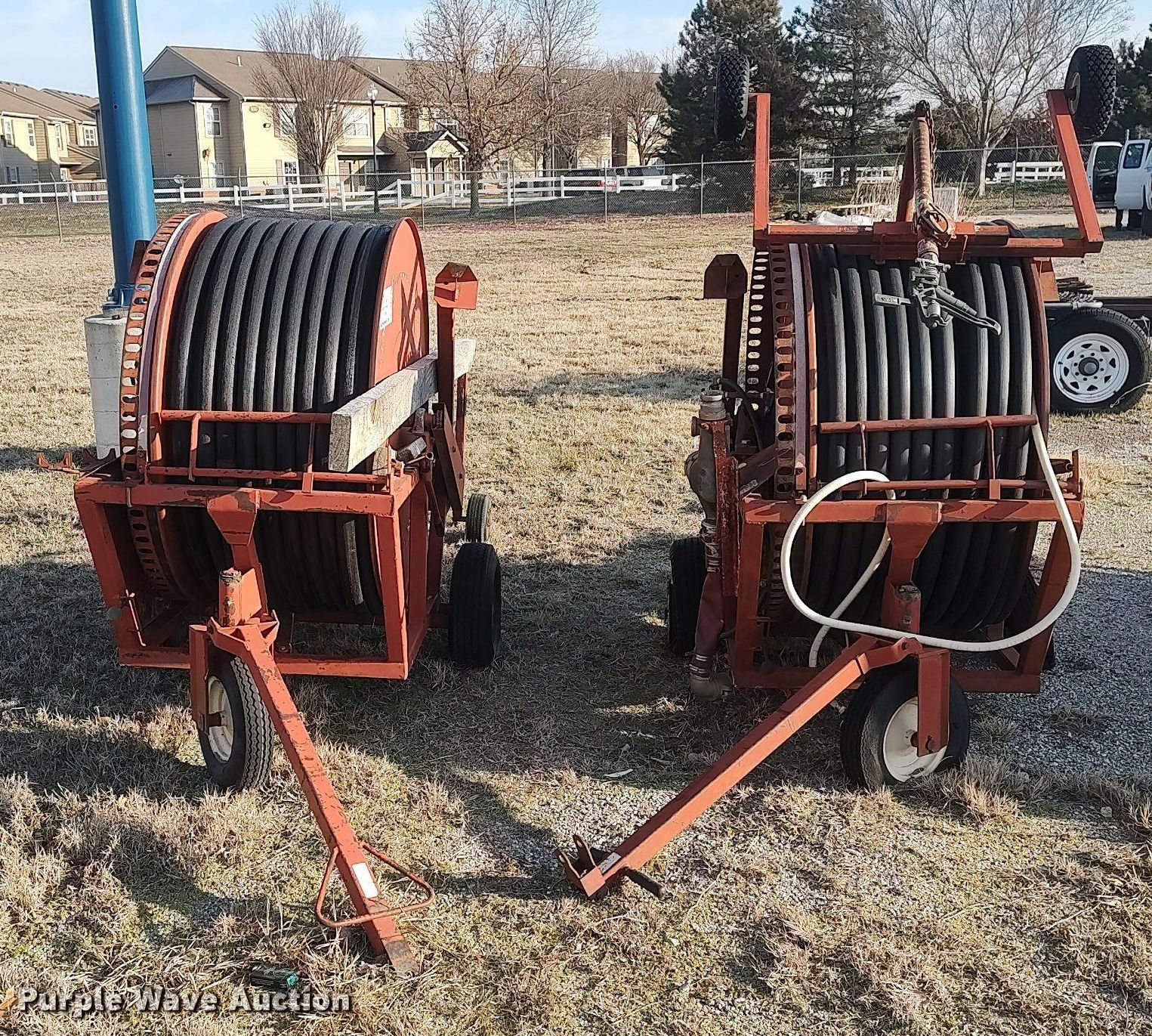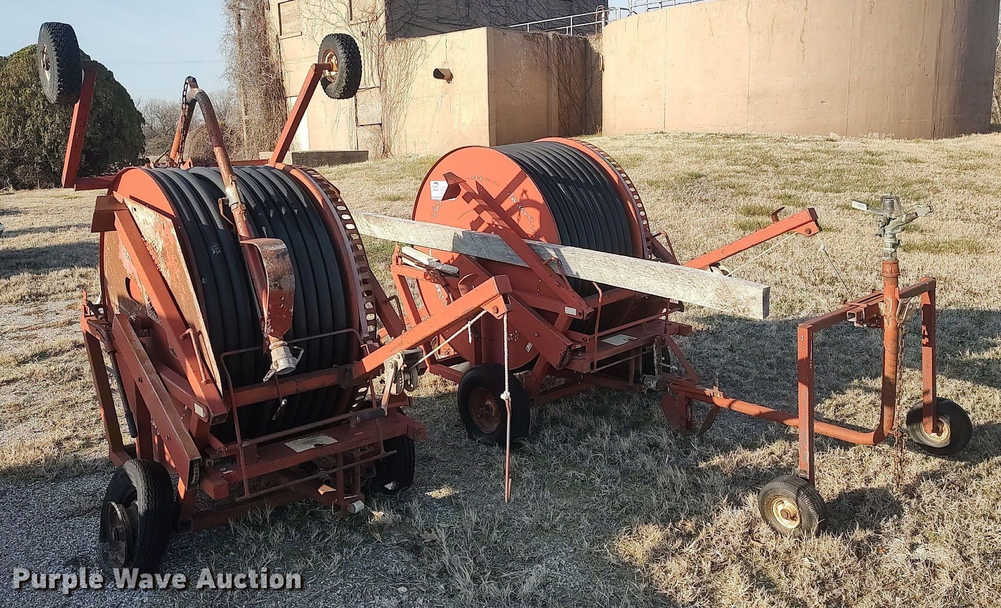 (2) Water-Reel sprinklers. Hose: 1.5" diameter, Hose length: Approx. 100 yds, Tire size: 5.70-8. Notes Flat tires, Unknown operating condition. City of Haysville. 200 West Grand Avenue. Haysville, KS 67060
