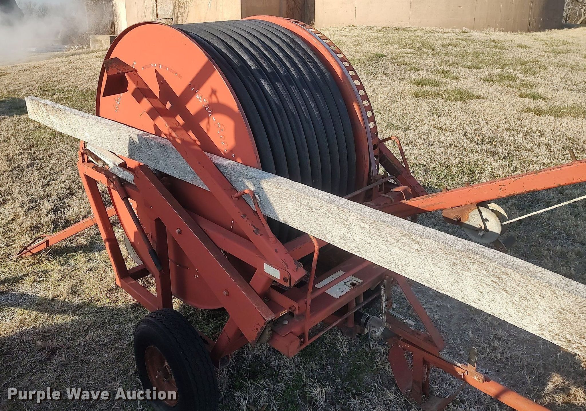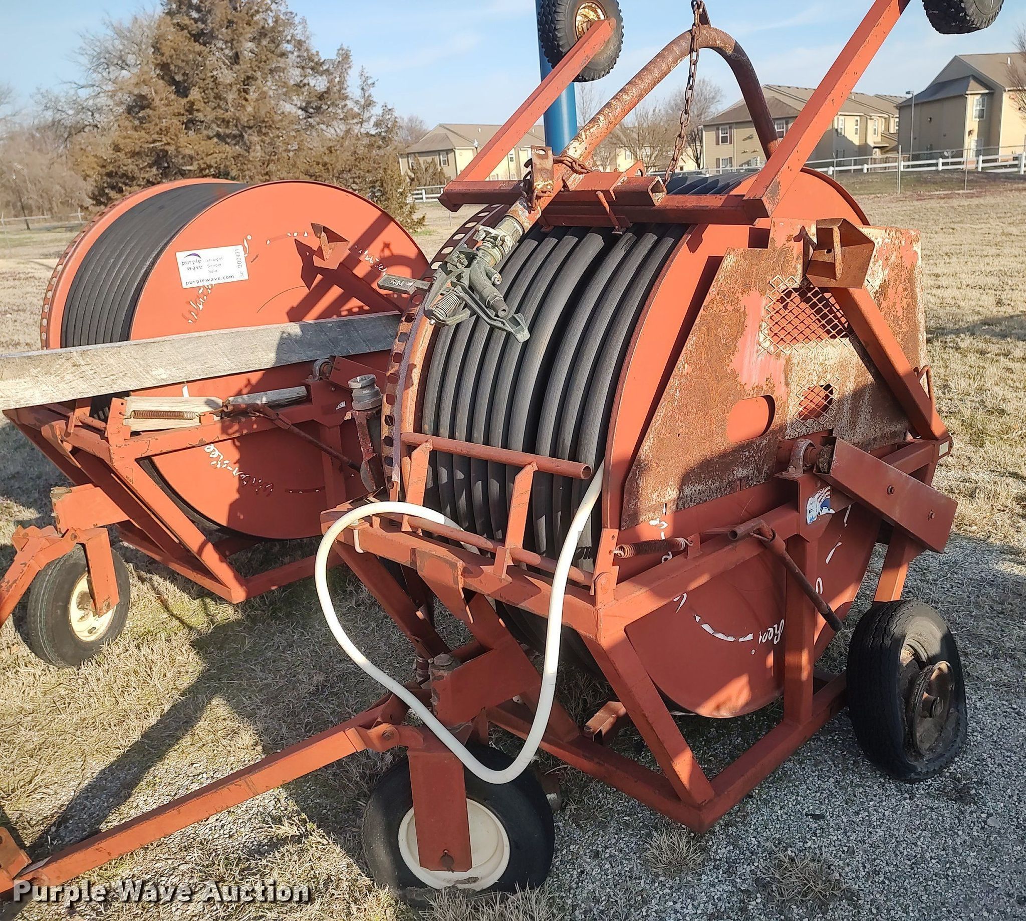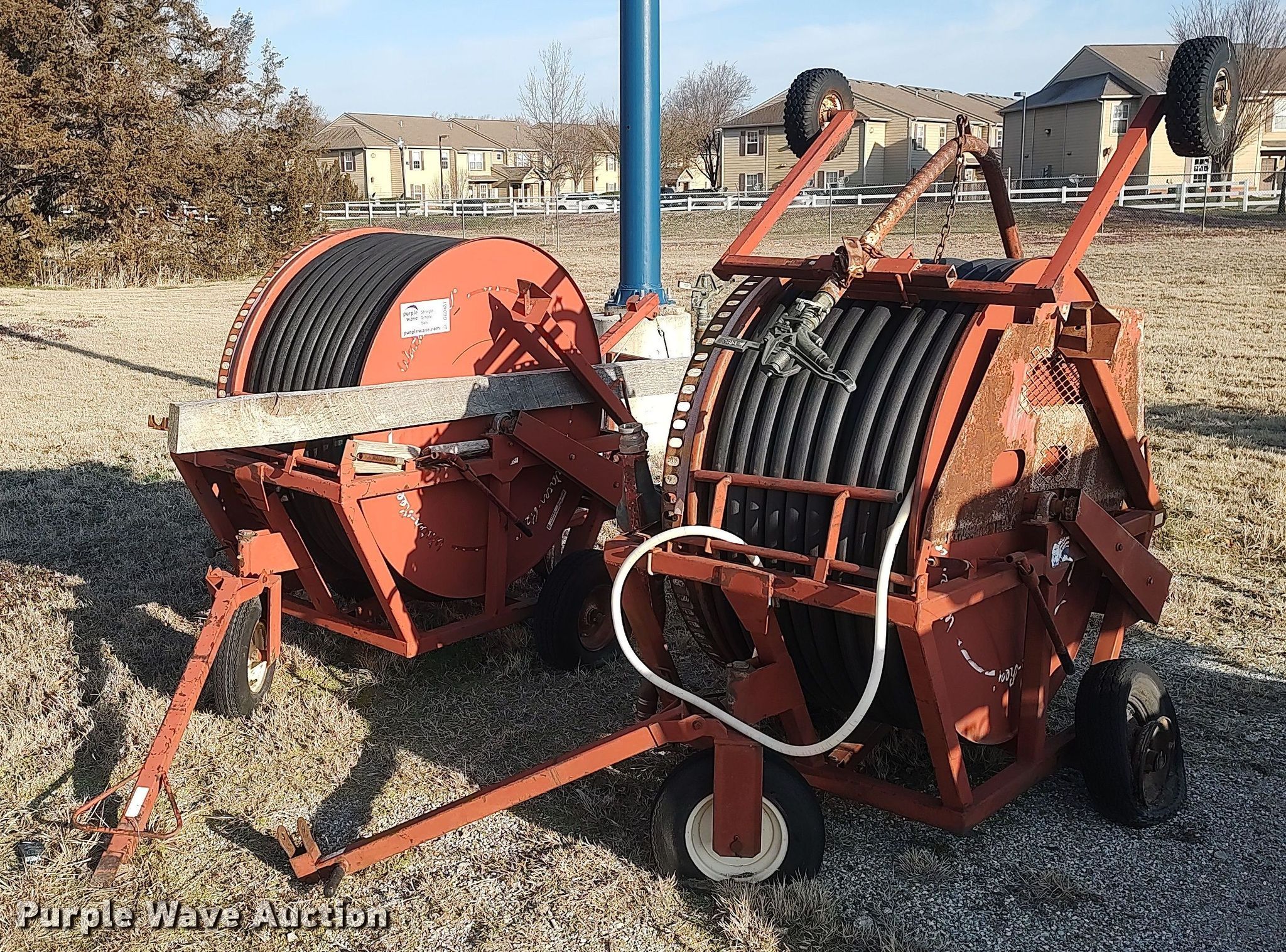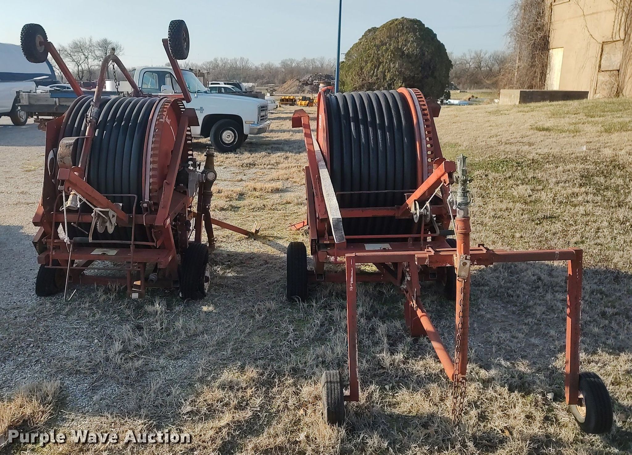 (2) Water-Reel sprinklers. Hose: 1.5" diameter, Hose length: Approx. 100 yds, Tire size: 5.70-8. Notes Flat tires, Unknown operating condition. City of Haysville. 200 West Grand Avenue. Haysville, KS 67060