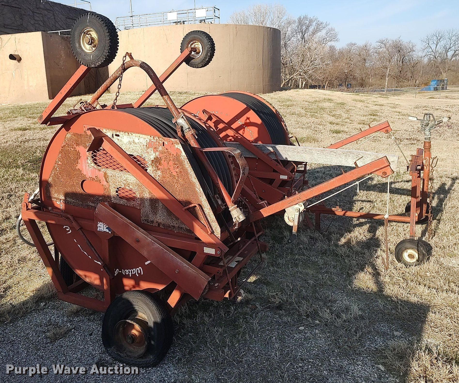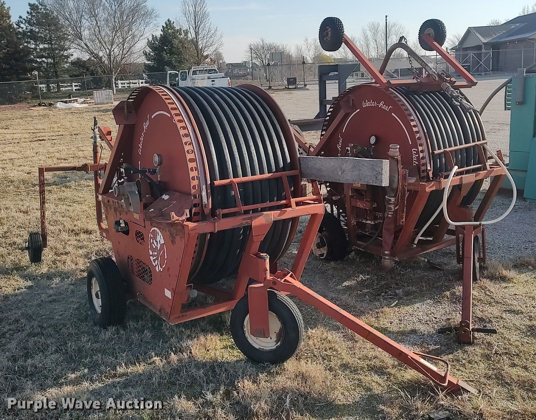 Purple Wave is selling a used Lawn and Garden in Kansas. This item is a (2) Water-Reel sprinklers with the following: Hose: 1.5" diameter, Hose length: Approx. 100 yds, Tire size: 5.70-8