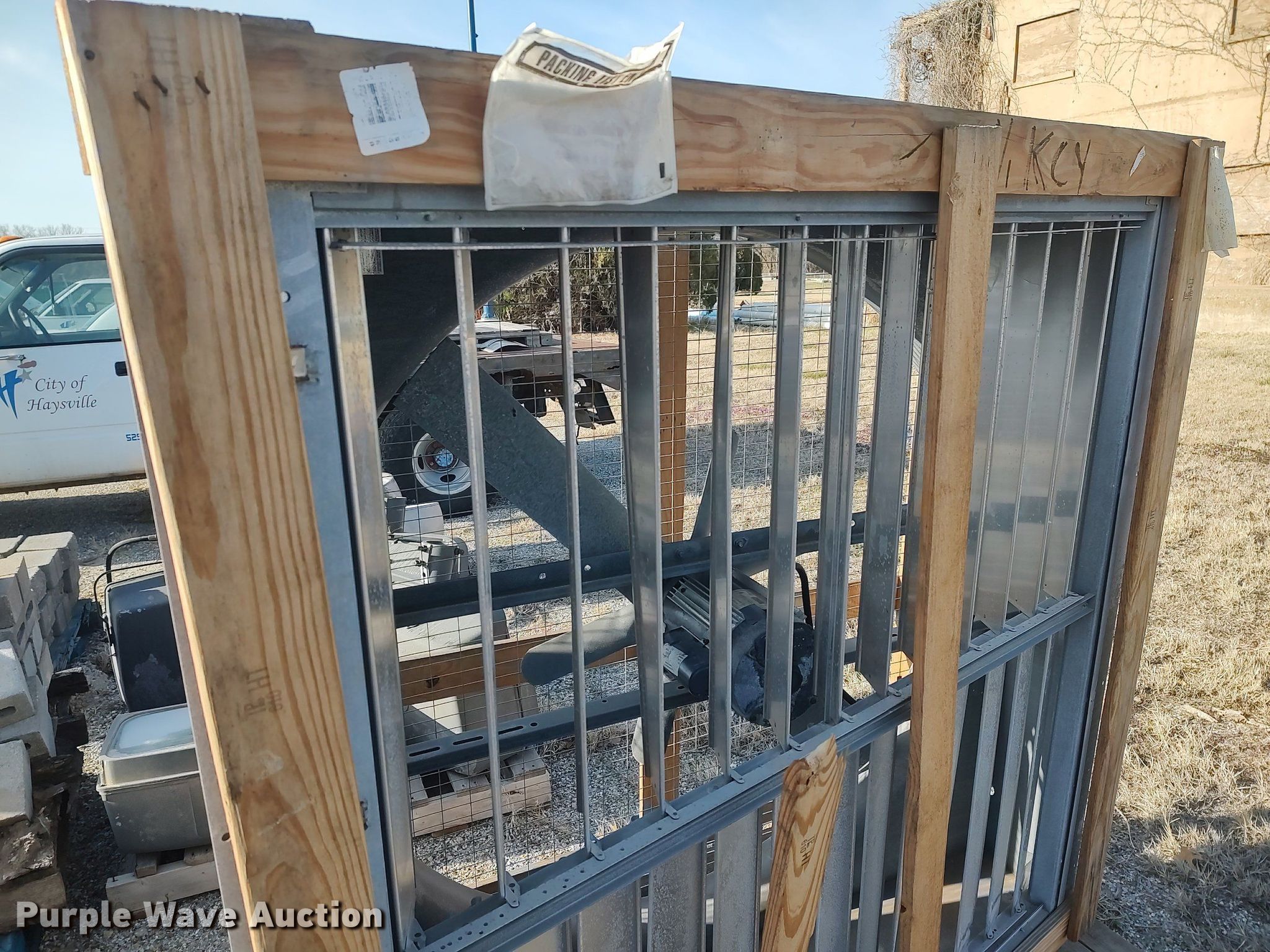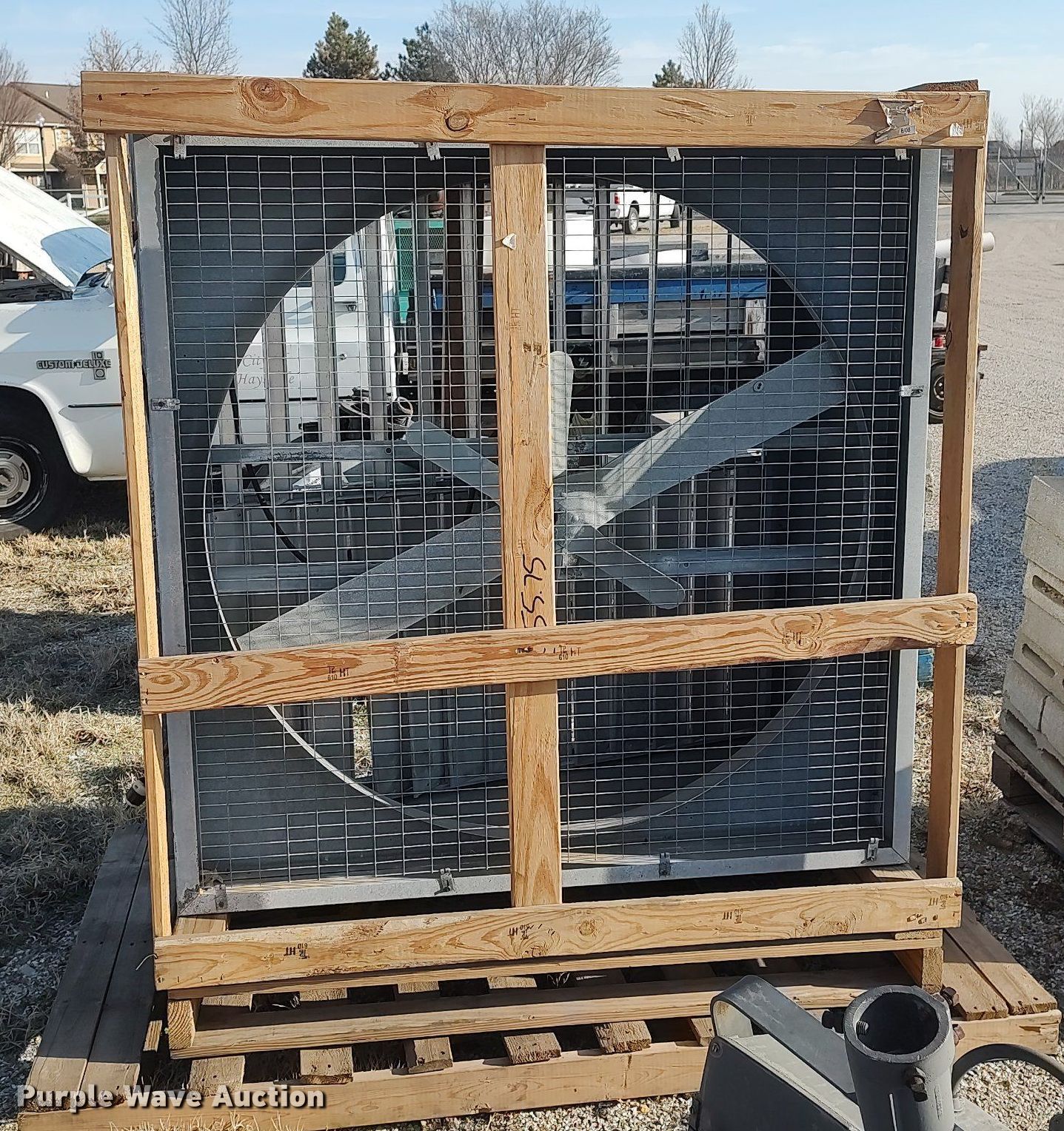 Purple Wave is selling a used Building Materials in Kansas. This item is a Exhaust fan with the following: 60" x 58" x 30", Damaged fin, Unknown operating condition
