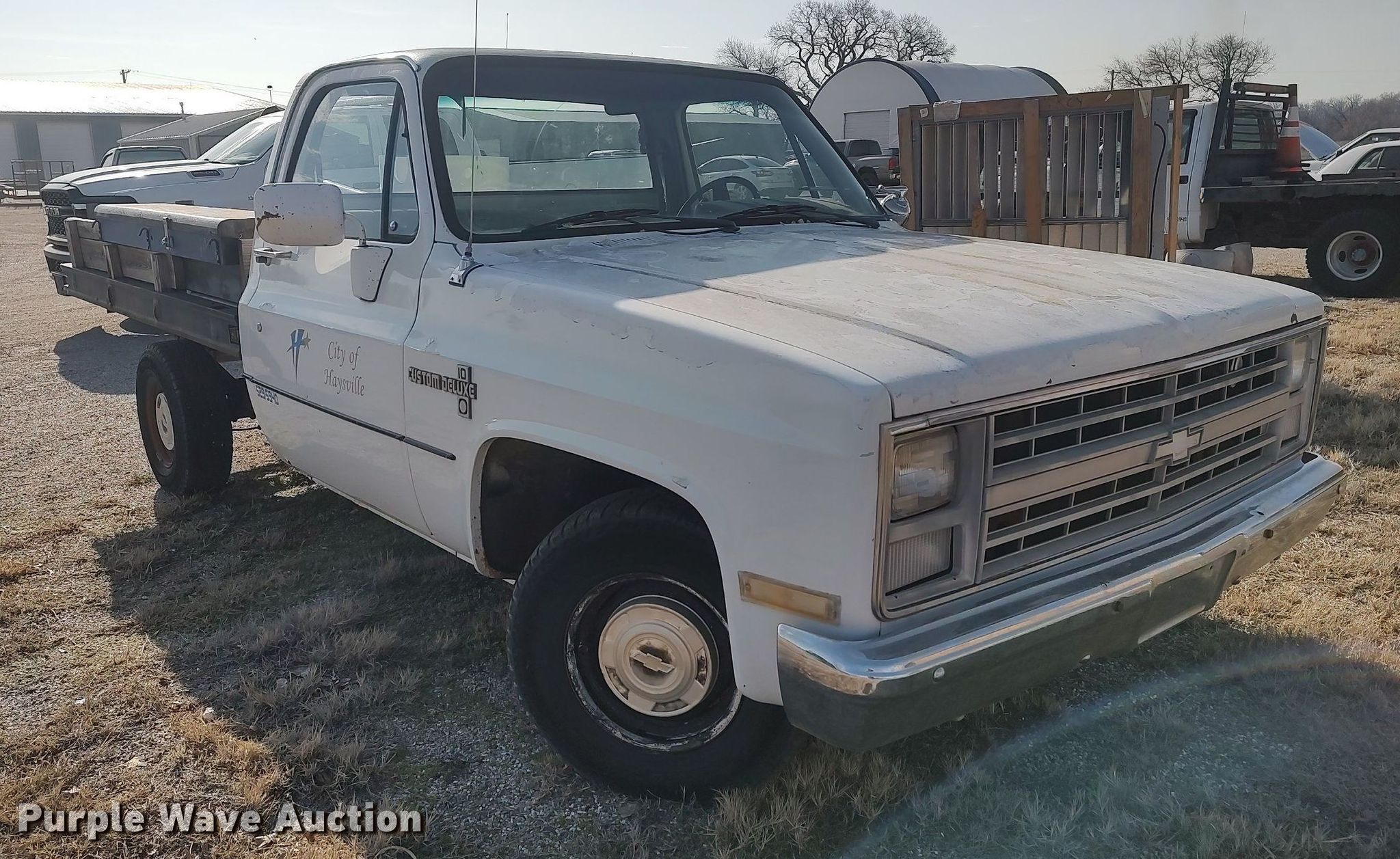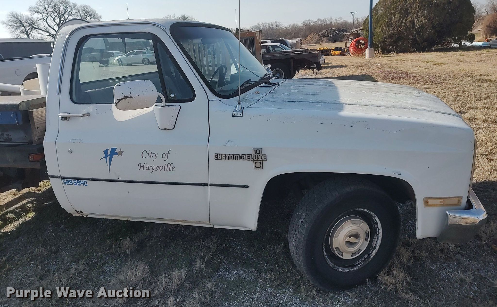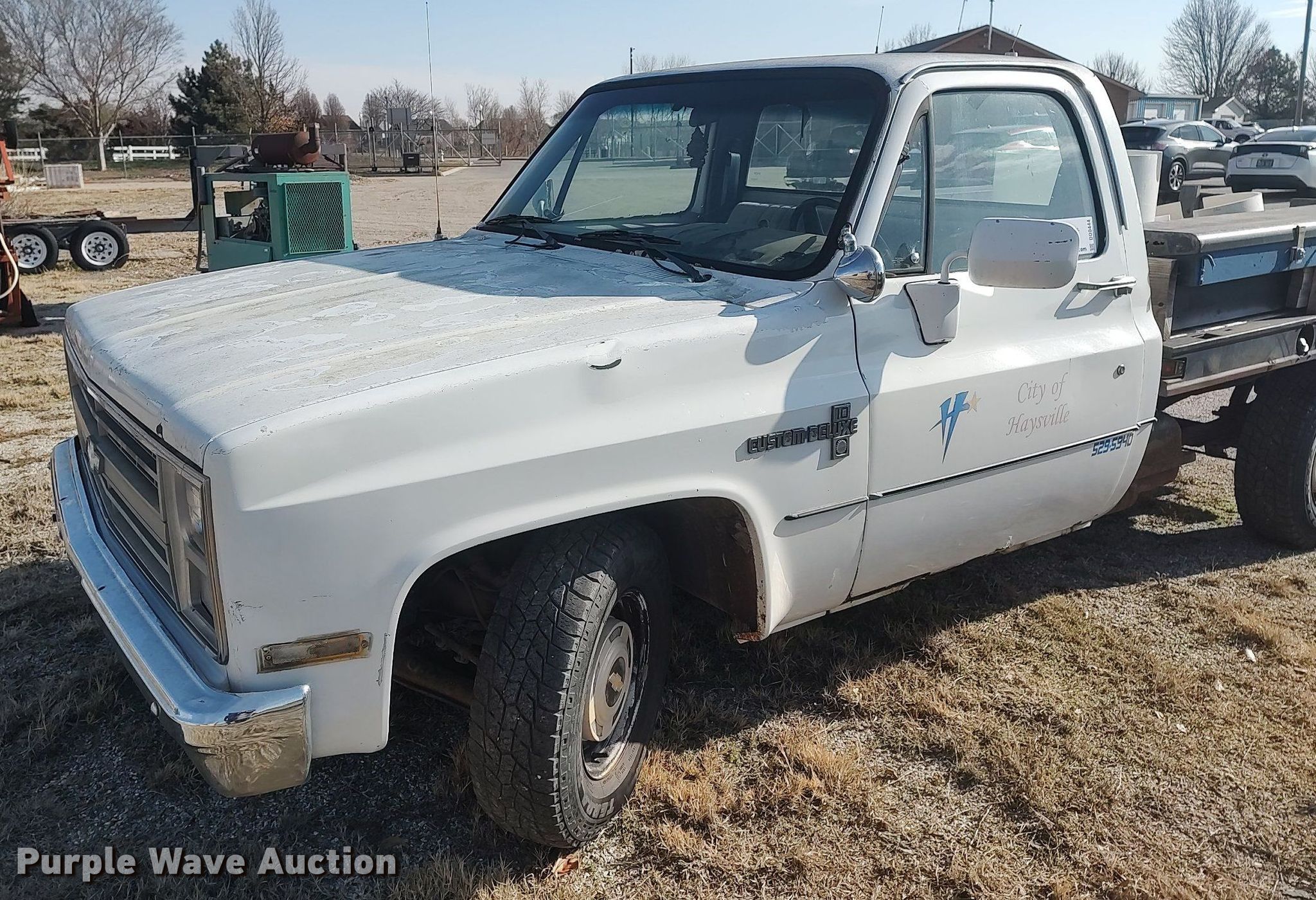 1987 Chevrolet R10 flatbed pickup truck. Miles: 13,900 on odometer Actual mileage unknown, VIN: 1GCER14H5HJ167834. Engine Displacement: 5.0L V8 OHV, Cylinders: 8, Fuel type: Gas. Transmission Automatic. Interior AC, Heat, Power windows, Power locks. Tires Size: 235/75R15. Notes Non-operational unit. Kansas title. Mileage has not been verified. Exempt will be written in the odometer disclosure on the title.. Title distribution may be delayed up to 14 days from verification of funds. City of Haysville. 200 West Grand Avenue. Haysville, KS 67060