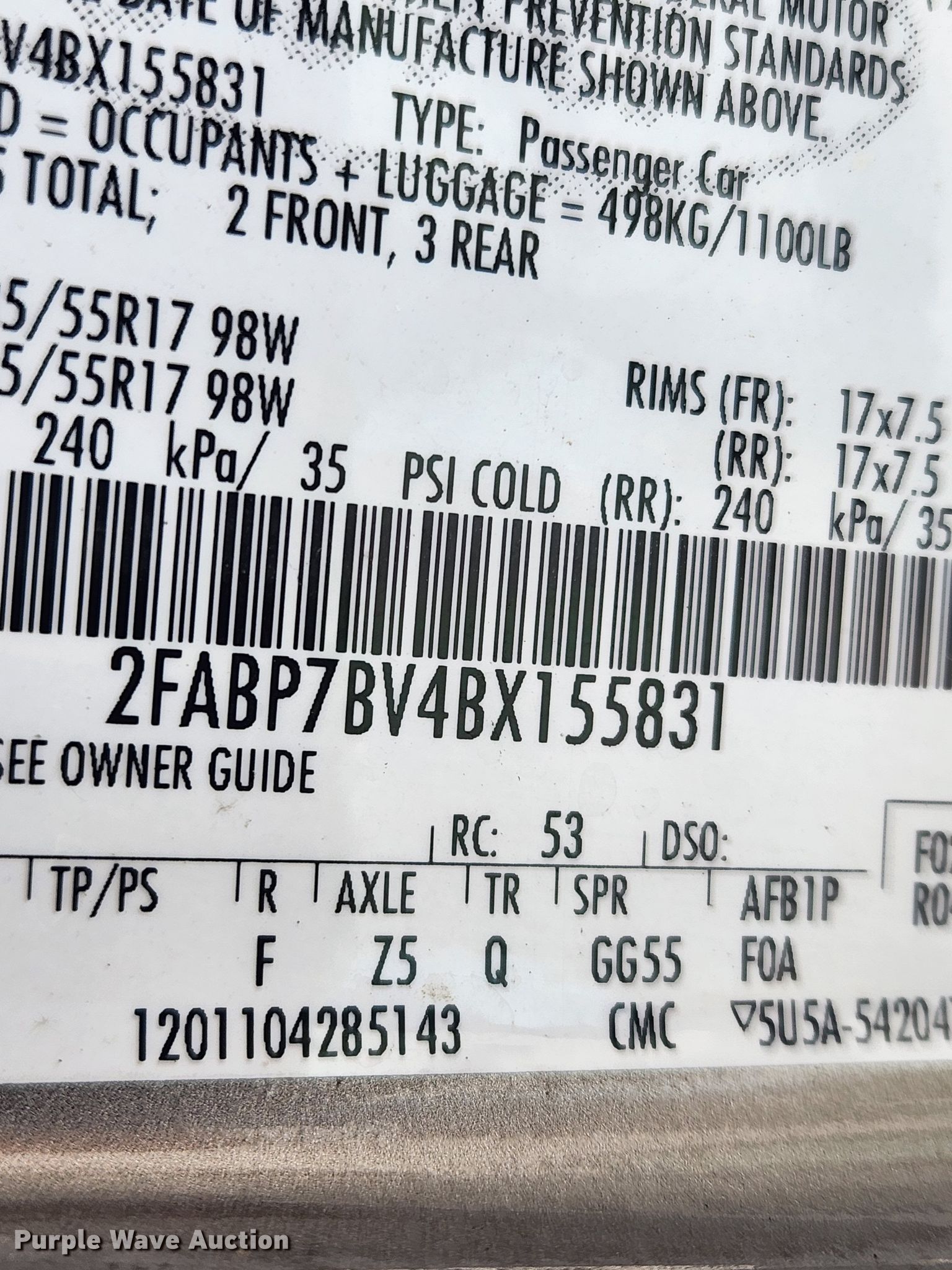 - VIN: 2FABP7BV4BX155831