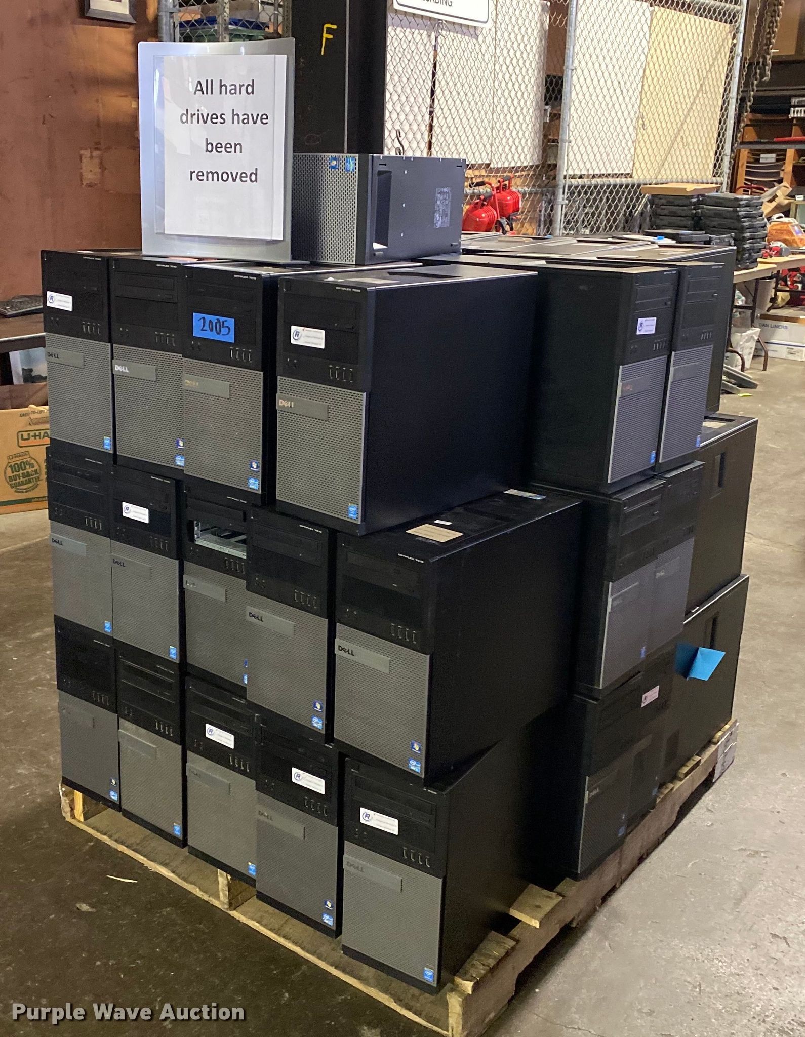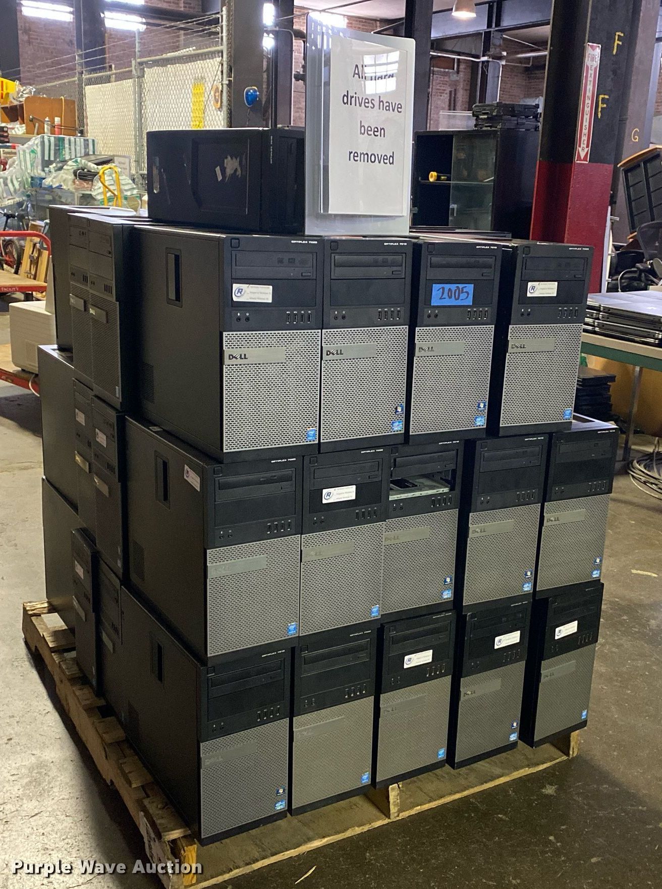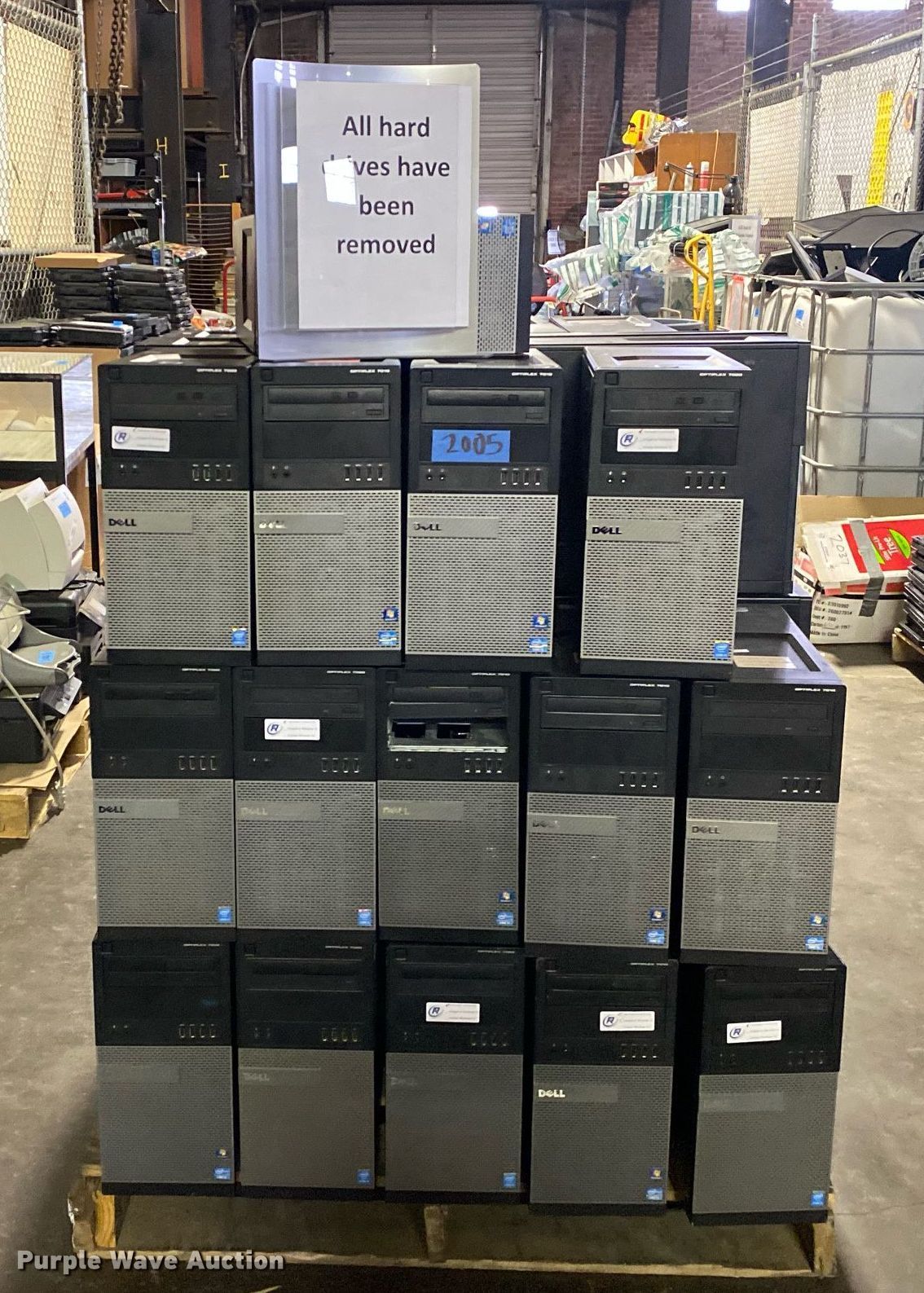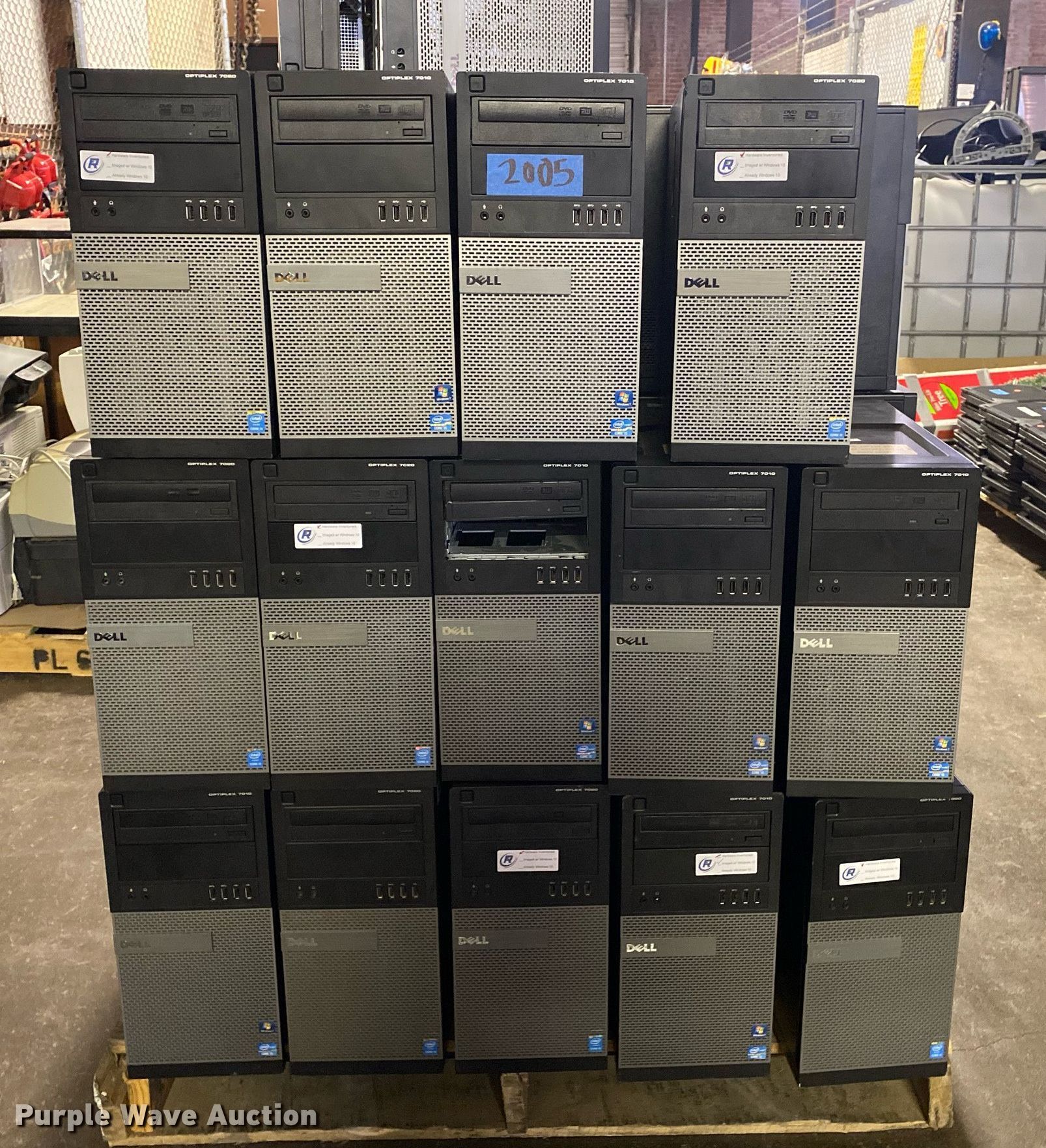 Purple Wave is selling a used Computers in Oklahoma. This item is a Approximately 41 Dell Optiplex CPUs with the following: Model: 7020, Model: 7010, Hard drives have been removed, No power cords, Unit #: 2005