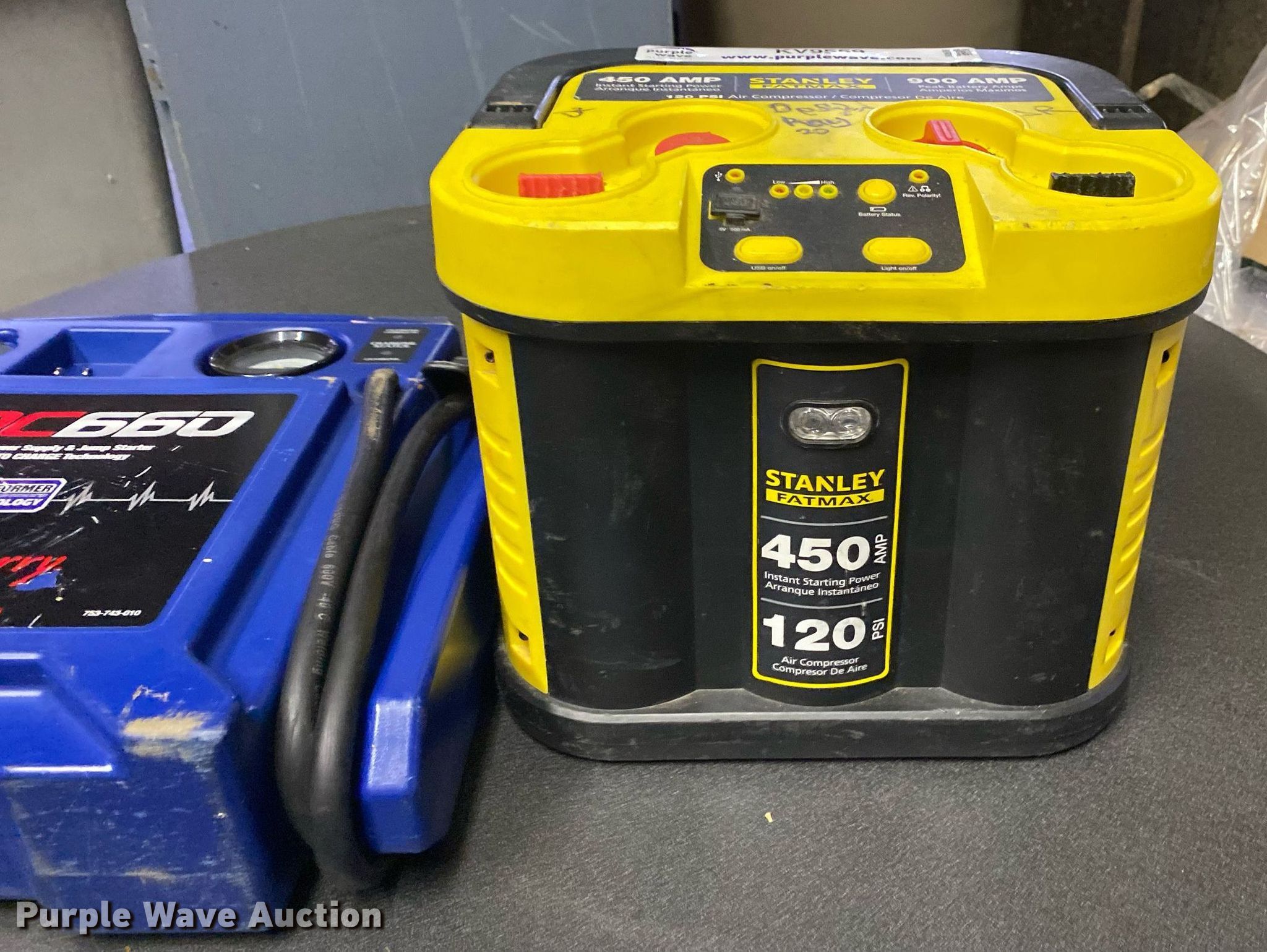 Purple Wave is selling a used Tools in Oklahoma. This item is a Tools with the following: JNC660 jump pack, 12V, Stanley Fatmax, 450 amp, Unit #: 2036