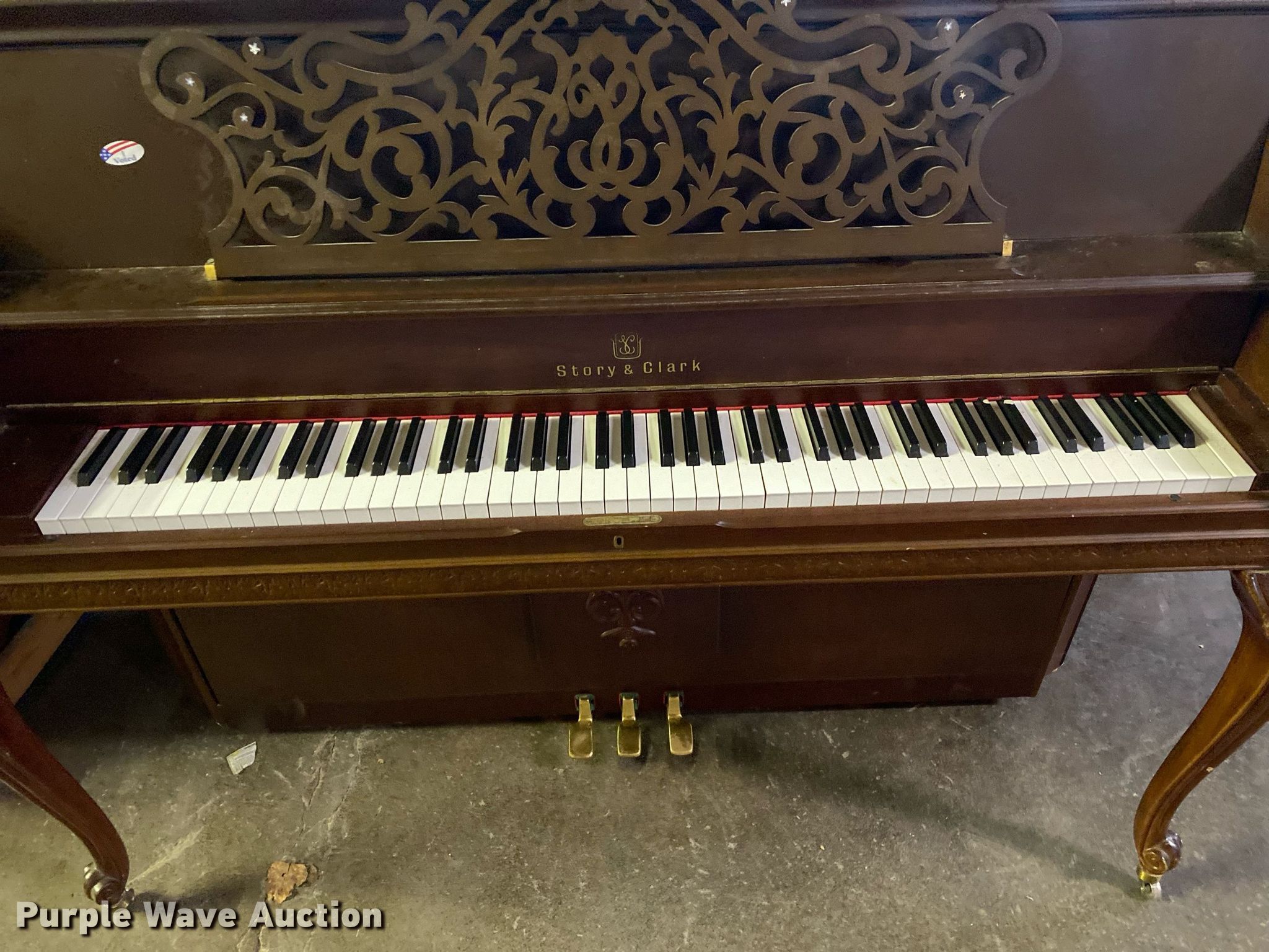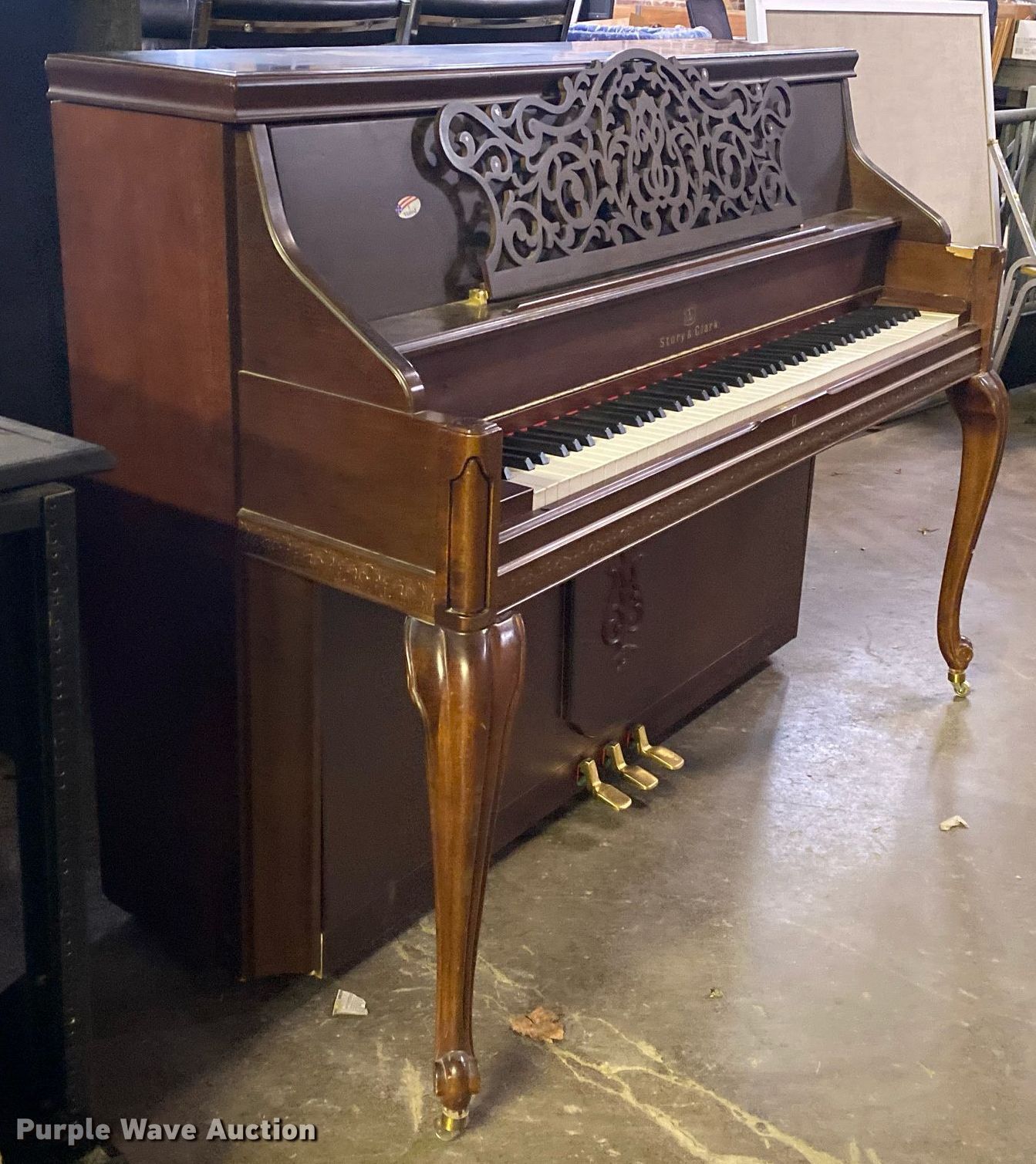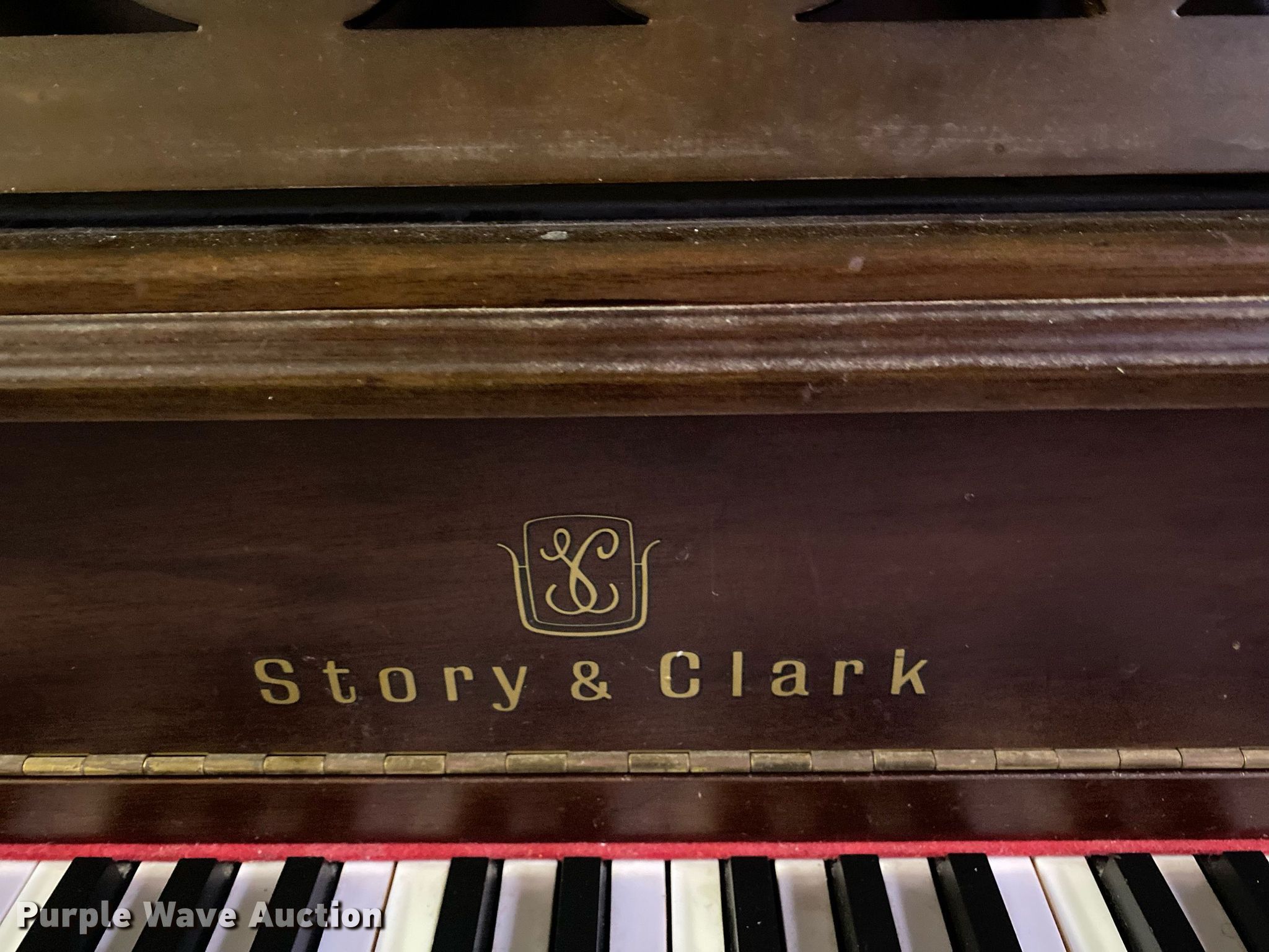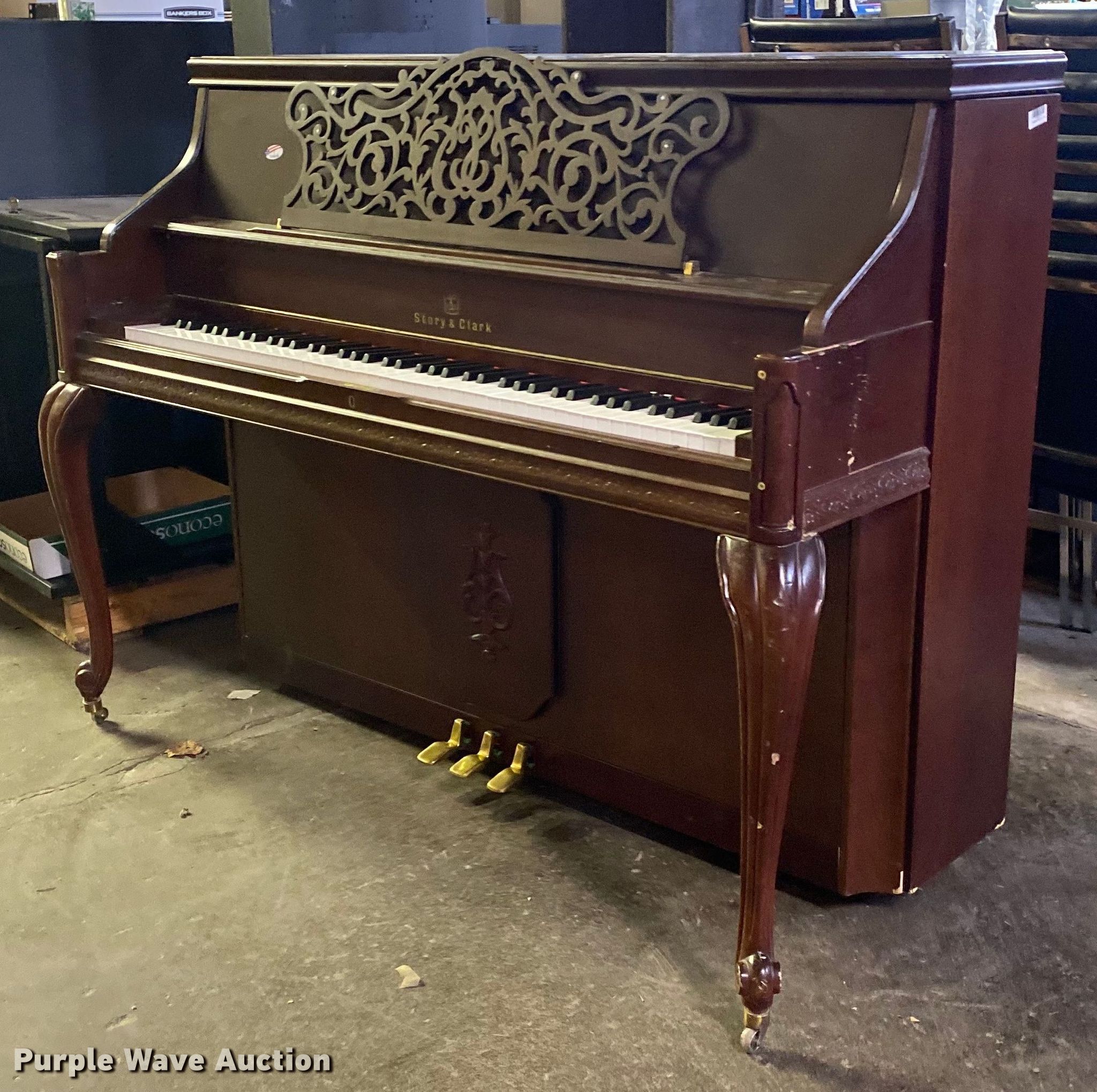 Purple Wave is selling a used Music Equip. in Oklahoma. This item is a Story & Clark piano with the following: Leg broken, Unit #: 2035