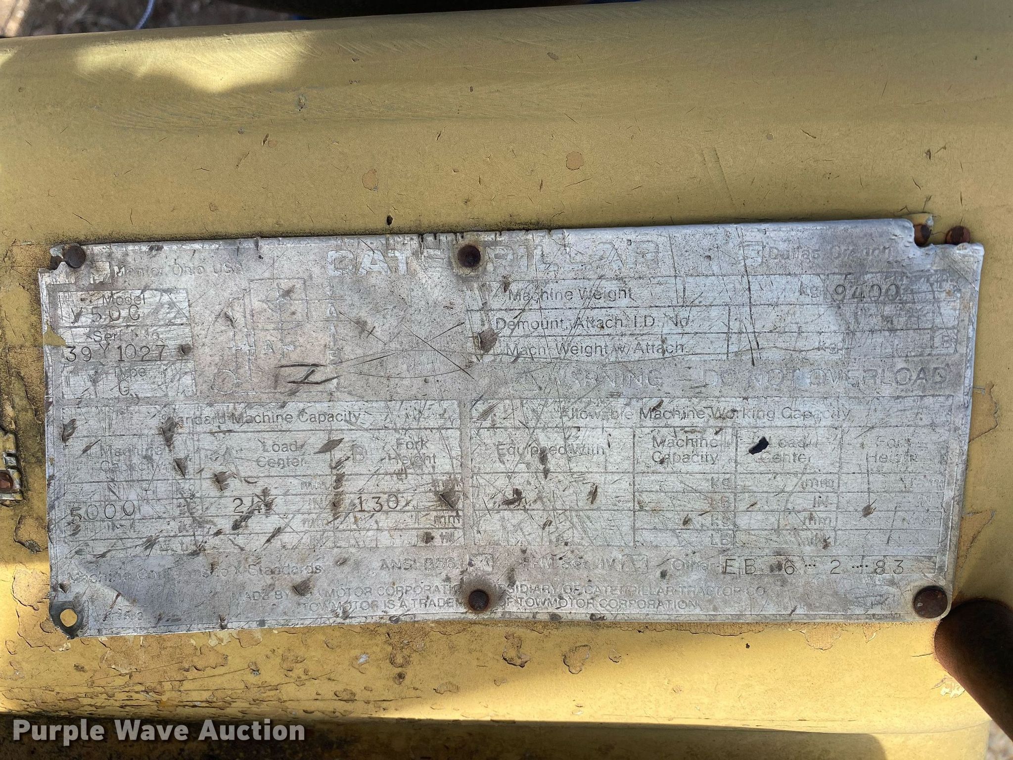 Purple Wave is selling a used Cushion Tire or Pneumatic Forklift in Oklahoma. This item is a Caterpillar V50C forklift with the following: Hours: 5,228 on meter, Serial: 39Y1027
