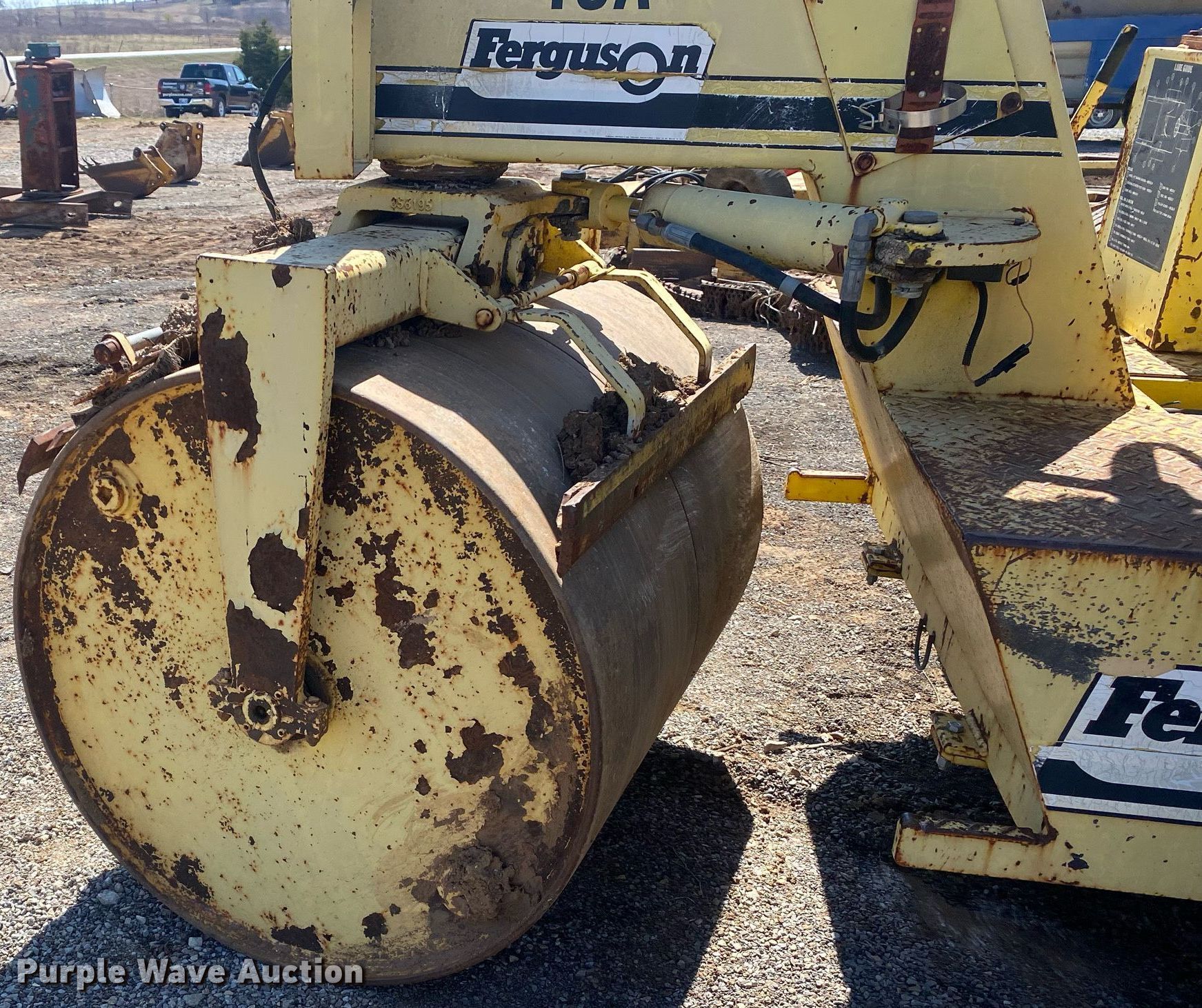 1990 Ferguson 46A double drum roller. Hours: 686 on meter, Serial: 3664. Engine Cylinders: 4, Fuel type: Diesel. Transmission Hydrostatic. Features Drum: Smooth, Front drum Width: 40", Diameter: 35", Rear drum Width: 42", Diameter: 48", Drum scrapers: Front, Rear, Water spray applicator: Front, Rear, Front blade width: 41". Tires Size: 10R20. Notes Unknown operating condition. Pawnee County, OK. 44201 Oklahoma 18. Pawnee, OK 74058