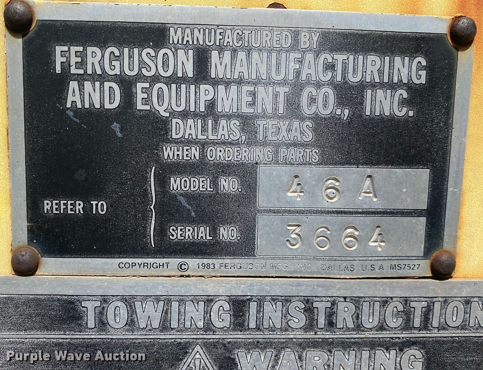Purple Wave is selling a used Double Drum Roller Compactor in Oklahoma. This item is a 1990 Ferguson 46A double drum roller with the following: Hours: 686 on meter, Serial: 3664