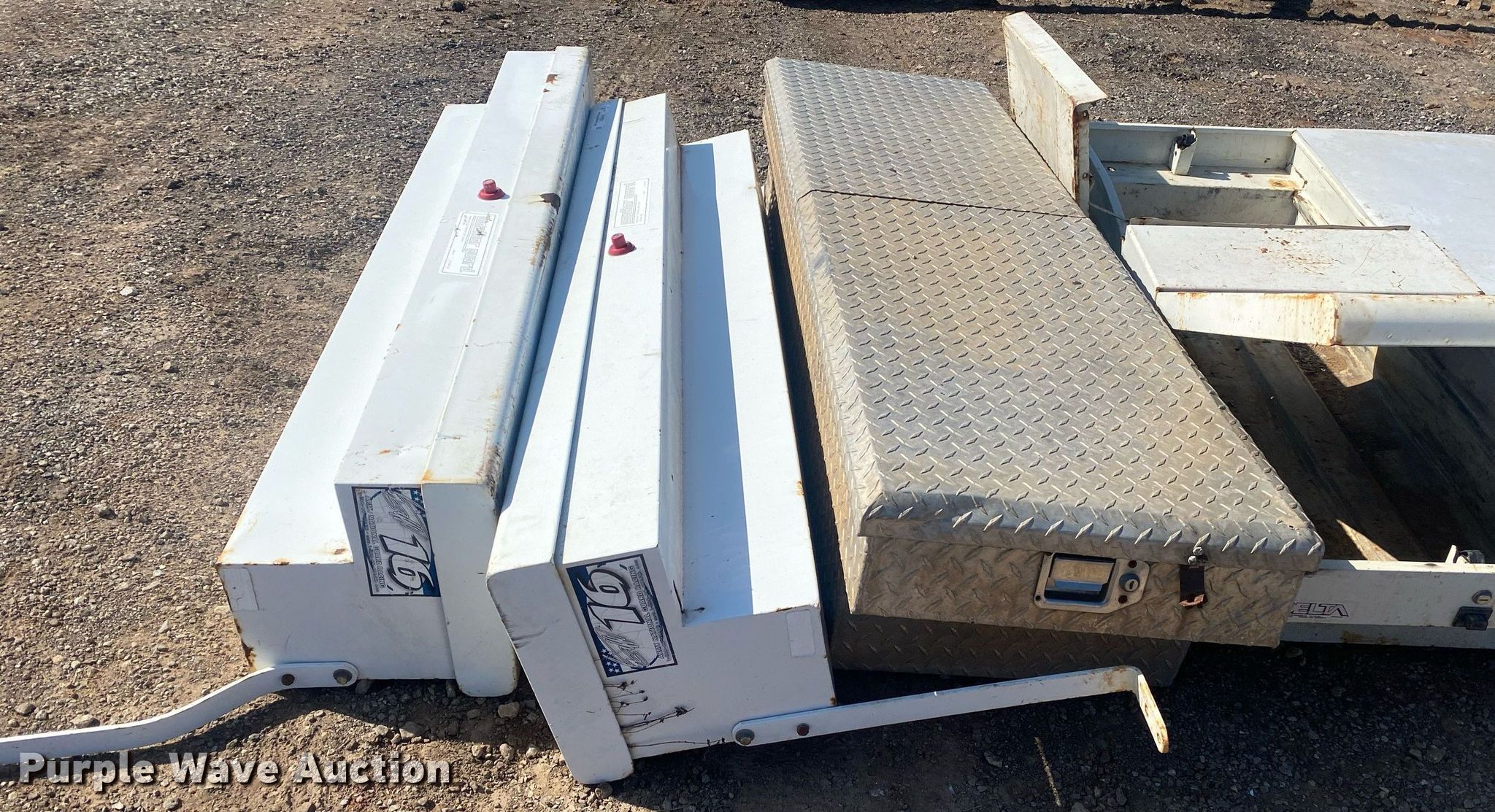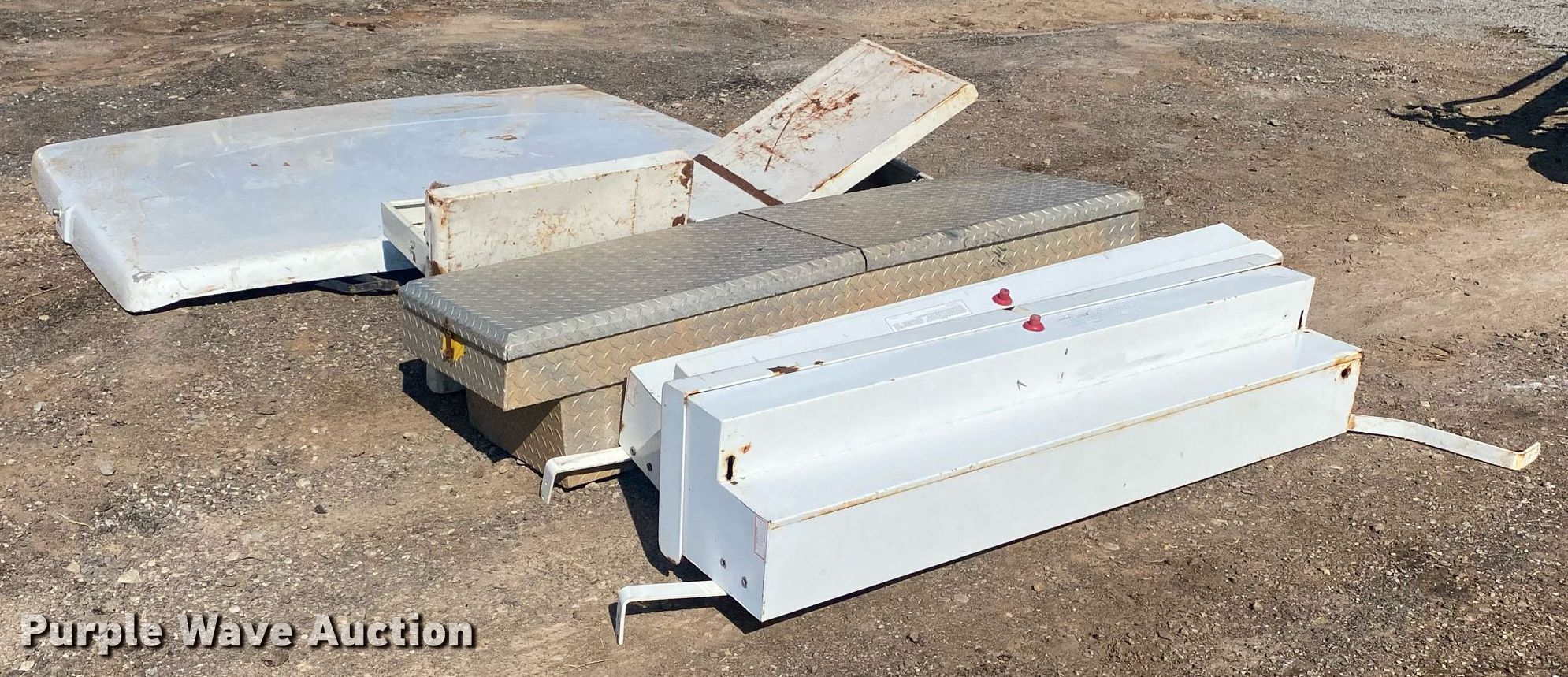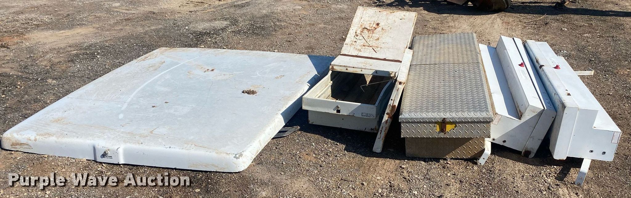 Purple Wave is selling a used Automotive Parts or Acces. in Oklahoma. This item is a Automotive accessories with the following: (4) toolboxes, (2) Weatherguard, 62" x 12" x 13", Delta, Diamond plate, 68" x 20" x 15",, Pickup truck bed cover, 7' x 72"