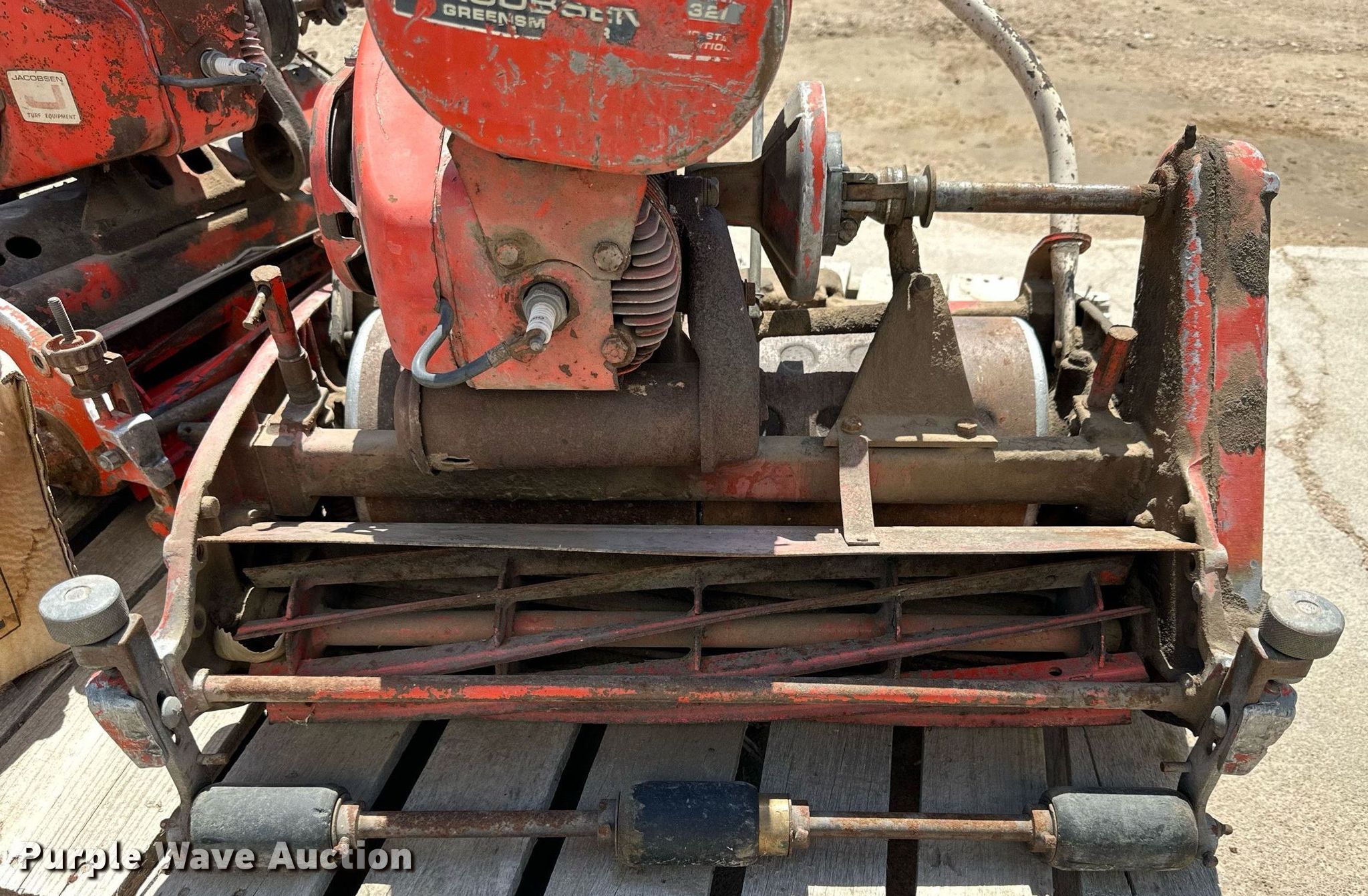 Purple Wave is selling a used Lawn Mower in Kansas. This item is a (3) reel mowers with the following: (2) Jacobsen, Cutting width: 24", Fuel type: Gas, Cylinders: 2, Engine issues, dies, Craftsman, Model: 328-375301, Serial: 883229, Cutting Width: 24", Briggs & Stratton engine, Fuel Type: Gas, Cylinders: 1, Unknown operating condition