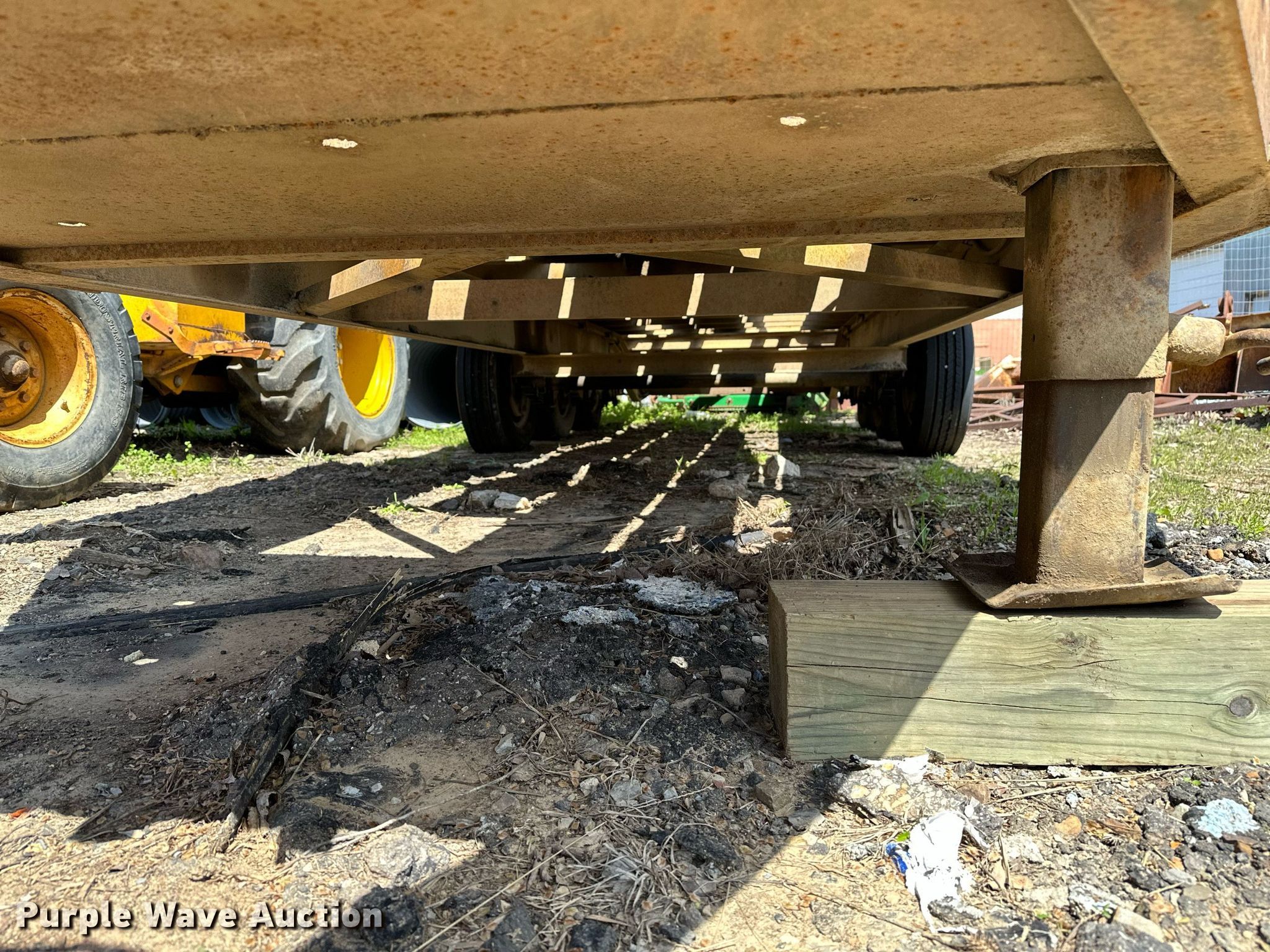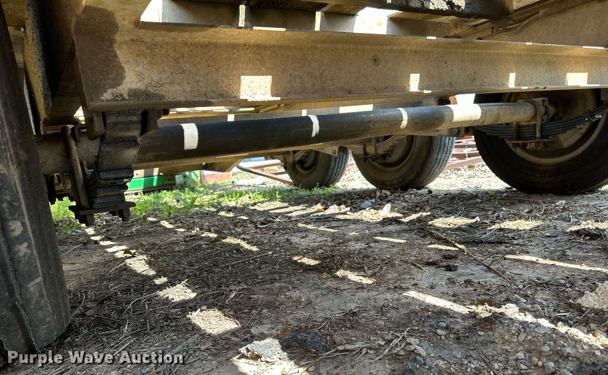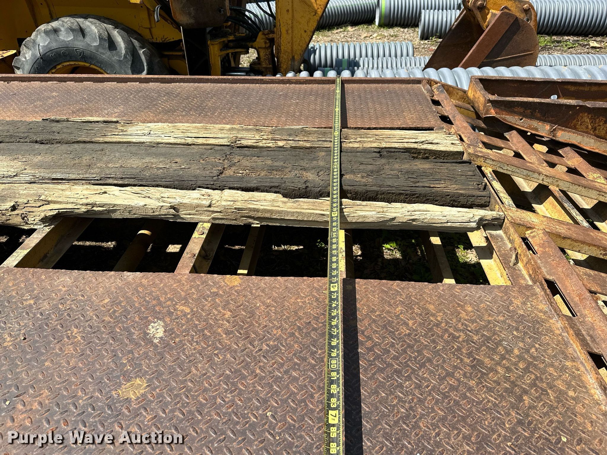 1990 Belshe equipment trailer. VIN: 16JF01836L1021470. Dimensions Overall: 28' 4" L x 94" W, Deck: 18' L x 90" W, Tail length: 64", Ramps: Manual Length: 4'. Features Deck type: Steel, Wood. Chassis Hitch: Pintle, Landing gear: Single, Two speed, Suspension: Spring, Brakes: Electric, Axles: Triple. Tires Steel wheels, Size: 225/75R16. Notes Non-operational brakes. Oklahoma title. Title distribution may be delayed up to 30 days from verification of funds. LeFlore County. 650 Main Street. Heavener, OK 74937